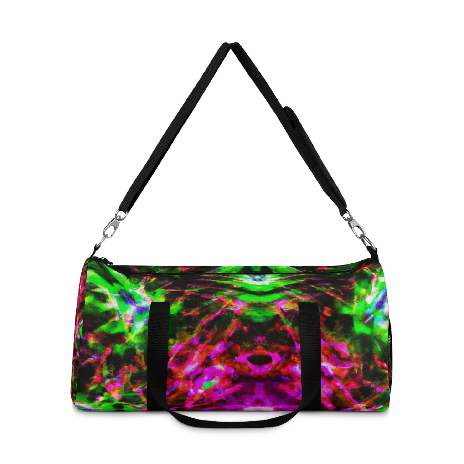 Make a fashion statement with this trippy pineapple, kaleidoscope, abstract, digital art, and neon-colored HD duffle bag! Our unique designs are sure to stand out wherever you go! #dufflebag #trippyart #pineapplekaleidoscope #pineapple #kaleidoscope #abstractart #neon #HD #digitalart #fashionstatement #trendy #durable #functional #colorful #neoncolors #bright #designs #style #unique #hippie #abstract #psychedelic #dope #radical #trippyart #happy #statement #multifunctional #traditional #modern