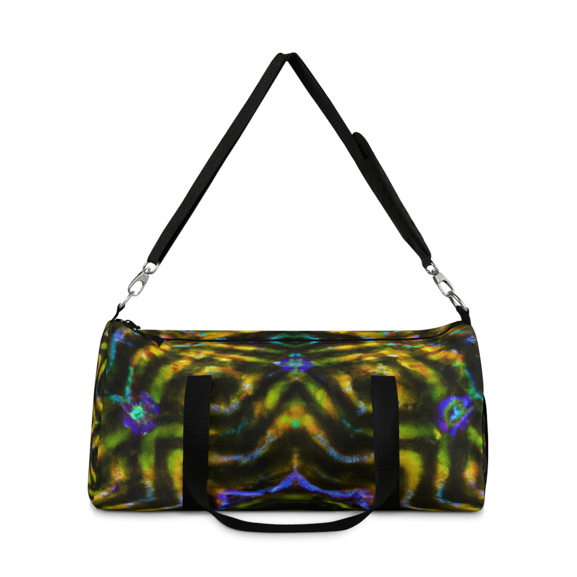 Comfortably spacious, the dufflebag with trippy pineapple, kaleidoscope, abstract, digital art, & neon colors will take you places. Standout with the stylish, HD designs & hold your essentials in style. #Dufflebag #Handbag #TripPineapple #Kaleidoscope #Abstract #DigitalArt #NeonColors #HDDesigns #Style #Comfy #Spacious #Luxury #Bag #Fashion #Quality #Trendy #Tripy #KaleidoscopeArt #DigitalDesigns #NeonLook #HDStyle #Fashionable #Elegant #LuxuriousLook #Designs #FashionEssentials #TripyPineapple #KaleidoscopeDesigns #AbstractDesigns #DigitalStyle