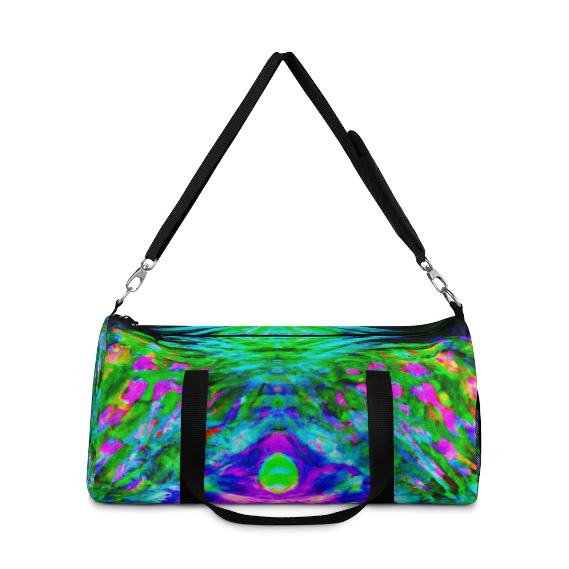 This unique dufflebag features trippy pineapple, kaleidoscope, abstract, digital art, and neon colors designs in HD. The vibrant colors of the psychedelic designs will make any bag stand out. Store all your essentials in style with this eye-catching bag and turn heads everywhere you go. #dufflebag #pineapple #kaleidoscope #abstract #digitalart #neon #hd #vibrant #style #psychedelic #tropical #unique #bag #fashion #essential #eye-catching #standout #heads #turnheads #head-turner #trending #trippy #vibes #spaceage #standout #dope #cool #shopping #fun.
