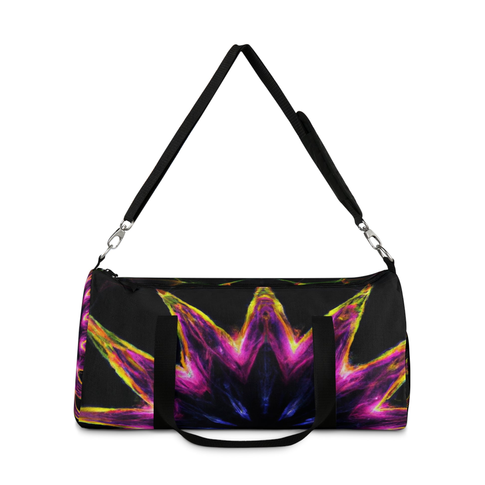 This versatile and stylish Duffle Bag features a unique and colorful Trippy Stars, Kaleidoscope, Abstract, Digital Art, 3D Lines design on a vibrant colored background. Perfect for gym, weekender, overnight trips, and for carrying everyday essentials, you will definitely draw everyone’s attention with this bold look. Get the look and convenience all in one with this eye-catching and functional duffle bag. #dufflebag #trippystars #kaleidoscope #abstract #digitalart #vibrantcolors #3Dlines #functionaldesign #versatile #style #fashion #modern #trendy #practical #travelbag #weekender #overnighttrip #carryingessentials #unique #bold #eyecatching #functional #stylish #colorful #convenient #onpoint #fierce