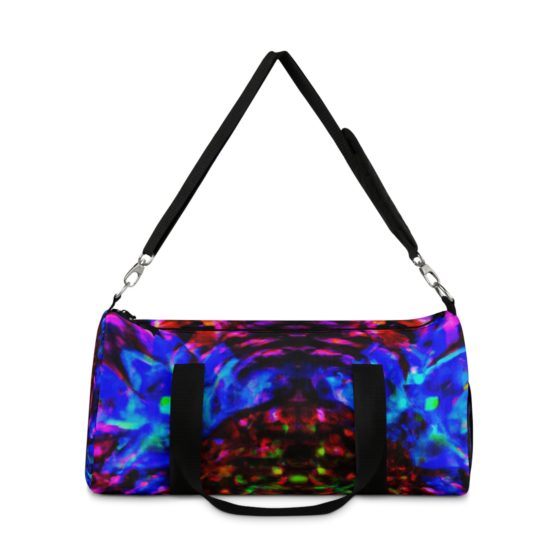 This ultra-modern dufflebag features exclusive HD trippy pineapple, kaleidoscope, abstract, digital art, and neon colors sure to turn heads! With a glossy finish and vibrant colors, this dufflebag is sure to become a conversation piece. Get a dose of eye-catching art with this one-of-a-kind bag! #dufflebag #neon #hd #digitalart #kaleidoscope #art #pineapple #abstract #trippy #modern #style #fashionable #fun #vibrant #glossy #unique #style #cool #glitter #colorful #cute #hippie #luxurious #eye-catching #vivid #gift #trendy