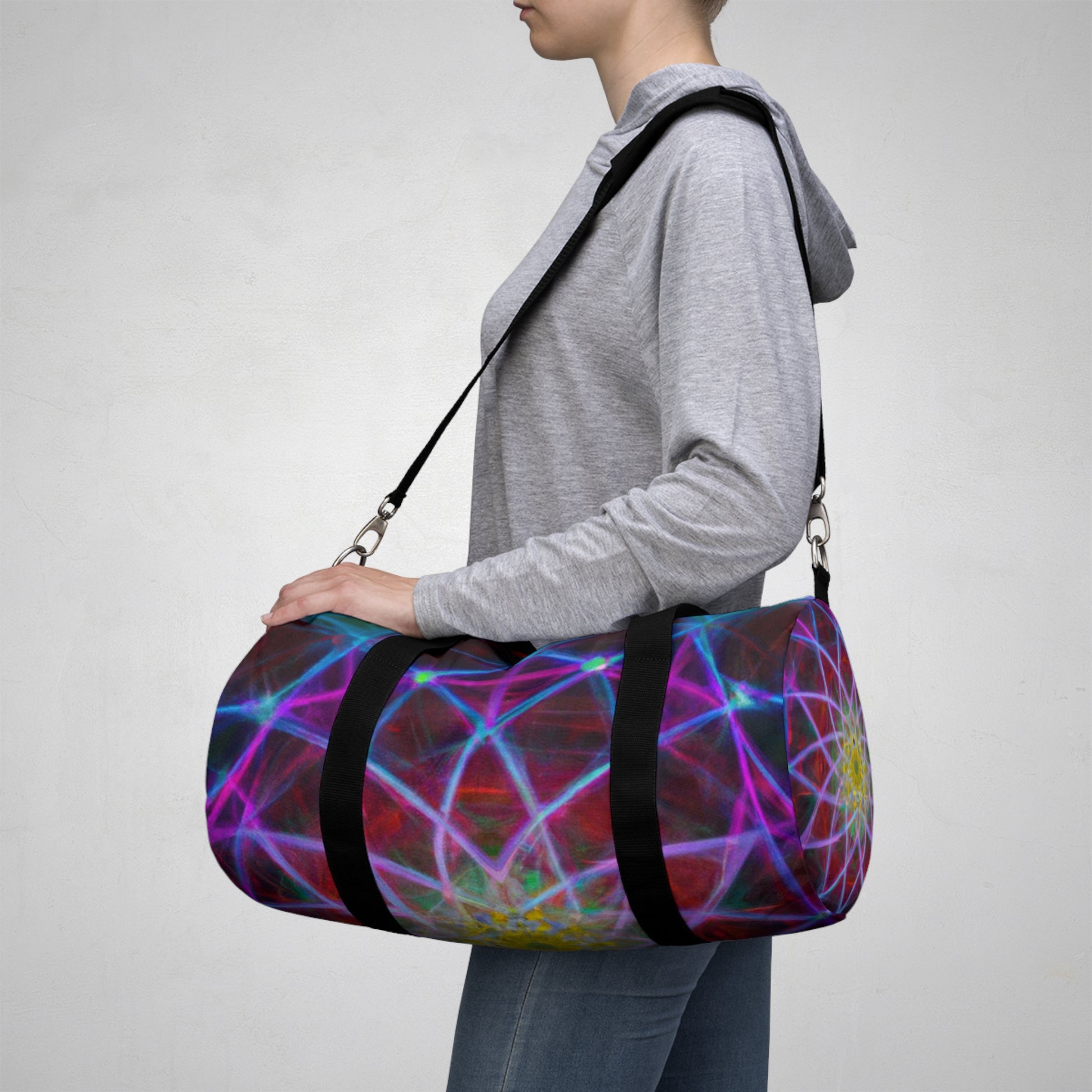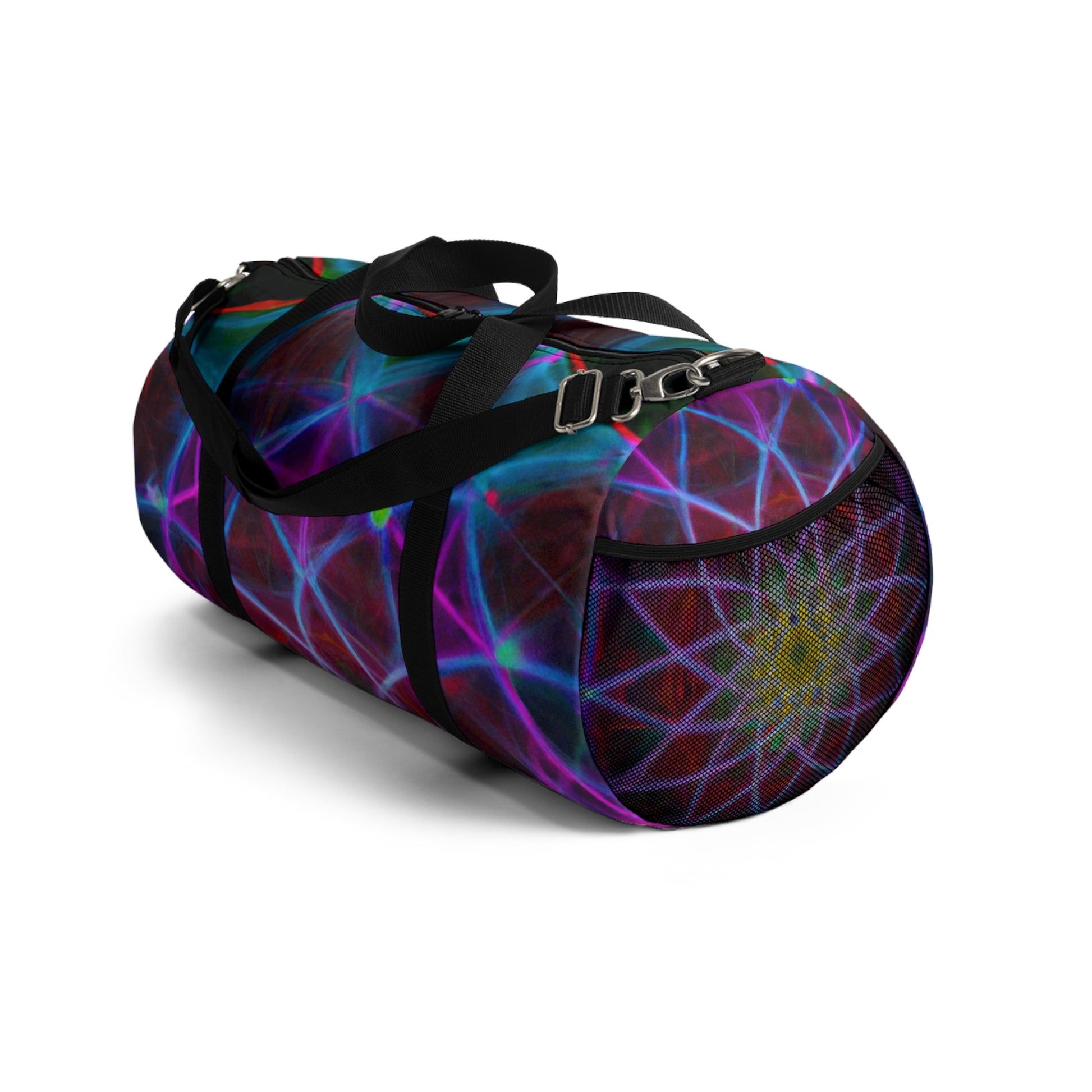 This dufflebag is perfect for travelling or weekend adventure! The unique design helps you stand out from the crowd with trippy stars, kaleidoscope & abstract digital art, all in vibrant colours and 3D lines. It's made of quality materials and will provide years of use. #travel #adventure #vibrant #dufflebag #trippy #stars #kaleidoscope #digitalart #3DLines #abstract #quality