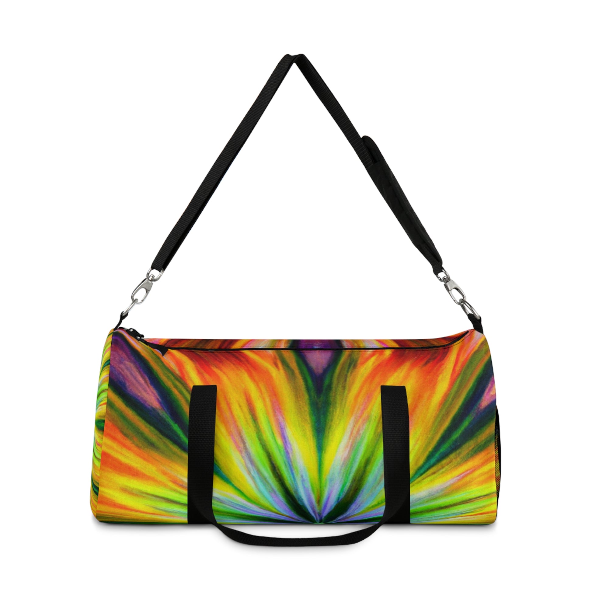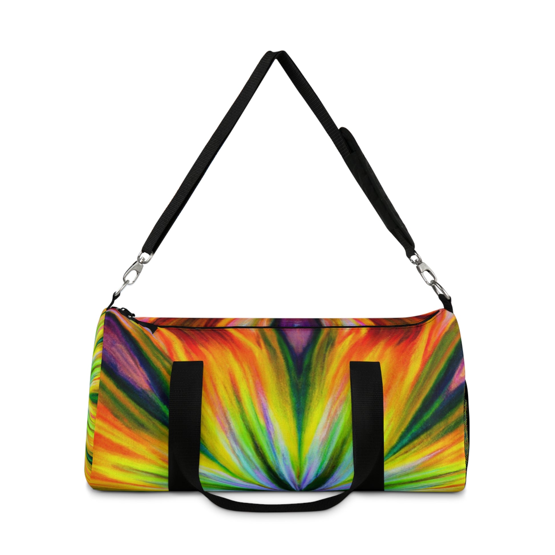 This vibrant and colorful dufflebag features awe-inspiring trippy stars, kaleidoscope, abstract, digital art, and 3D lines designs. Its eye catching color palette and beautiful art overlay will turn heads everywhere you go. Perfect for weekend getaways or the gym, you won't want to leave home without it! #dufflebag #trippystars #kaleidoscope #abstract #digitalart #vibrantcolors #3Dlines #weekendgetaway #gymstyle #baggoals #baglover #bagaholic #fashionstatement #standoutstyle #musthave #styleicon #travelready #streetstyle #travelmusthave #practicalstyle #traveldays #colorfulstyle #colorcombo #luxelook #minimallook #visualsensation #instapic #stylespo #everydaystyle #accessorygoals