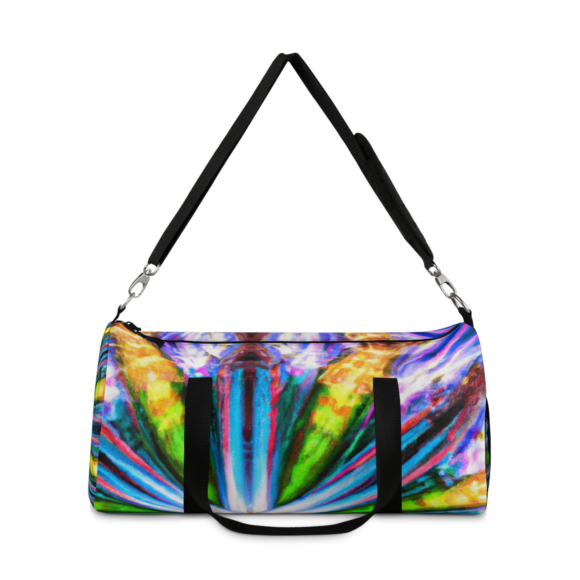 This edgy duffle bag is built for adventure. Featuring bold, trippy stars, kaleidoscope, abstract, digital art and vibrant colors printed with 3D lines, this bag adds a unique twist to your everyday look. Be prepared for any journey in style with this one-of-a kind bag that is sure to make an impact. #trippystars #kaleidoscope #abstract #digitalart #vibrantcolors #3Dlines #dufflebag #oneofakind #style #boldart #uniquedesign #instastyle #adventurebag #makeanimpact #designerbag #travelstyle #travelbag #originalstyle #lookunique #styling #3Dprint #colorfulbag #uniquefashion #fashionista #dufflebagstyle #everydaystyle #standoutstyle #trendingbag