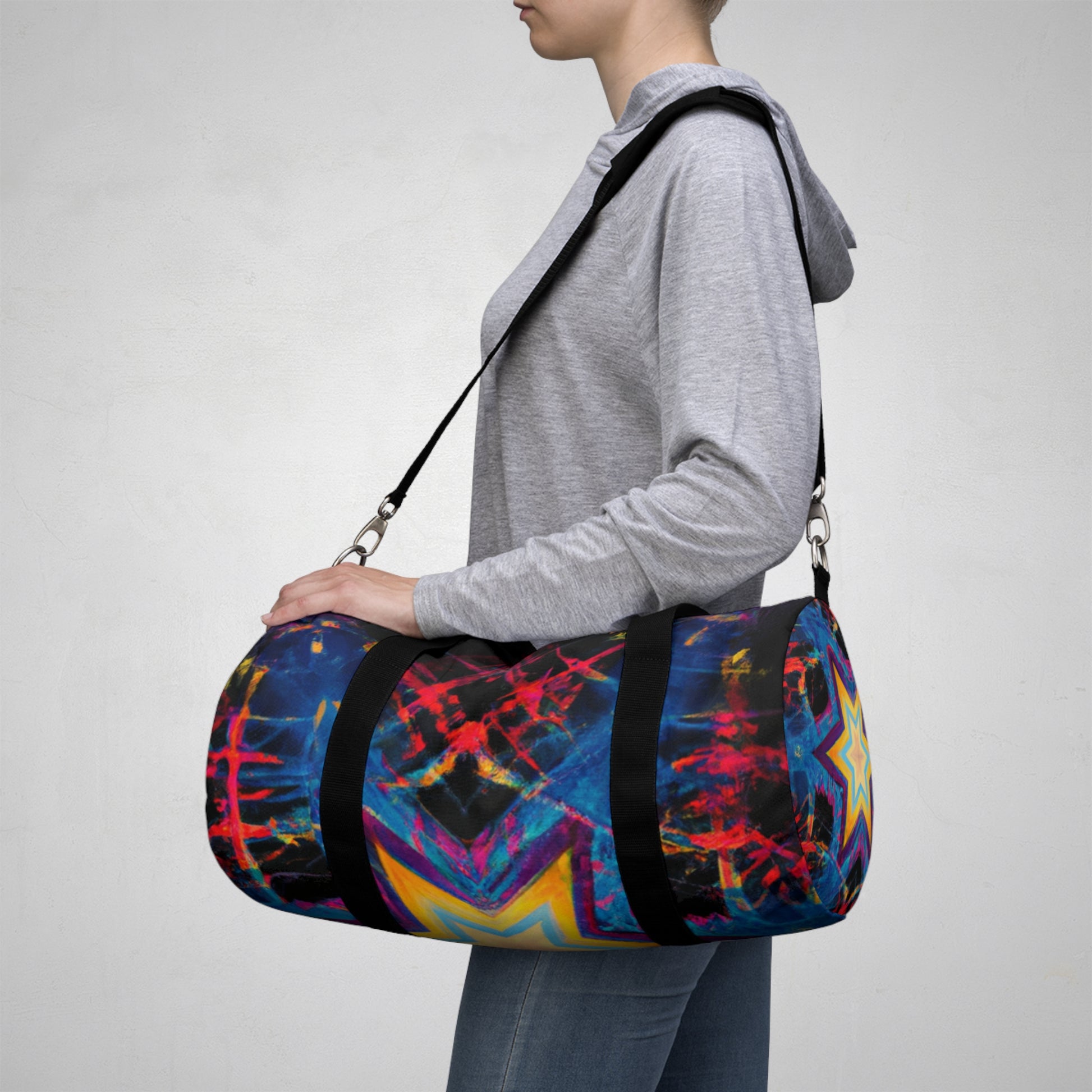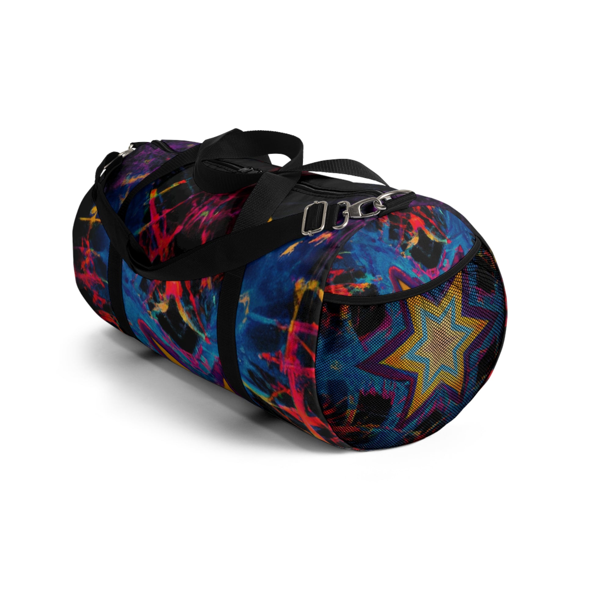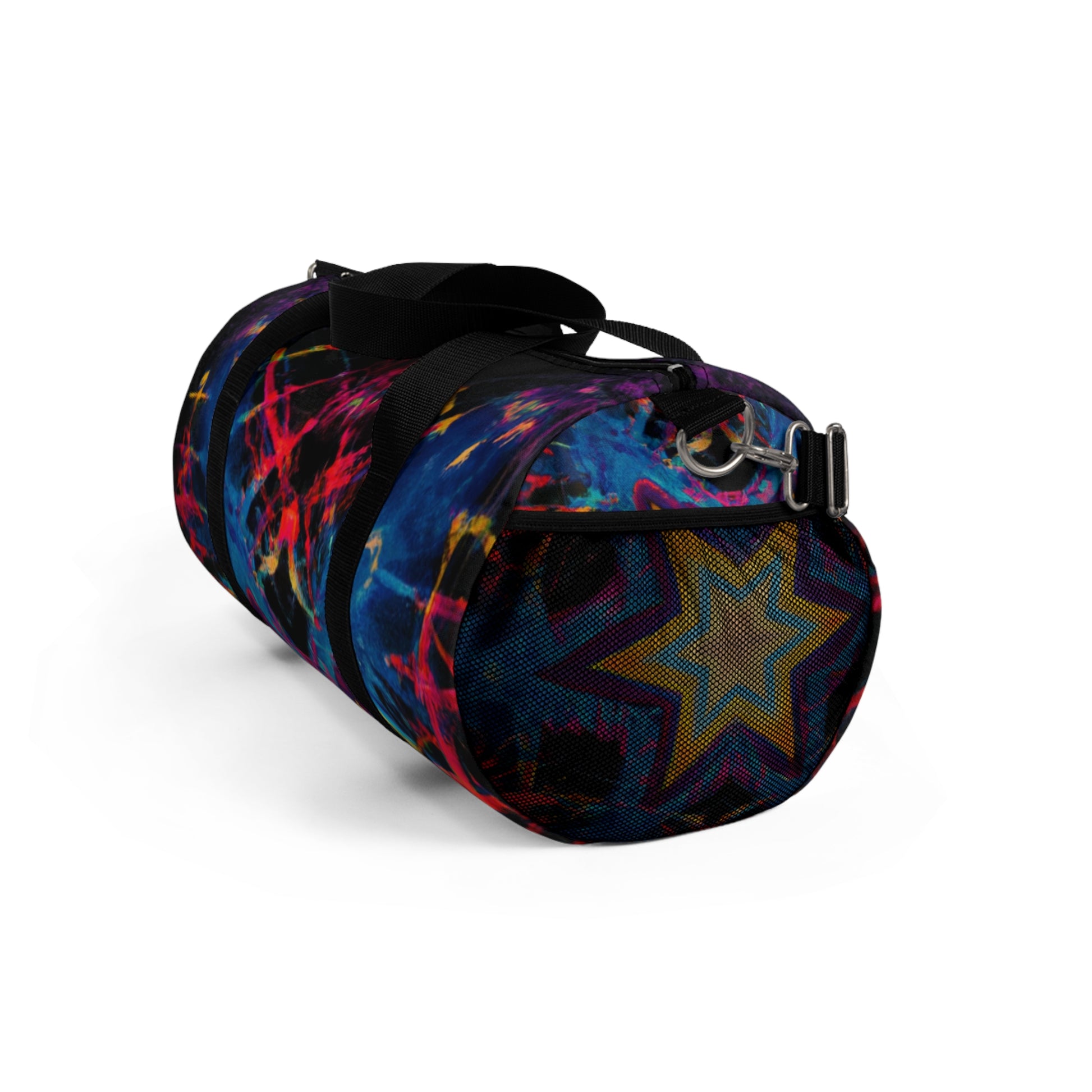 This stylish new dufflebag will bring vibrancy and fun to your ensemble. It features a star-studded trippy design, created with abstract digital art, kaleidoscope, vibrant colors, and 3D lines that will make heads turn. It's the perfect expression of your personality and will take your style to the next level! #Kaleidoscope #AbstractDigitalArt #VibrantColors #3DLines #Stars #Trippy #DigitalArt #Dufflebag #Fashion #Style #Designs #PersonalExpression #StatementPiece #FunctionalFashion #BohemianStyle #CarryAll #OutfitUpdater #Accessorize #UniqueDesign #VividDesign #Differentiate #Creativity #Unconventional #Bright #Fun #ModernStyle #Travelling #OnTheGo #MakingMemories