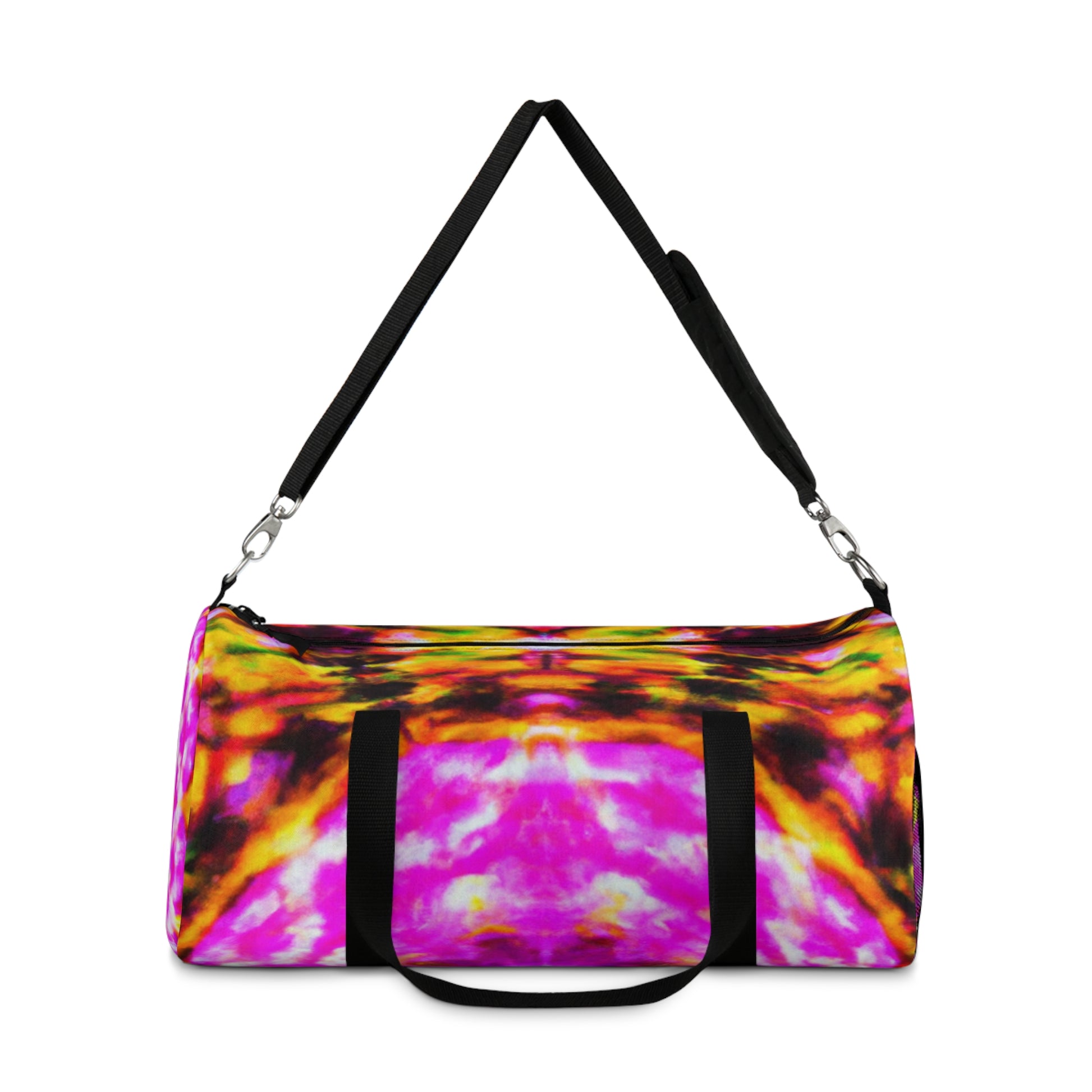 This dufflebag is far from ordinary! It features unique and eye-catching trippy pineapple, kaleidoscope, abstract, digital art, and neon colors, in a stunning HD design. It's a vibrant design perfect for any creative individual. #dufflebag #duffle #pineapple #kaleidoscope #abstractart #digitalart #neoncolors #HD #fashion #style #travel #vibrant #uniquedesign #trippyart #creative #artsy #accessory #bagstyle #neonvibes #bagsforlife #peachyvibes #colourful #stunner #oneofakind #pineappledesign #kaleidoscopedesign #hdart