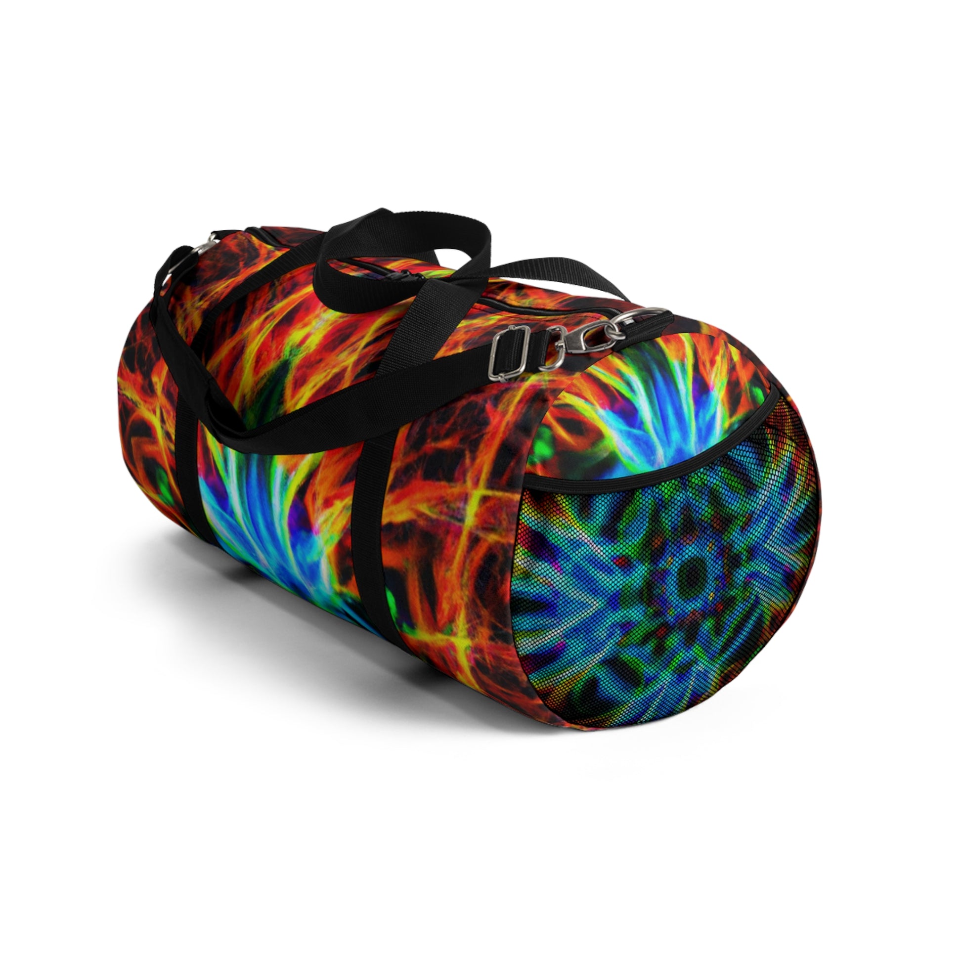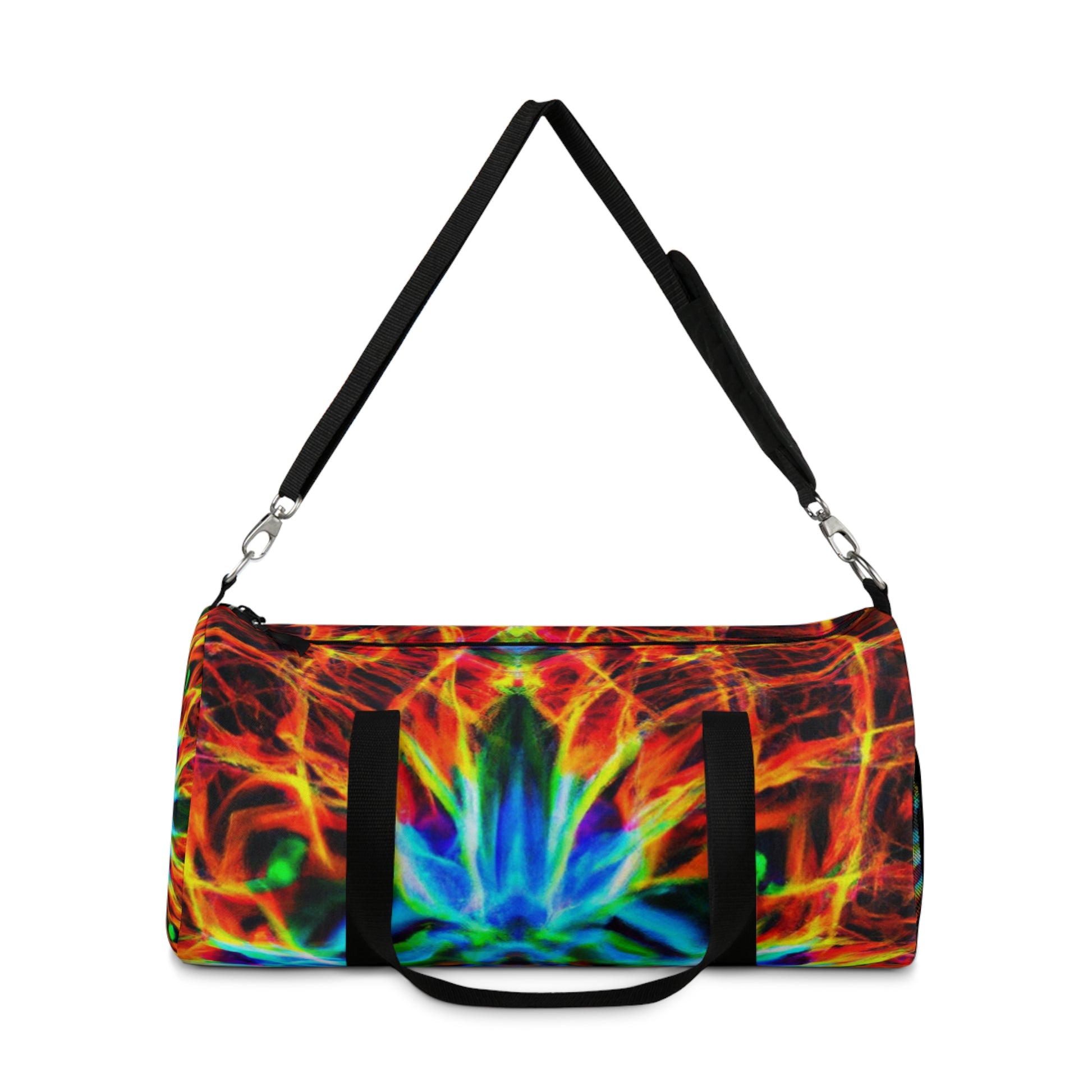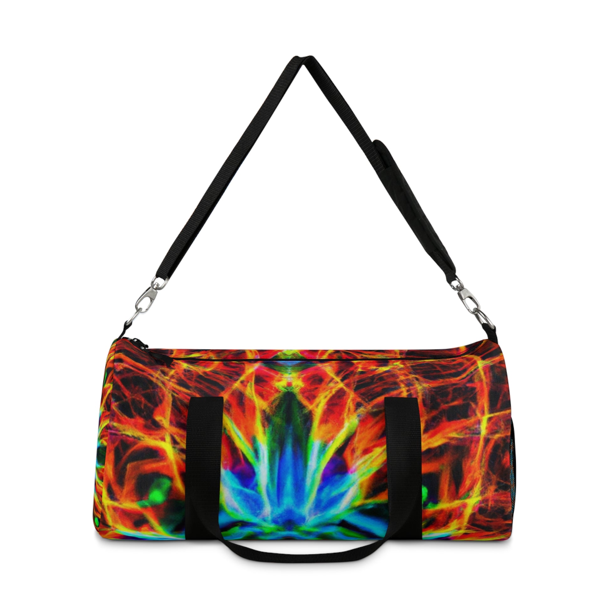 This ultra modern and eye-catching duffel bag features bold, 4k HD designs that combine trippy pineapples, kaleidoscopes, abstract art, and neon colors for a unique and stylish look. The bag is the perfect travel and gym accessory, and comes with several convenient carry pockets. #duffelbag #style #fashion #neon #pineapple #kaleidoscope #digitalart #abstract #4kHD #HD #travelaccessories #gymaccessories #urbanstyle #bold #modern #eye-catching #colorful #groovy #trendy #vibrant #streetstyle #unique #stylish #quality #durable #functional #luxury #convenience