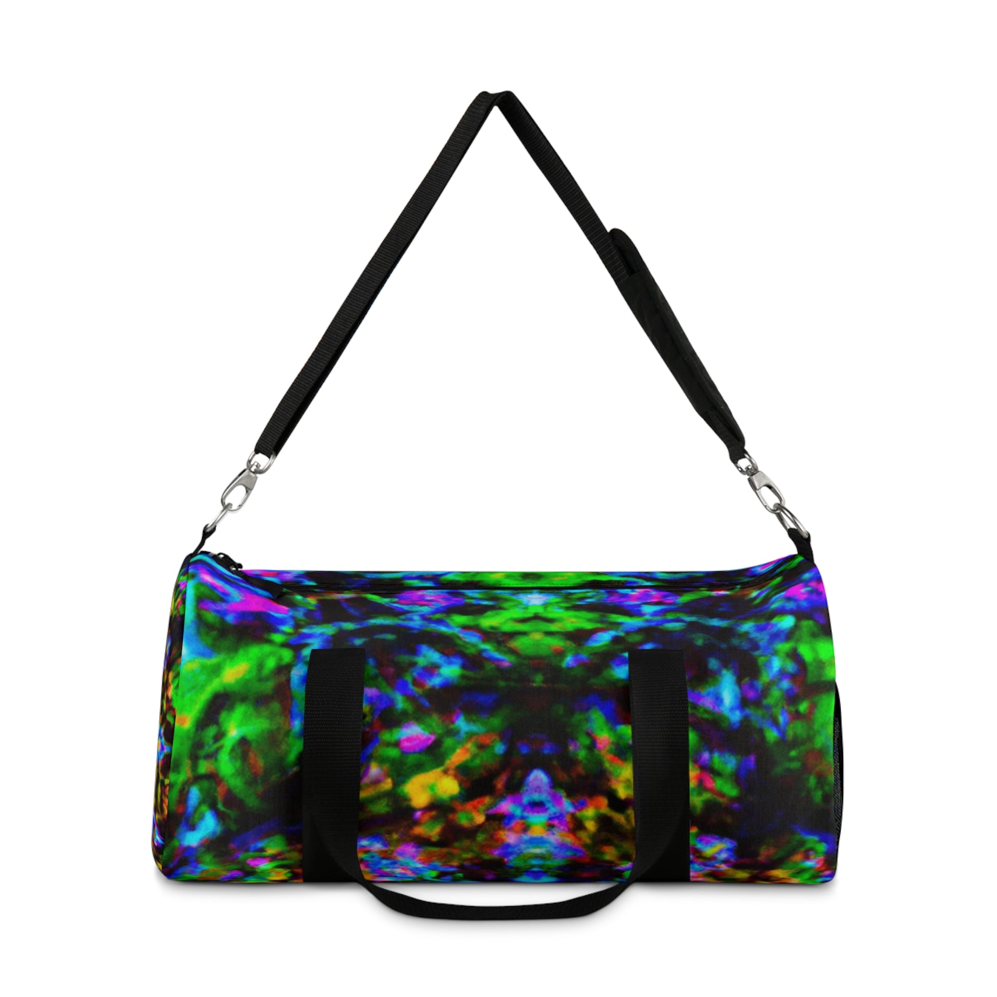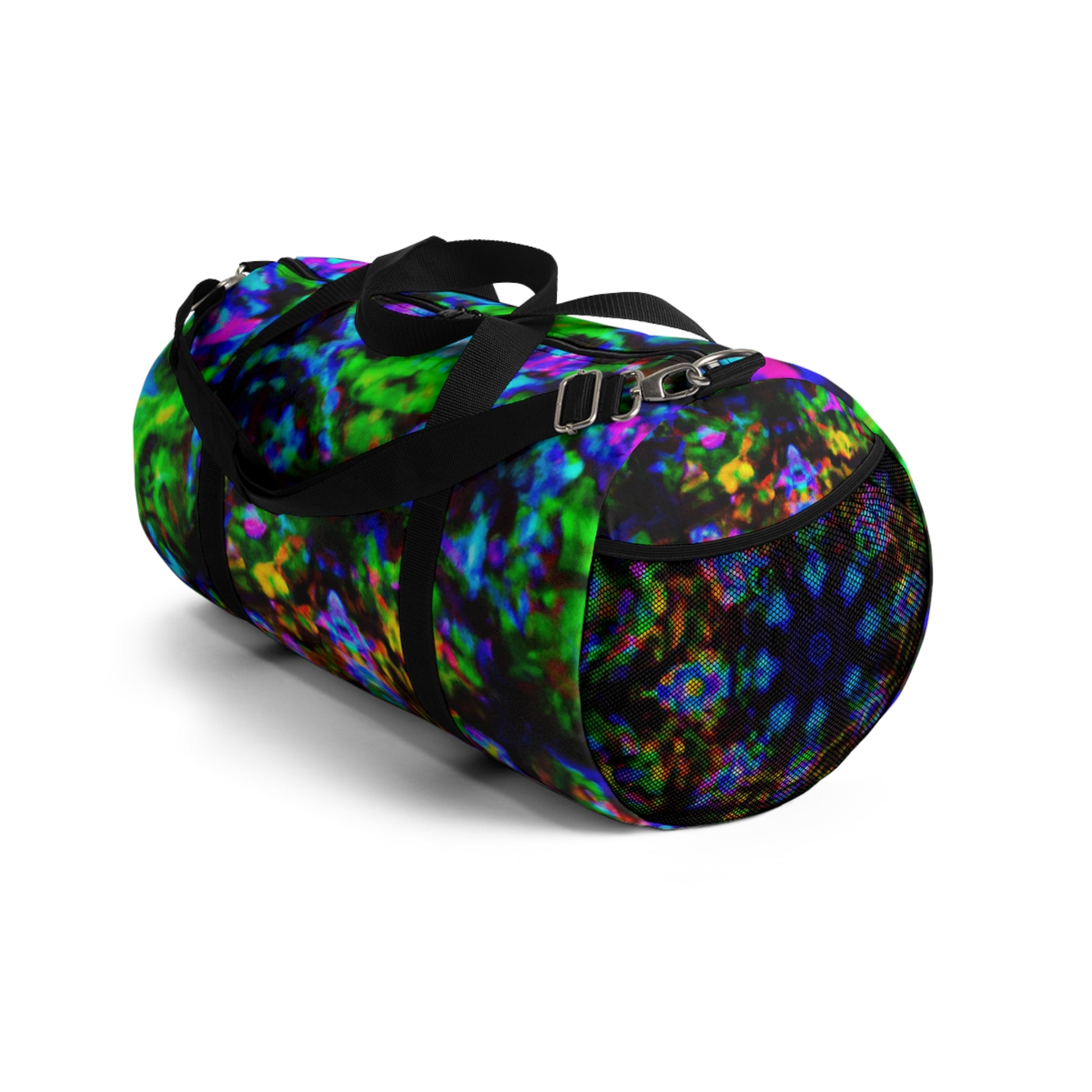 This duffle bag is custom designed with bright and bursting colors that will stand out in any setting. The art features trippy pineapple, kaleidoscope, abstract, digital and neon art, all in HD designs. Show off your individual style with this one-of-a-kind bag! #dufflebag #pineapple #kaleidoscope #abstract #digital #neon #HD #style #trippy #unique #colourful #bag #fashionable #outfit #vibrant #fabric #apparel #clothing #accessory #bold #artistic #hip #chic #trendy #graphic #original #creative #colorful