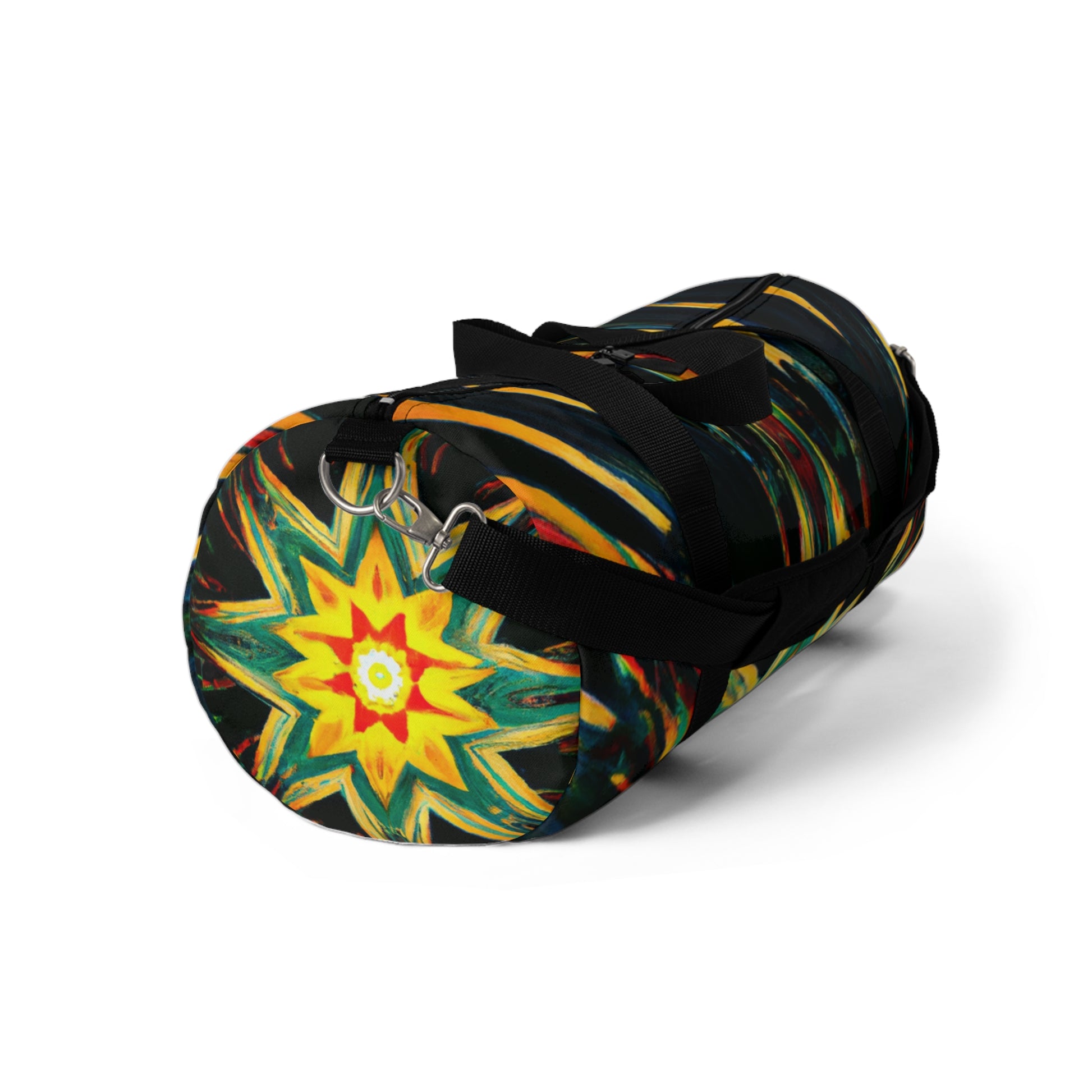 Bring the fun and style with this unique dufflebag! This eye-catching piece features vibrant, one-of-a-kind art with Trippy stars, kaleidoscope, abstract, digital, and 3D lines designs that are sure to set you apart from the crowd. The roomy interior and convenient shoulder strap make this the perfect bag for the beach, gym, or a getaway! #style #travel #statementpiece #3Dlines #Trippy #kaleidoscope #abstract #digitalart #vibrantcolors #nottinghills #dufflebag #onofakind #fashionist #fashionstatement #beachstyle #weekendgetaway #statementbag #sportychic #bags #accessory #fashionista #statementaccessories #accessorize #travelbag #duffle #gymstyle #adventure #bagstyle #beachyvibes