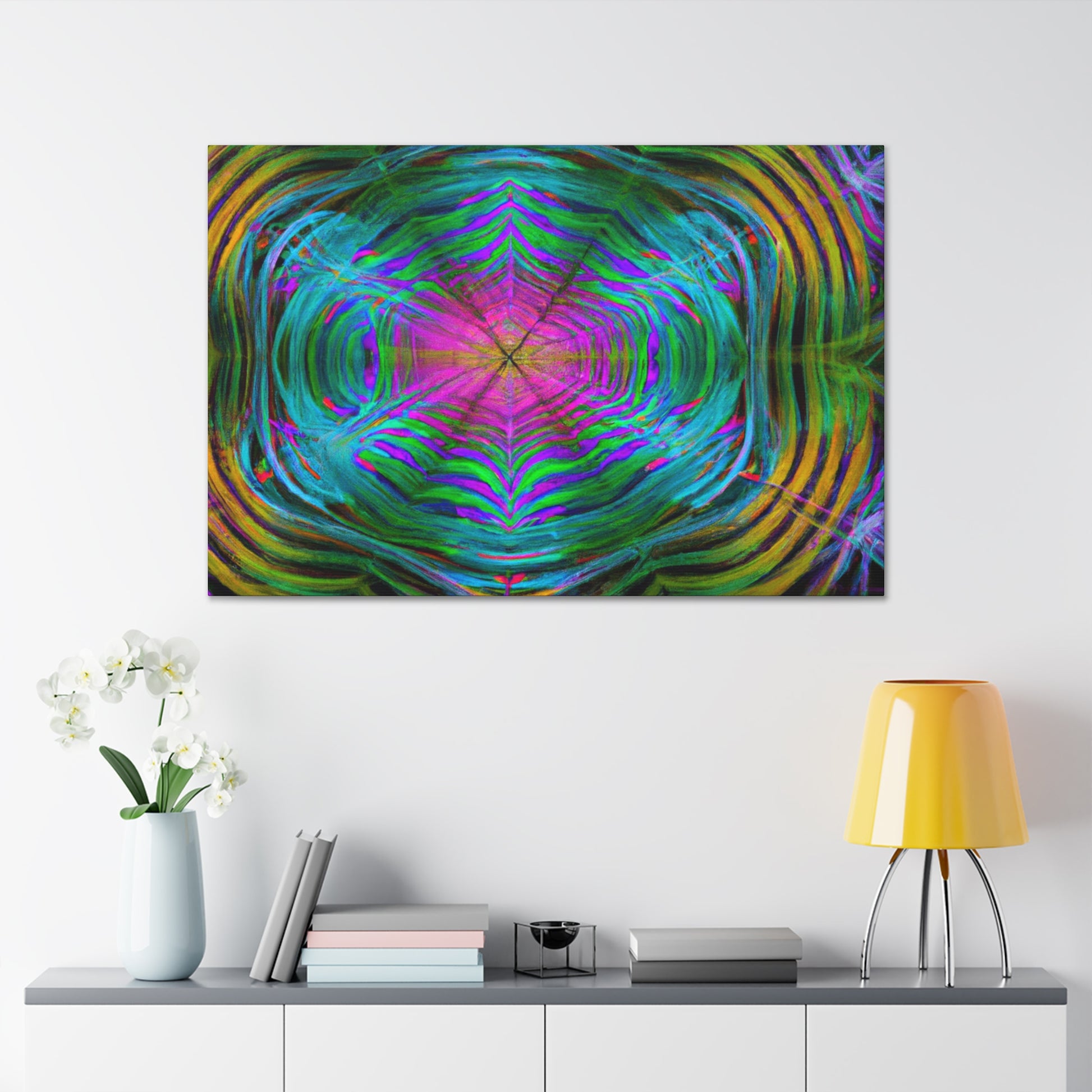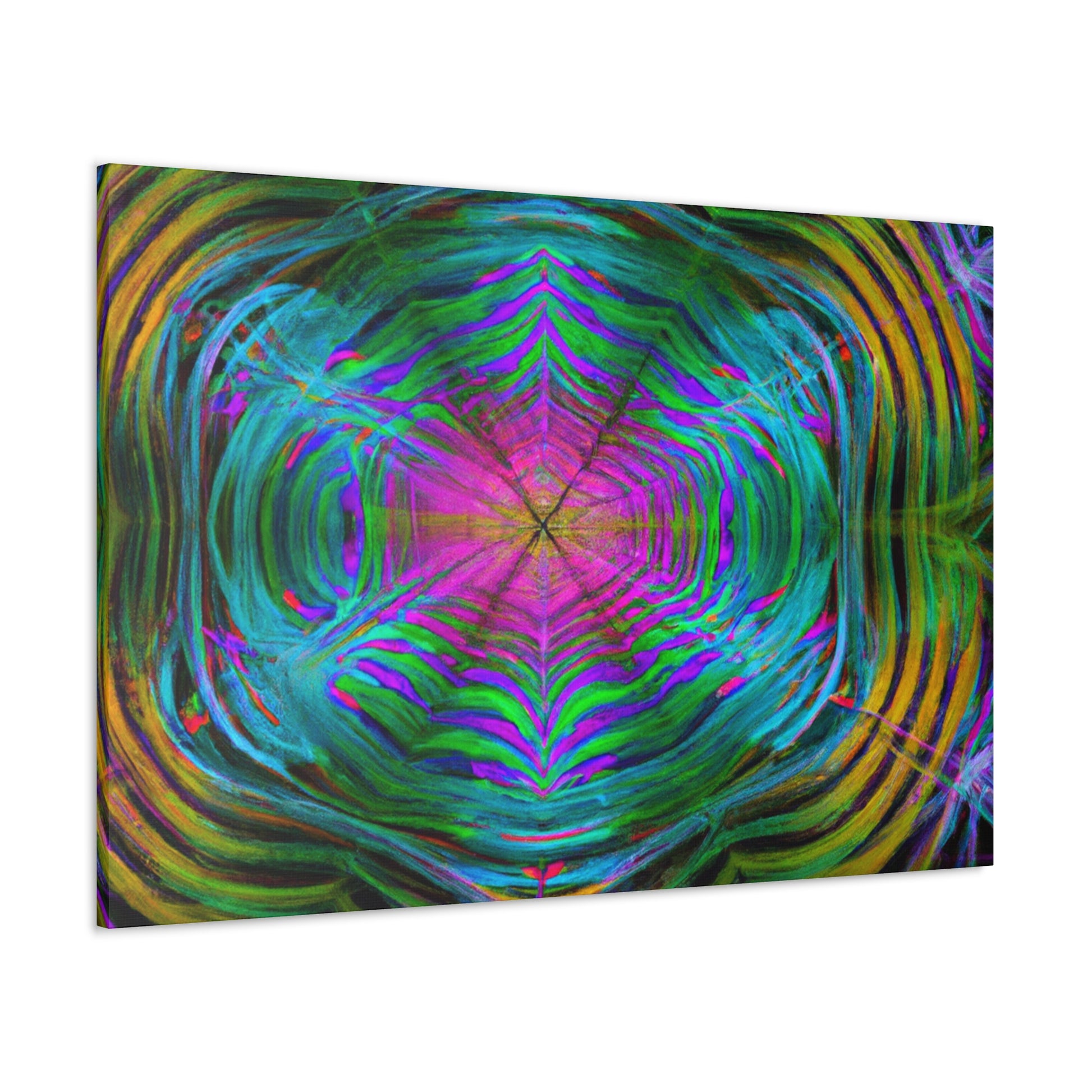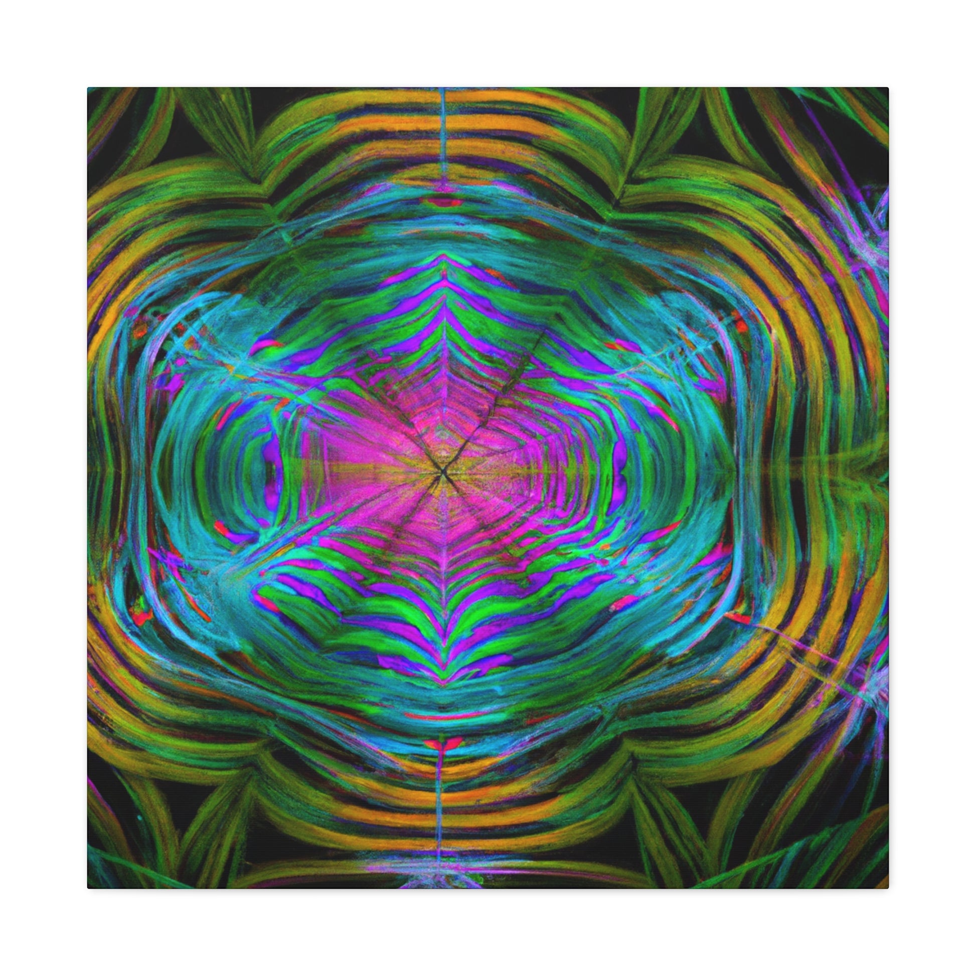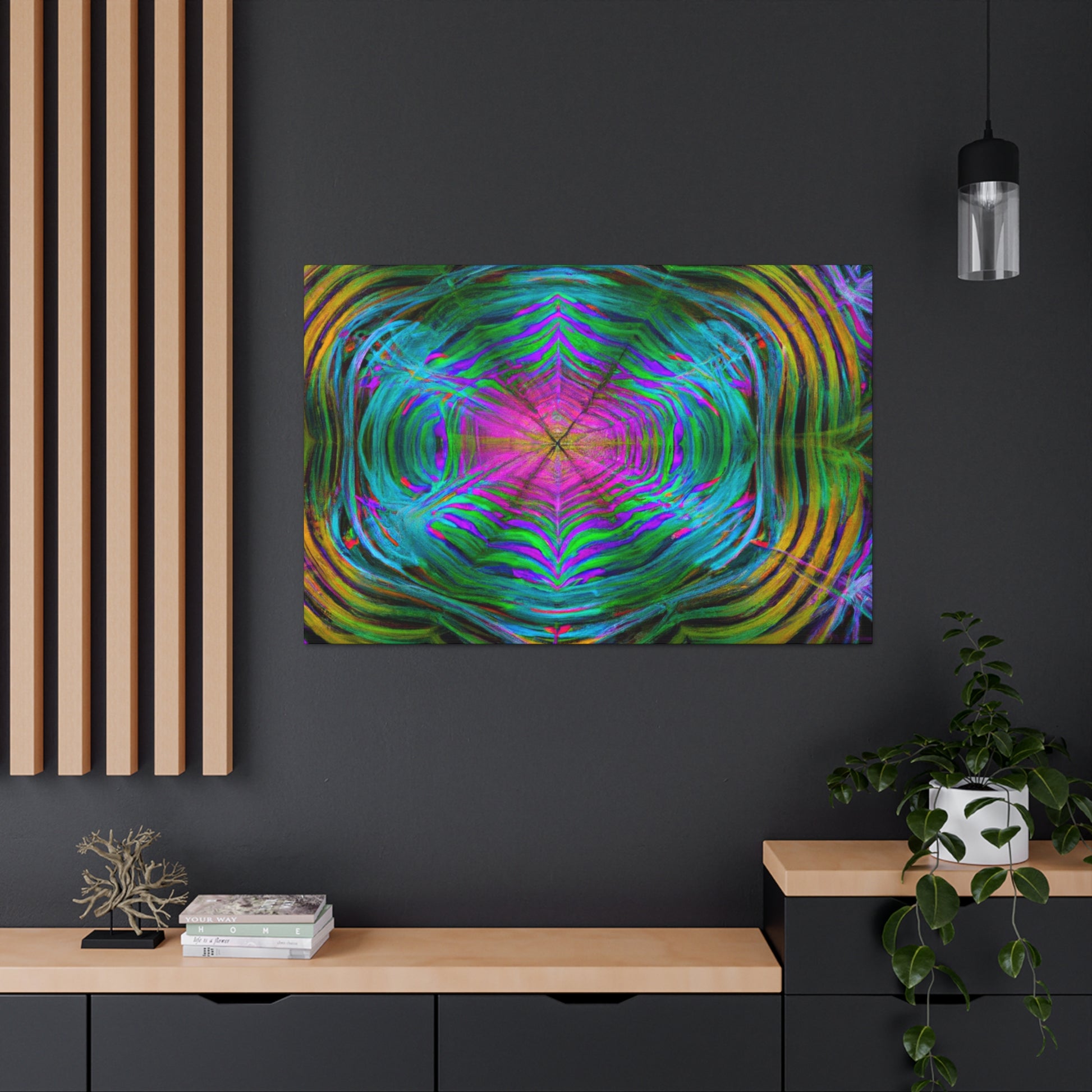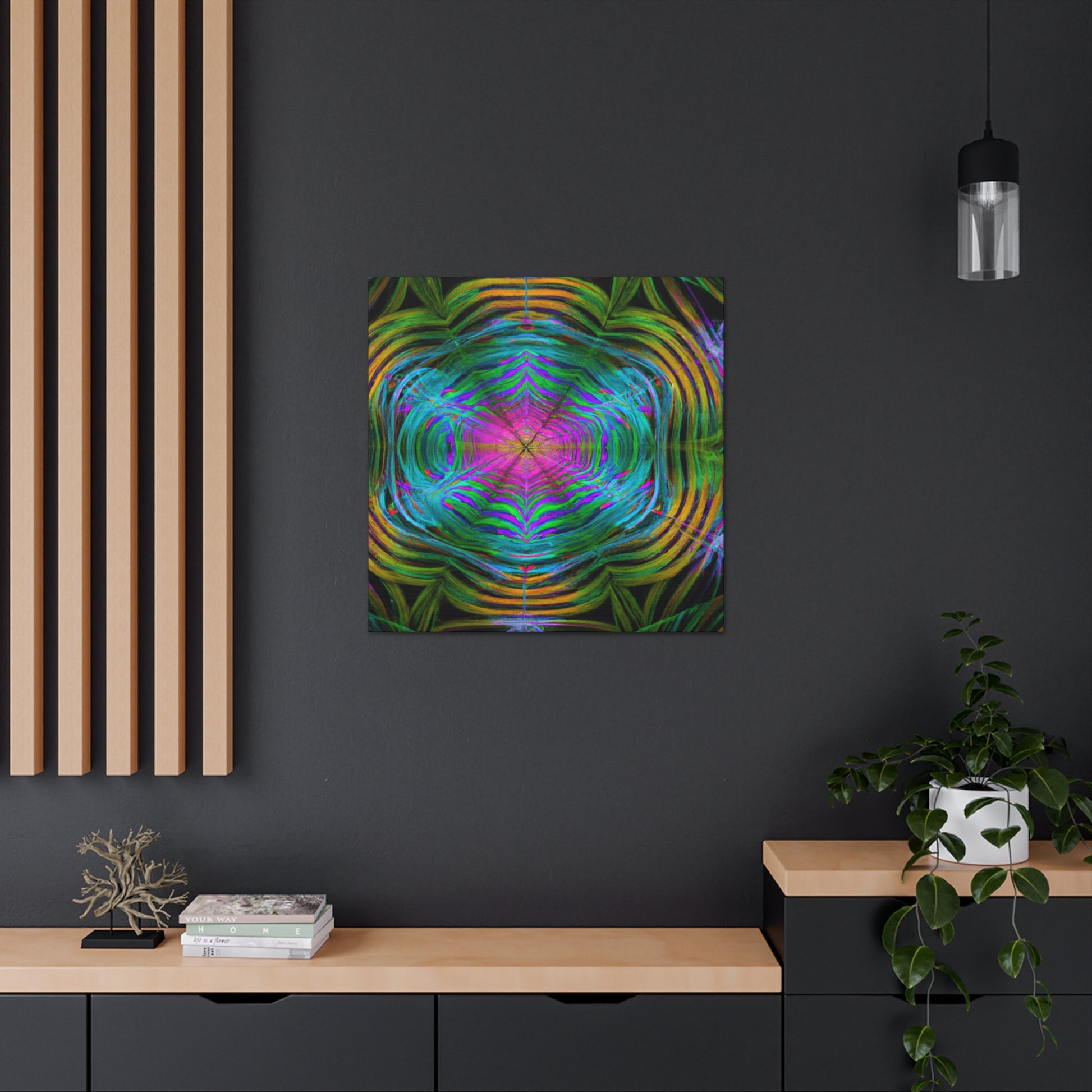This incredible canvas of Trippy Geometric Palm Leaves is a showstopper! Featuring kaleidoscope, abstract, digital art, vibrant colors, 3D lines, and fractal, this statement piece will bring life to any space. No matter the angle, it is bound to captivate your audience with its mesmerizing vibrancy and unique visual experience. #digitalart #palmtrees #kaleidoscope #abstractart #fractal #vibrantart #statementpiece #3dlines #art #canvasart #homestyling