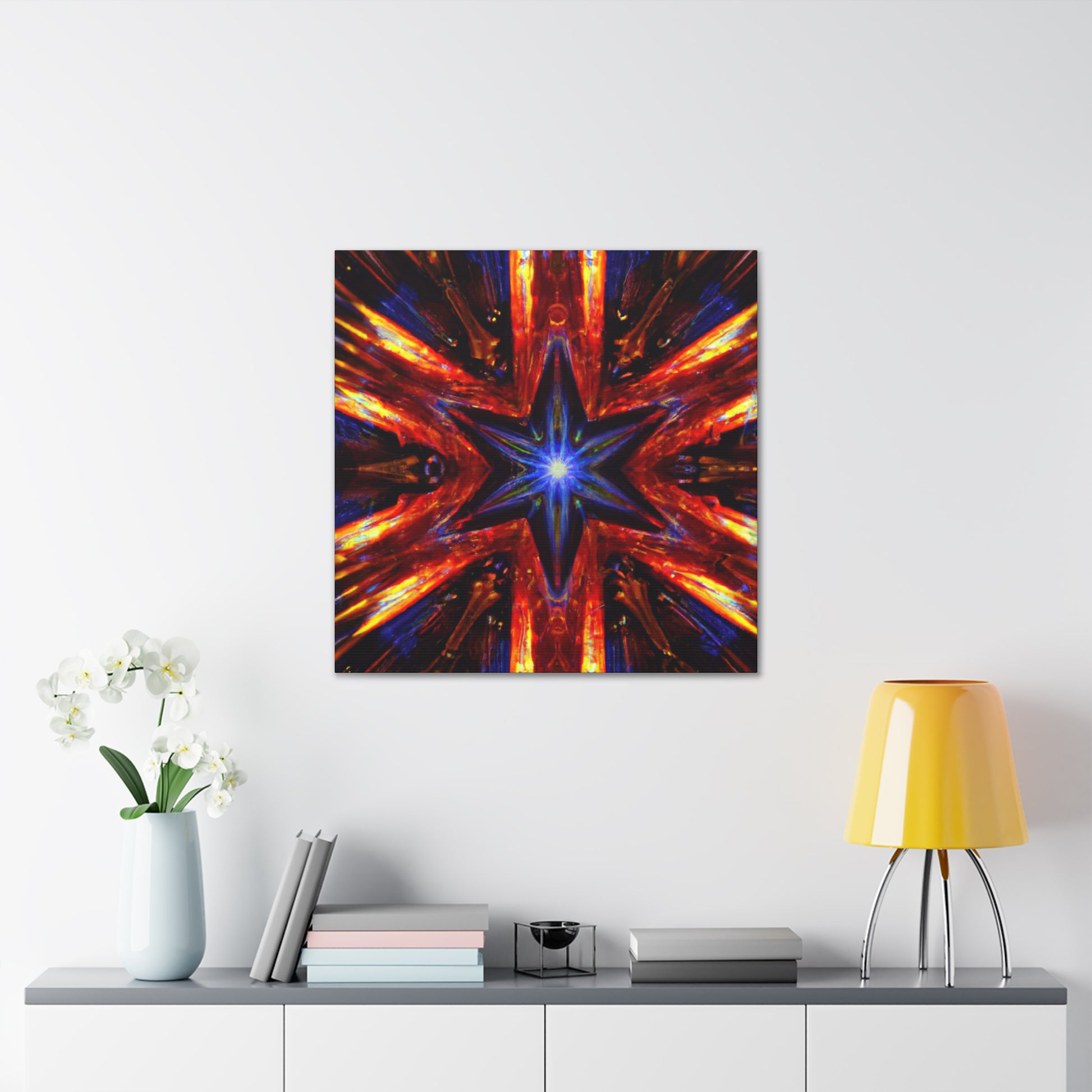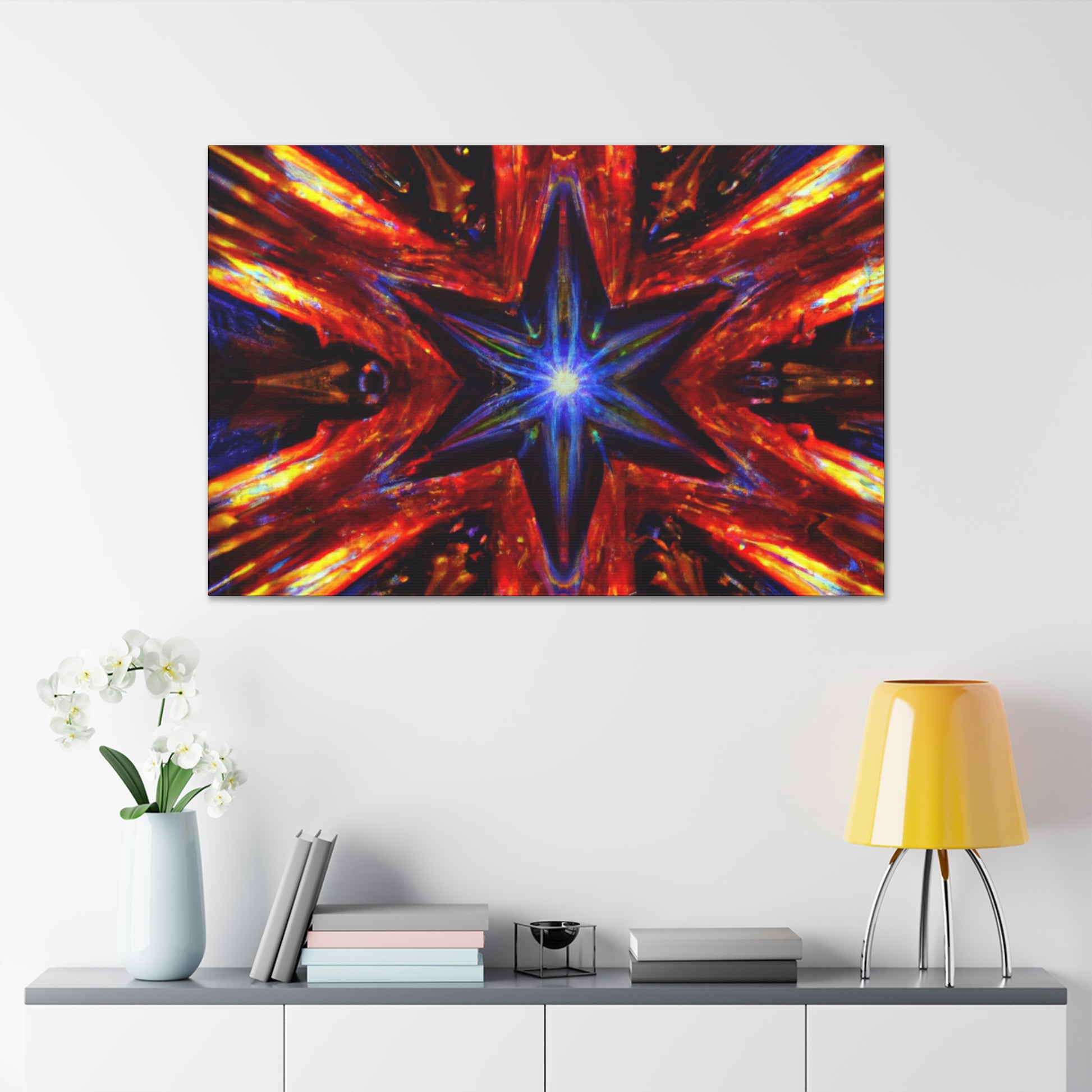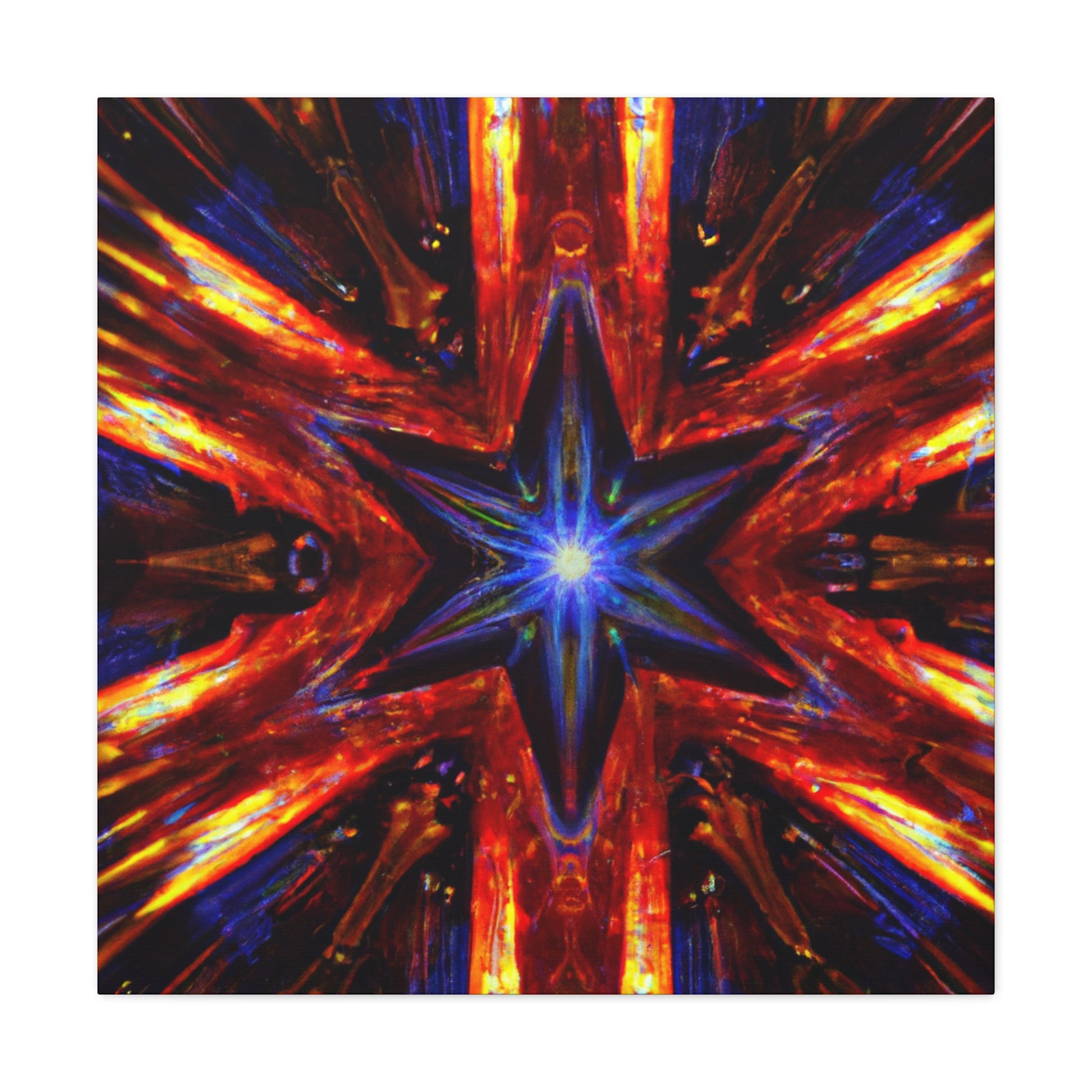 This beautiful HD canvas of Trippy Stars is an explosion of vibrant colors and abstract shapes that will mesmerize your guests. Symmetrical and dynamic shapes come together in a captivating kaleidoscope of motion. Get a mesmerizing, one-of-a-kind piece to add a feeling of action to any space. #wallart #canvas #kaleidoscope #abstract #digitalart #vibrantcolors #HD #trippystars #symmetrical #action #dynamic