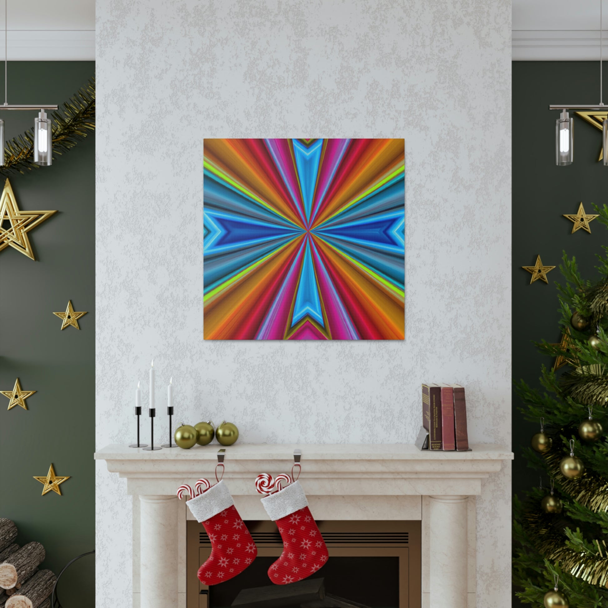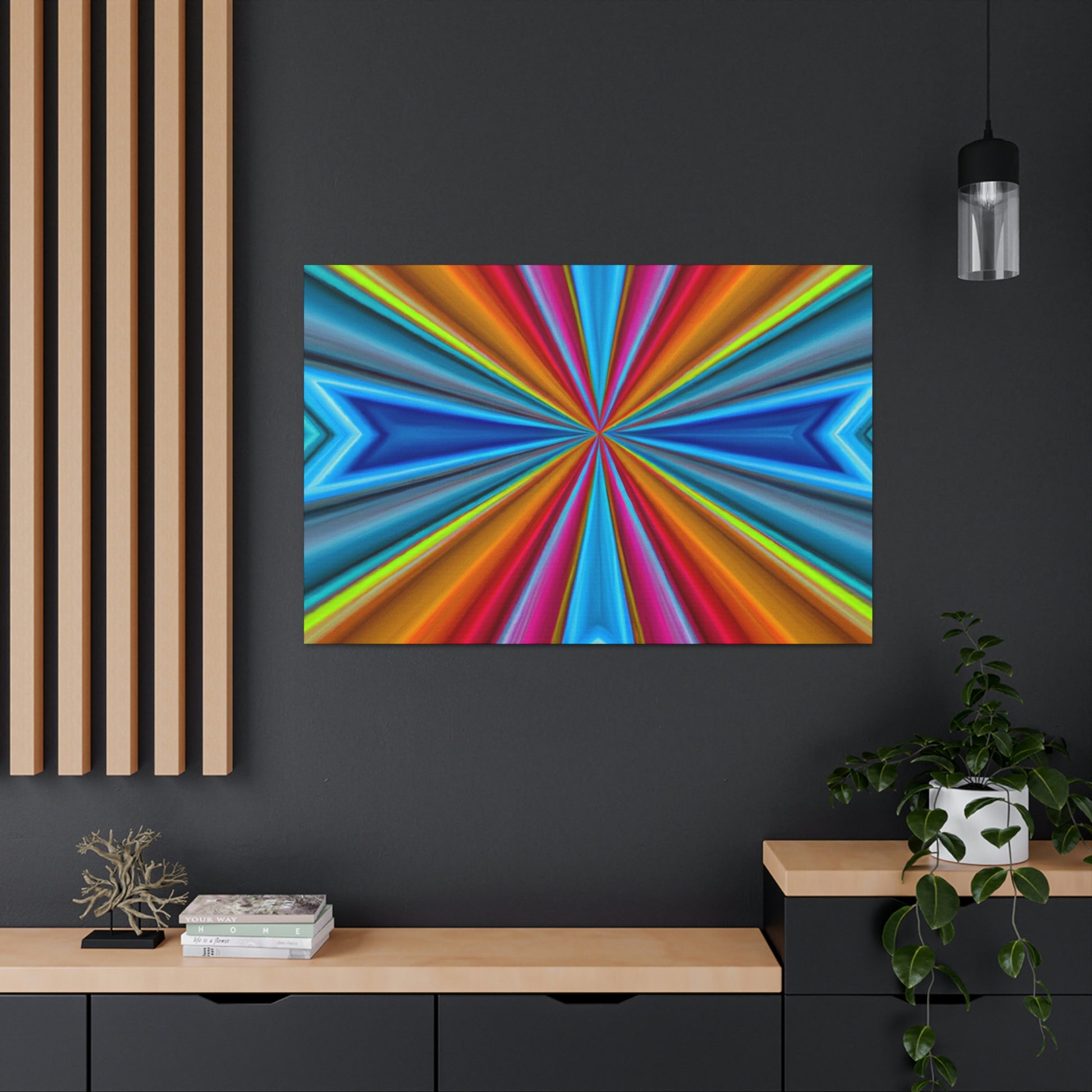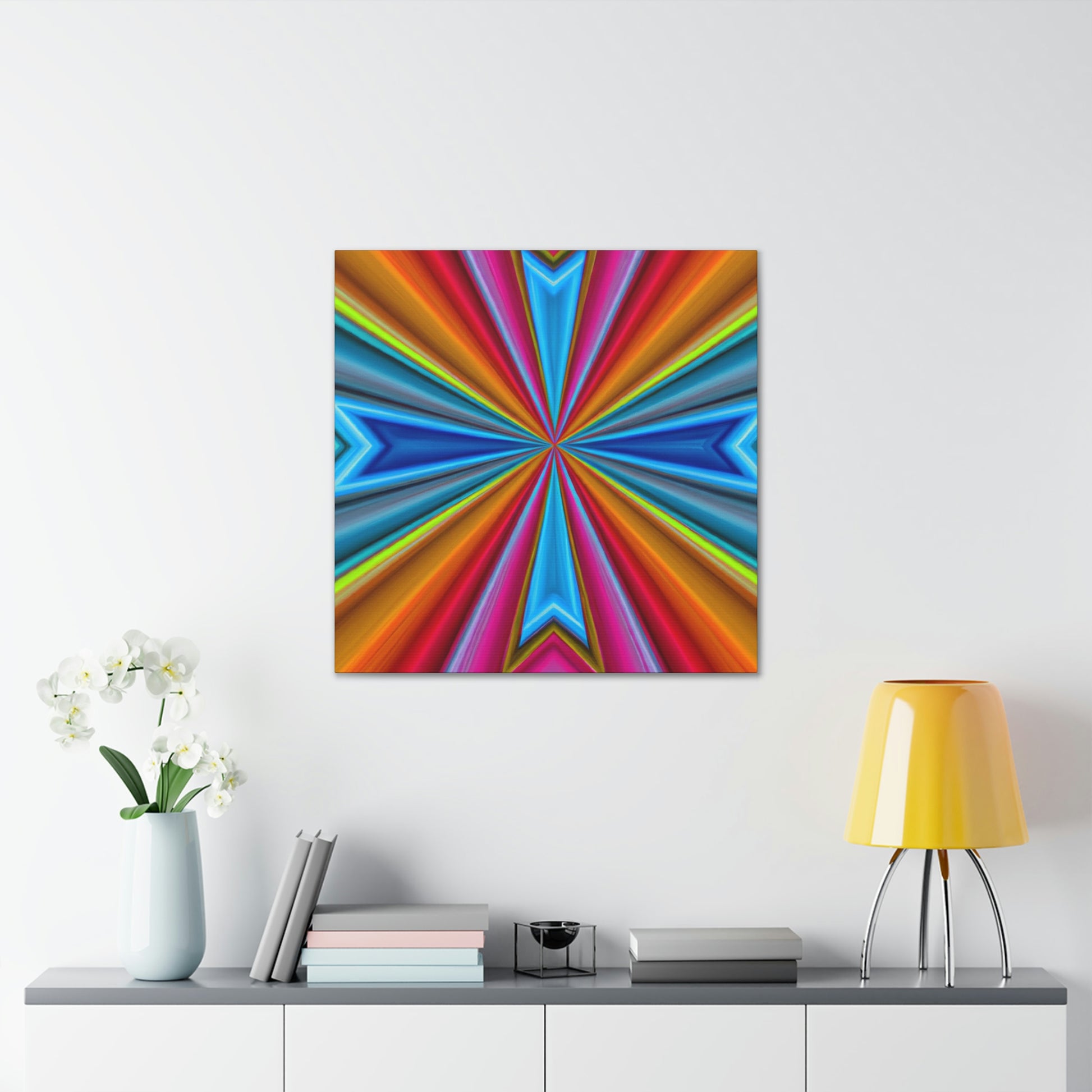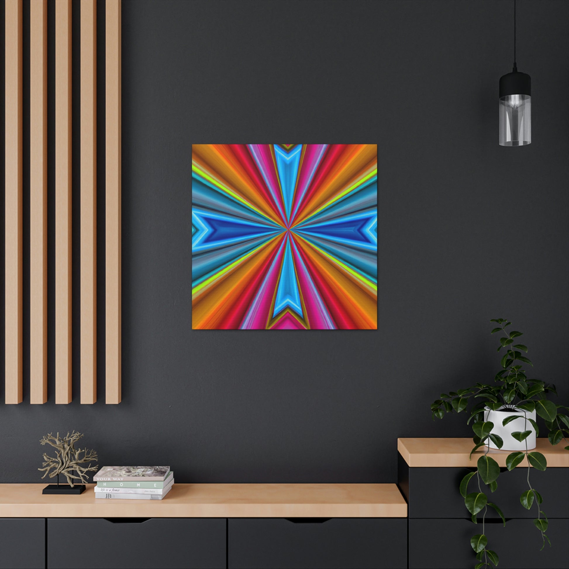 This vibrant canvas features a striking geometric center kaleidoscope with swaths of bright colors and three-dimensional features. Its vivid hues and captivating design make it the ideal statement piece for any room in the home. Hang it by itself, or use it as a bold accent to any wall décor. Add a pop of modern to your home with this unique canvas and make a bold statement. #3Dart #geometricart #wallart #canvasart #kaleidoscopeart #modernart #interiorart #artdecor #wallhanging #decortrends #homemakeover
