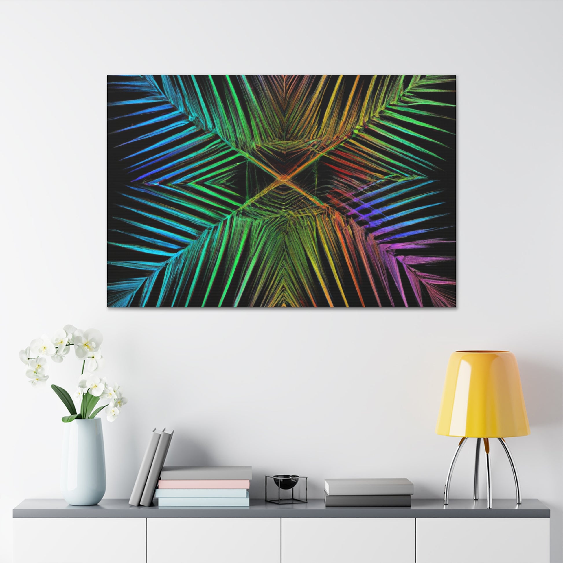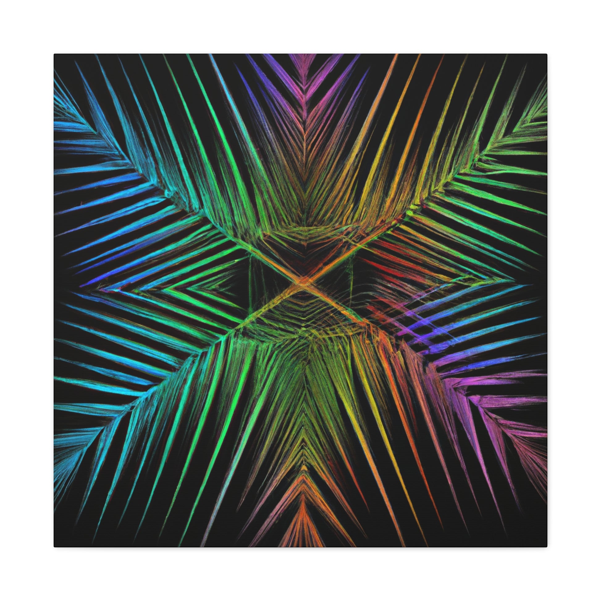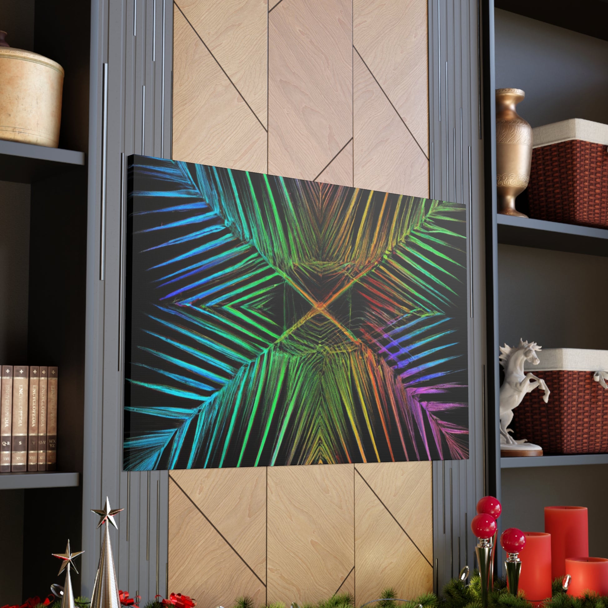 Lose yourself in the mesmerizingly psychedelic contemporary design of this canvas. Featuring vivid hues, bold 3D lines, and abstract geometric palm leaves that blend into a kaleidoscopic world, this art will create a vibrant focal point in any room. Its mesmerizing effects of light and color will energize your living space and captivate your guests. Perfectly encapsulating the essence of modern art, this canvas will bring out the designer in you. #contemporaryart #modernart #canvas #psychedelicart #palmleaves #kaleidoscope #abstract #3dlines #fractal #digitalart #vibrantcolors