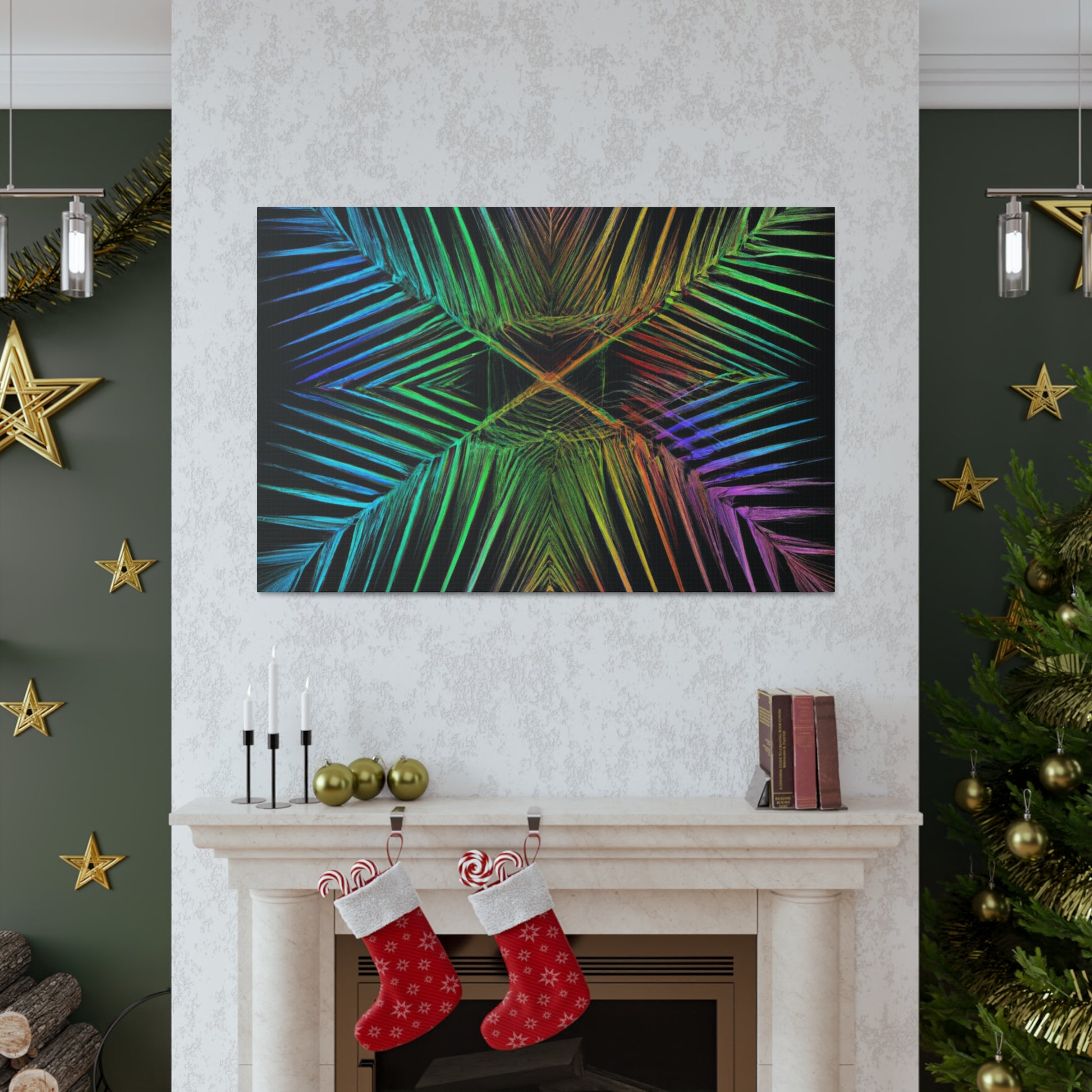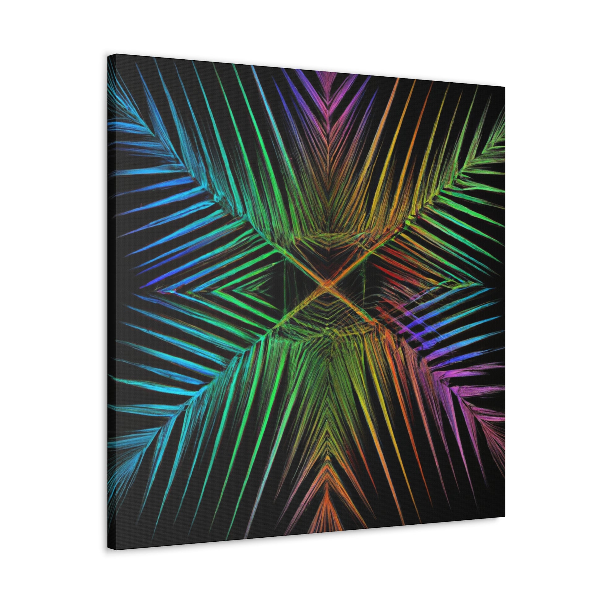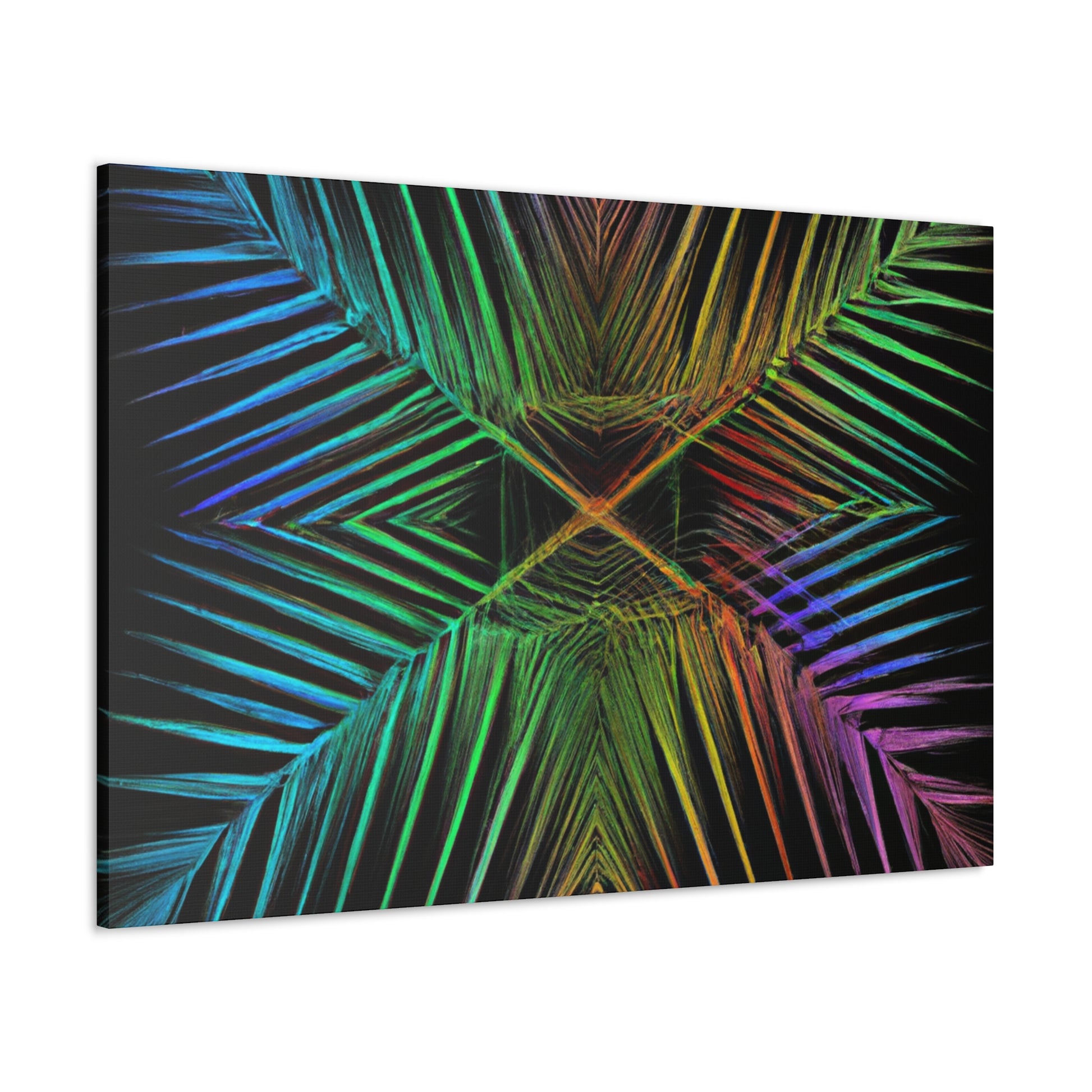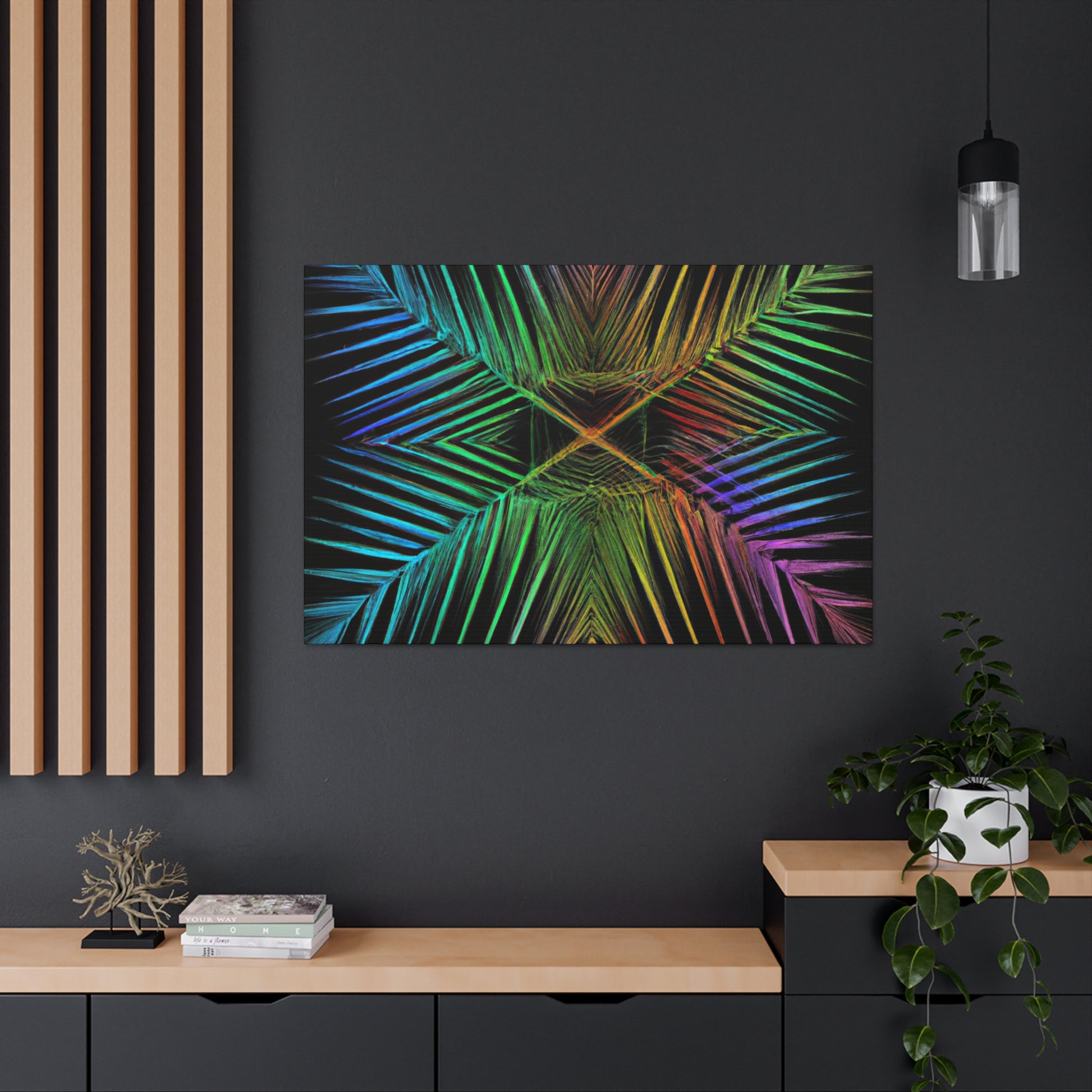 Lose yourself in the mesmerizingly psychedelic contemporary design of this canvas. Featuring vivid hues, bold 3D lines, and abstract geometric palm leaves that blend into a kaleidoscopic world, this art will create a vibrant focal point in any room. Its mesmerizing effects of light and color will energize your living space and captivate your guests. Perfectly encapsulating the essence of modern art, this canvas will bring out the designer in you. #contemporaryart #modernart #canvas #psychedelicart #palmleaves #kaleidoscope #abstract #3dlines #fractal #digitalart #vibrantcolors