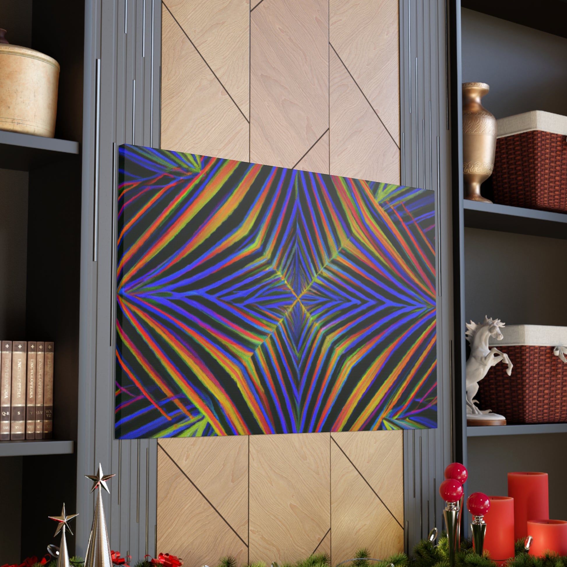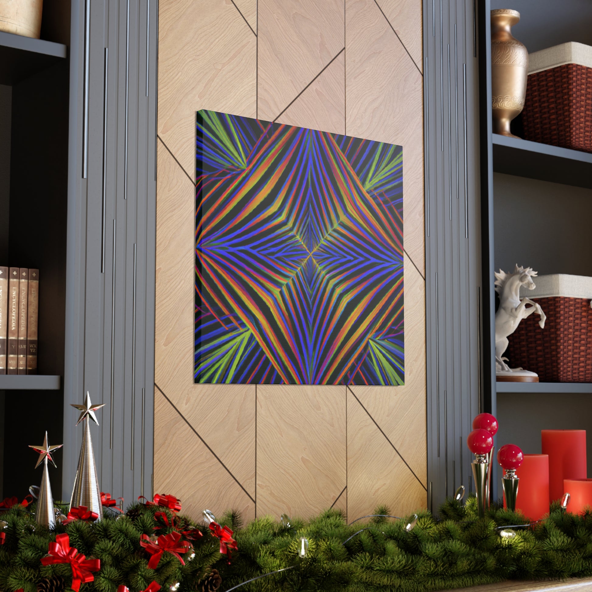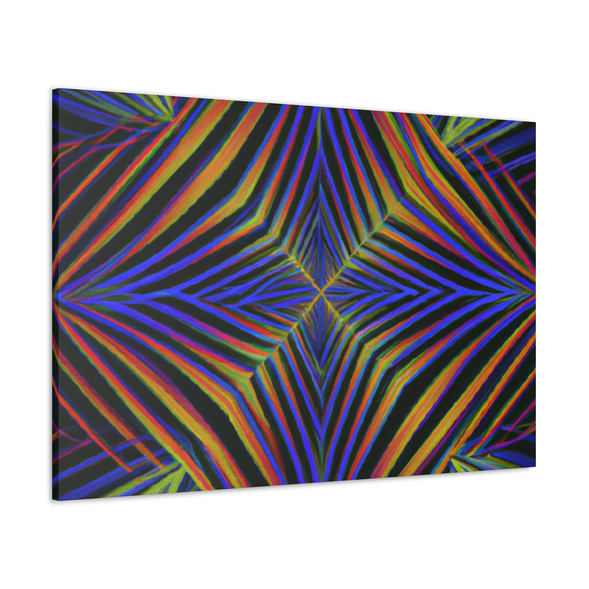 This Trippy Geometric Palm Leaves canvas uses abstract, digital art, vibrant colors, 3D lines, and fractal to create a psychedelic yet calming piece. Perfect for any room in your home, the work is sure to take your breath away. Ready to hang and enjoy the kaleidoscope beauty! #trippyart #geometricart #palmleaves #kaleidoscope #abstractart #digitalart #vibrantcolors #3dlines #fractal #psychedelicart #homedecorart