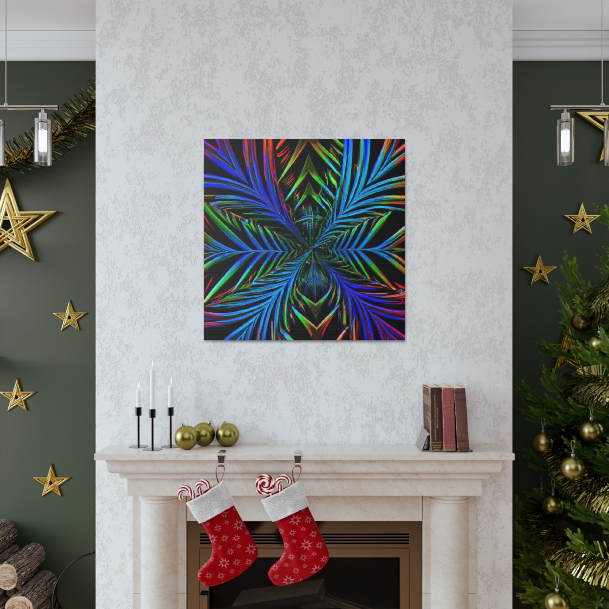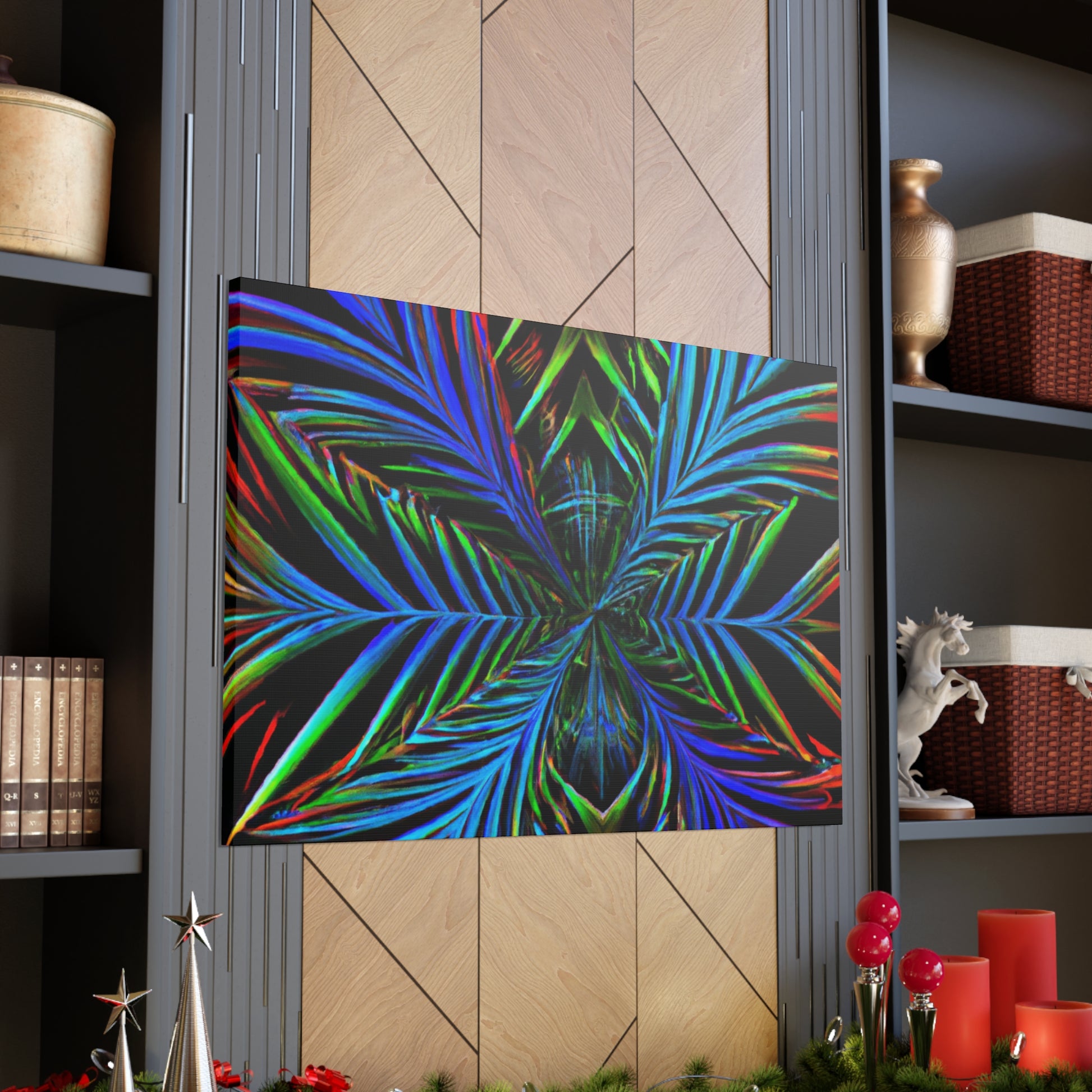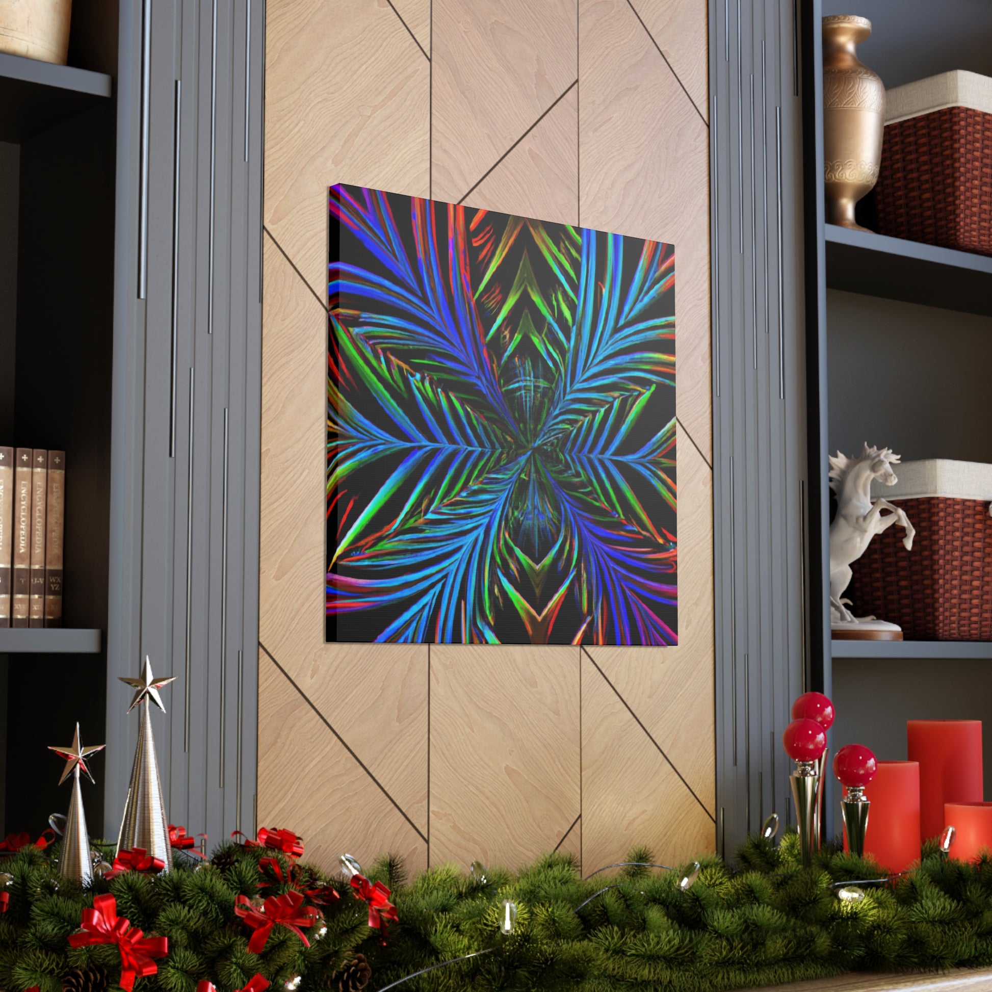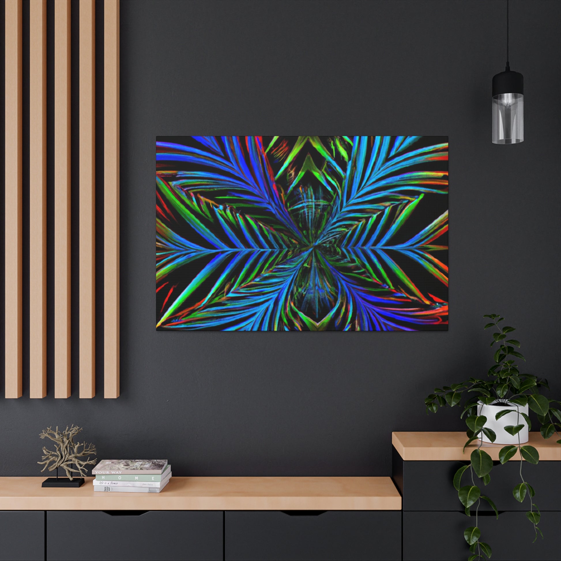This striking canvas art features bright and bold colors, creating a stunning trippy, geometric design. It features kaleidoscope, abstract, digital art, vibrant colors, 3D lines, and fractal all together in one unique piece. A perfect combination of modern and abstract, lend a stunning look to any wall in your space. #geometricpalmleaves #kaleidoscope #digitalart #abstractart #3Dlines #fractal #vibrantcolors #canvasart #trippyart #modernart #contemporaryart