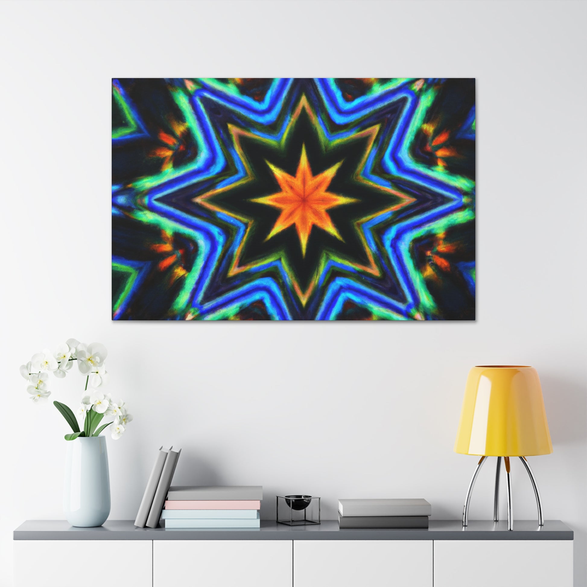 This vibrant digital art features a kaleidoscope of trippy stars, abstract designs, and bright colors! Its HD resolution and symmetrical composition will be sure to capture attention! It's the perfect addition to any modern home or office. #Canvas #DigitalArt #TrippyStars #Kaleidoscope #Abstract #VibrantColors #HD #Symmetrical #HomeDecor #OfficeDecor #Design