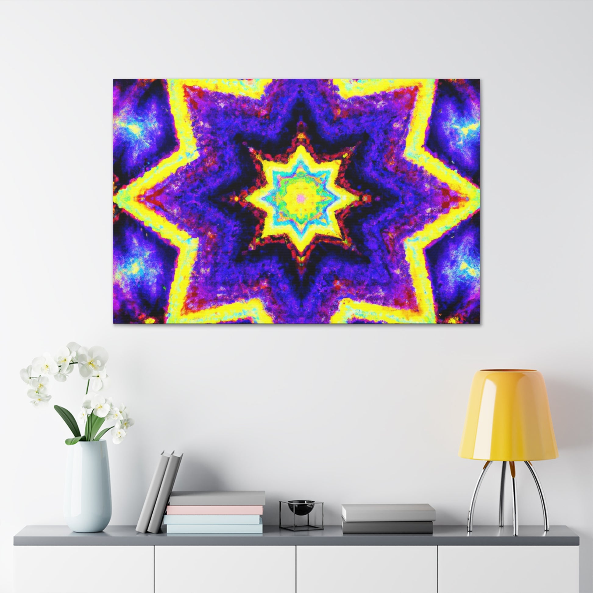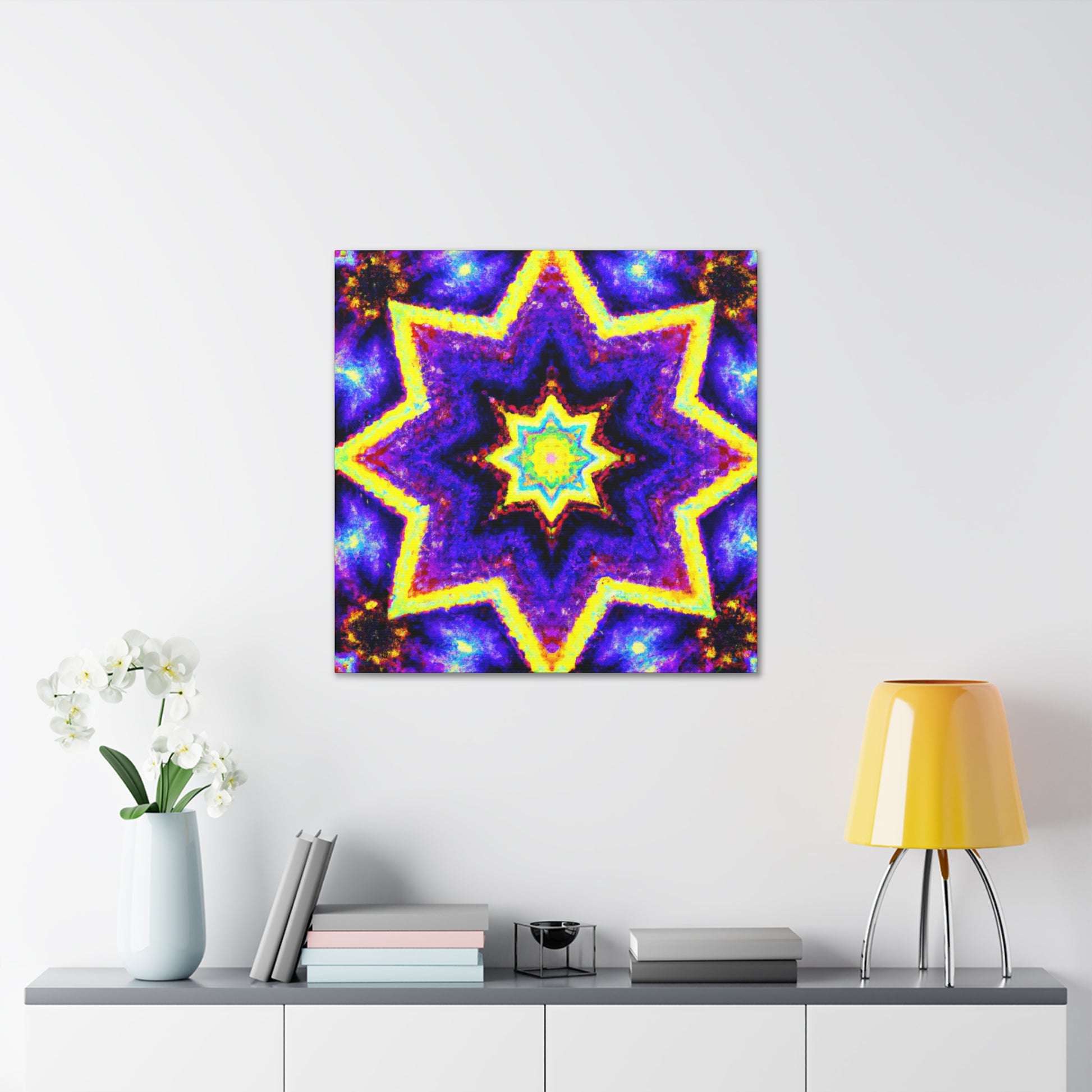 This amazing canvas brings a unique and vibrant style to any space with its combination of trippy stars, kaleidoscope, abstract, and digital art. Brought to life with brilliant and vivid colors, this HD quality art piece is perfect for creating a symmetrical look - perfect for any modern art enthusiast. #trippystars #kaleidoscope #abstract #digitalart #vibrantcolors #HD #center #symmetrical#art #interiordesign #style#interiorinspo