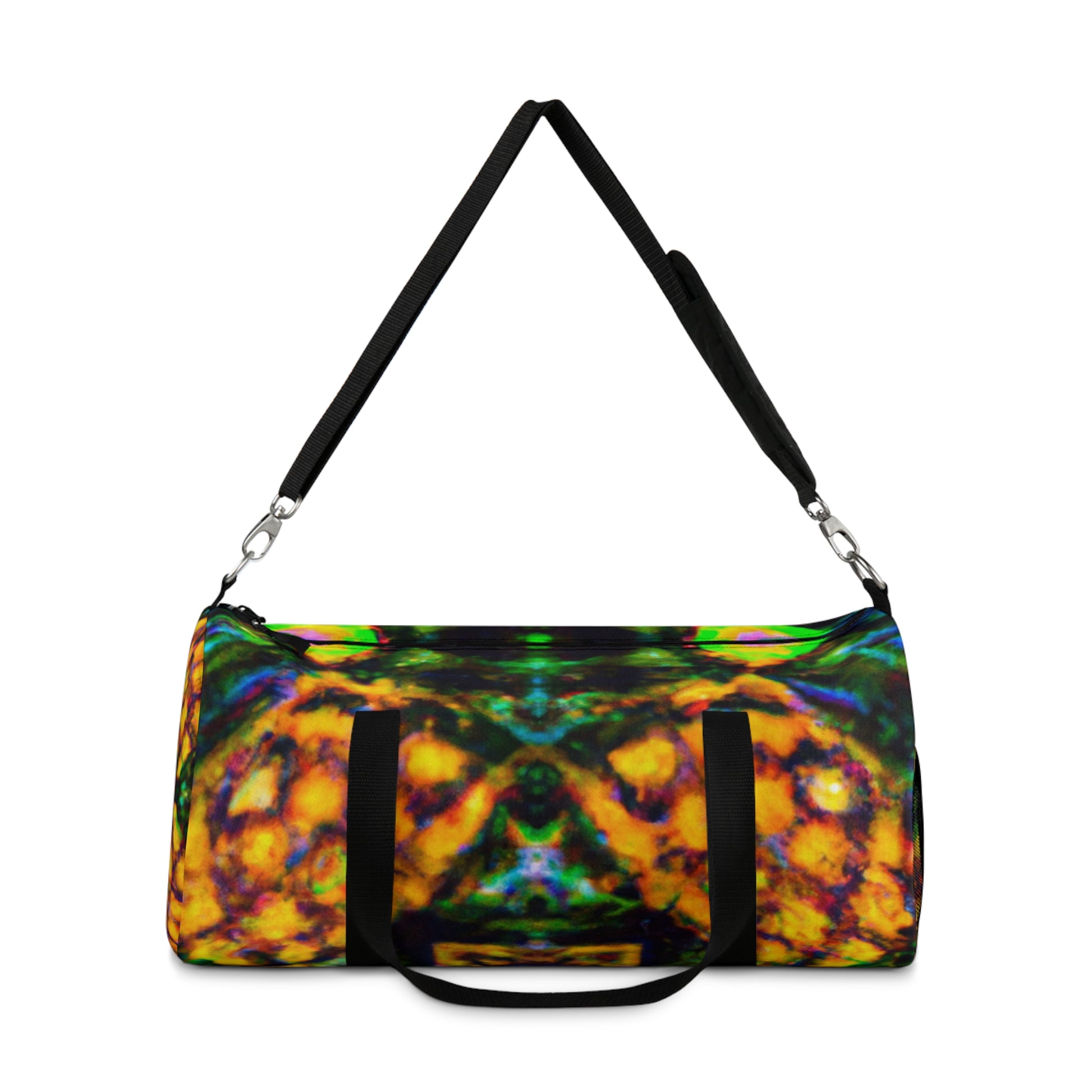 Brighten up your everyday style with this stylish custom printed dufflebag. With funky trippy pineapple, kaleidoscope, abstract, digital art, neon colors, and HD designs, you'll be sure to make a statement wherever you go! Super spacious interior makes this bag a great weekend-away accessory. #dufflebag #pineapple #kaleidoscope #abstract #digitalart #neoncolors #HDdesigns #style #fashion #weekendaway #CustomPrinted #statementpiece #unique #stylish #onpoint #trending #trendy #bright #bold #standout #oustanding #versatile #essential #funky #colourful #creative #trippy #willturnheads