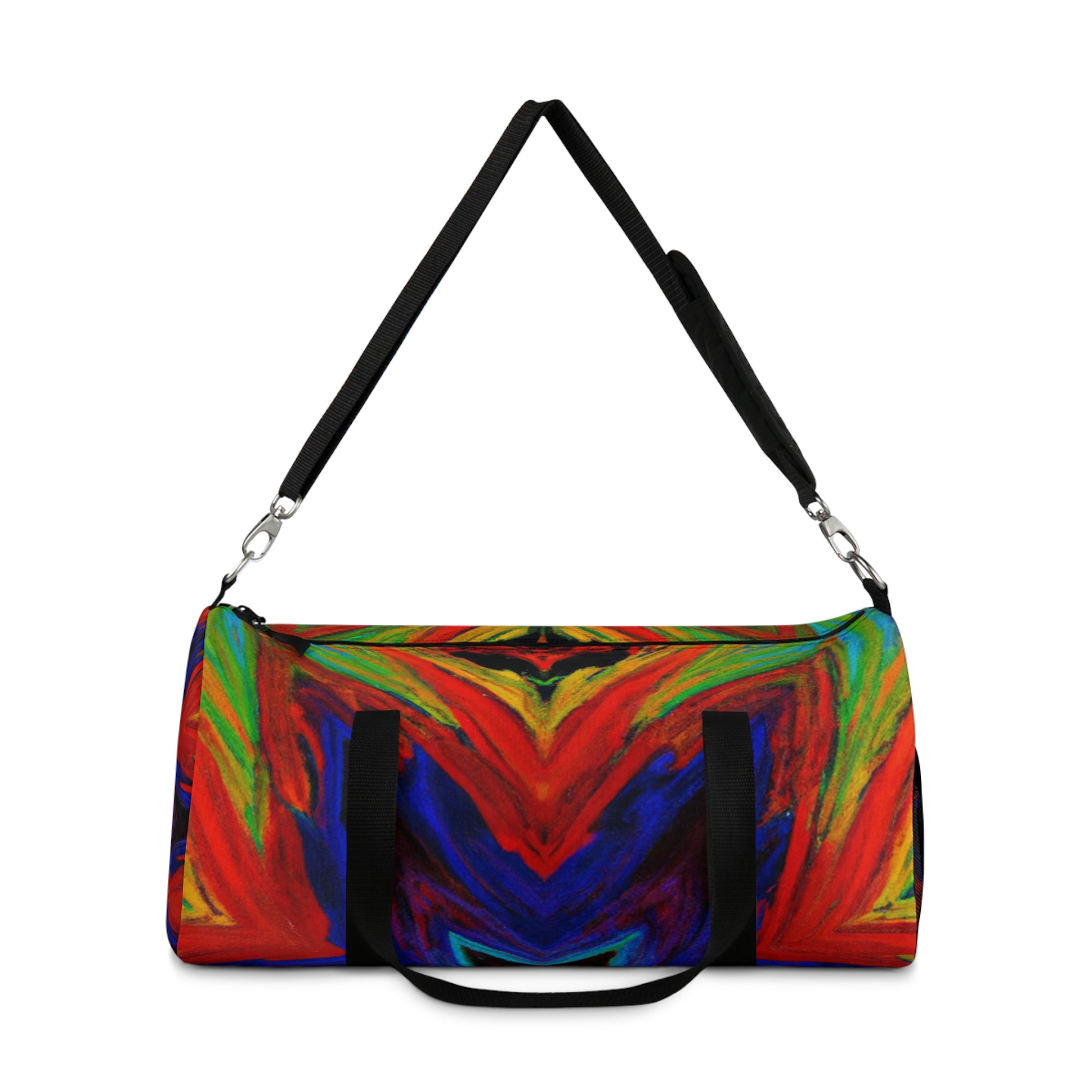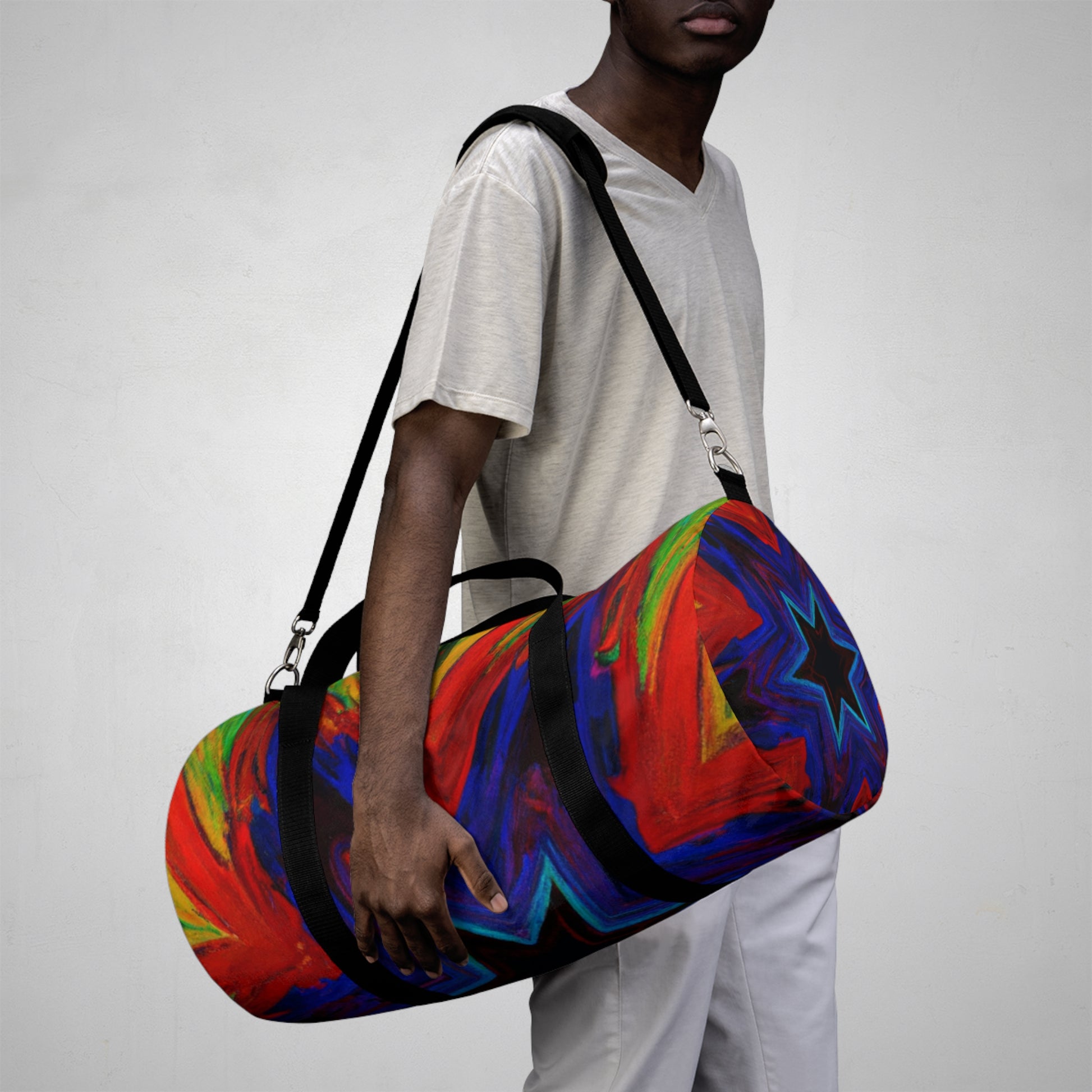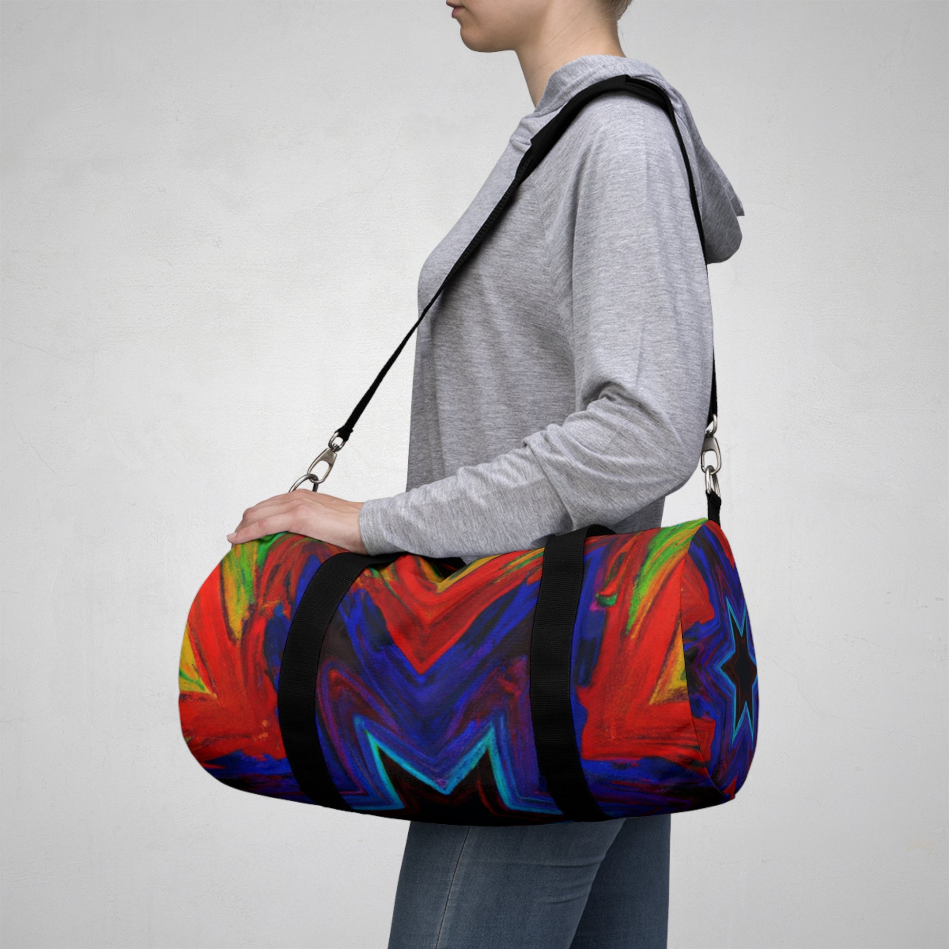 This statement-making duffle bag is art come to life! The Trippy Stars, Kaleidoscope, Abstract, Digital Art, and 3D Lines all come together in a unique and vibrantly colored design. Whether making an everyday statement or showing off your funky style, this duffle bag will make you stand out from the crowd! #dufflebag #bag #style #fashion #statementpiece #kaleidoscope #trippy #stars #abstract #vibrant #digitalart #3dlines #trendy #streetstyle #standout #unique #trendsetter #3D #lines #pattern #colorful #onpoint #baggage #travelbag #travelstyle #travellook #bagpack