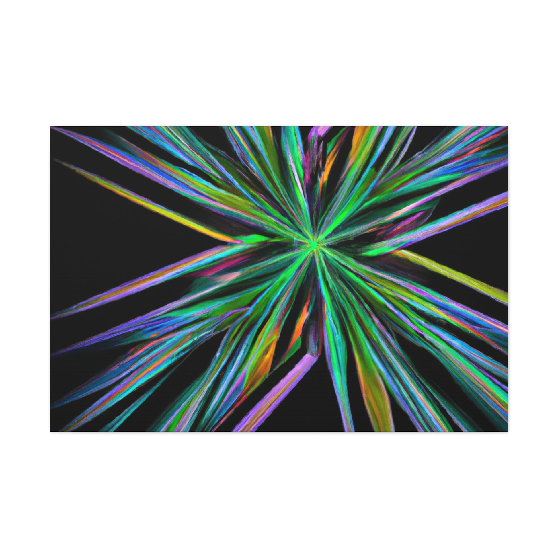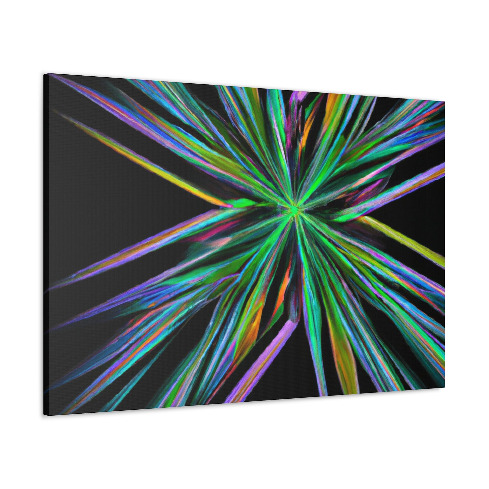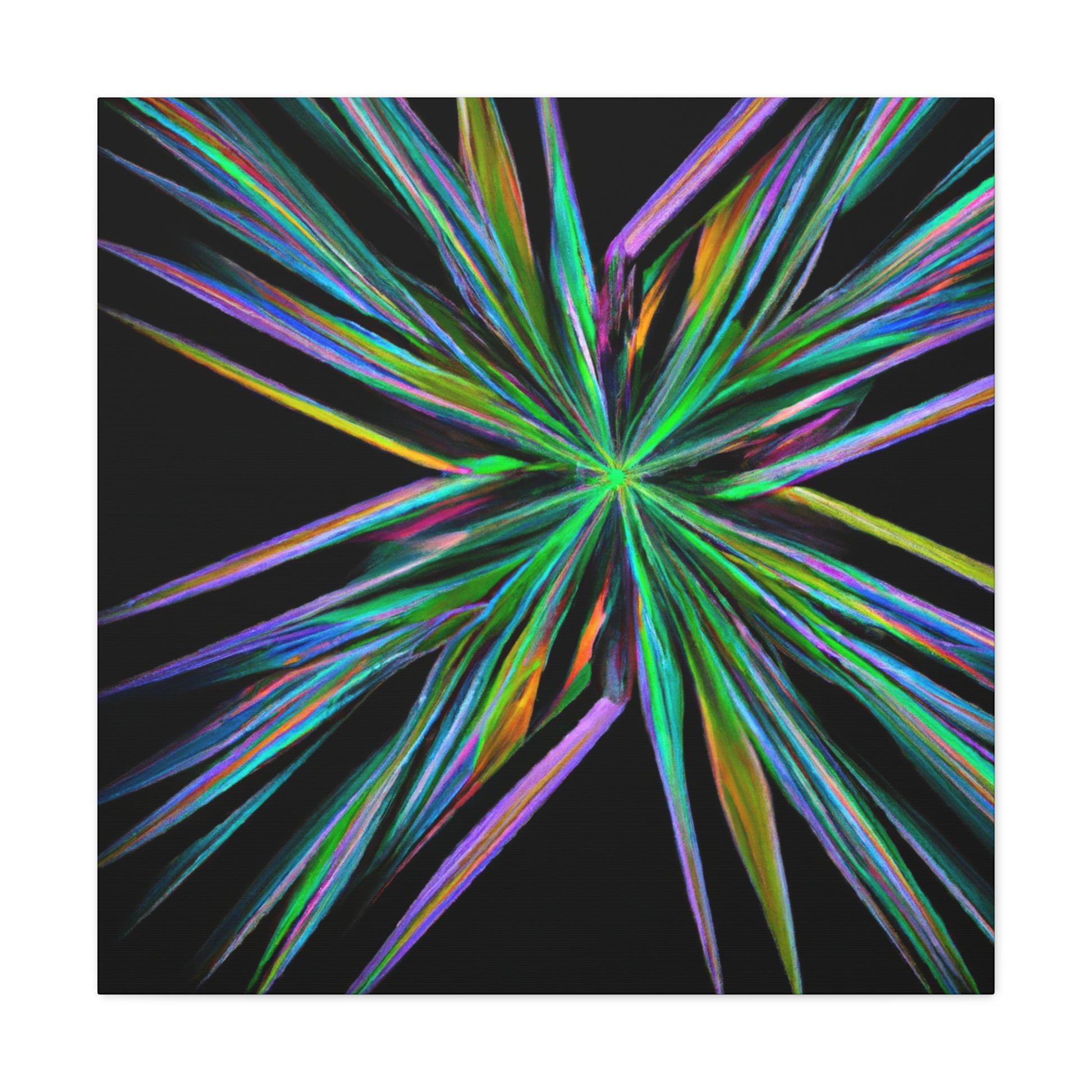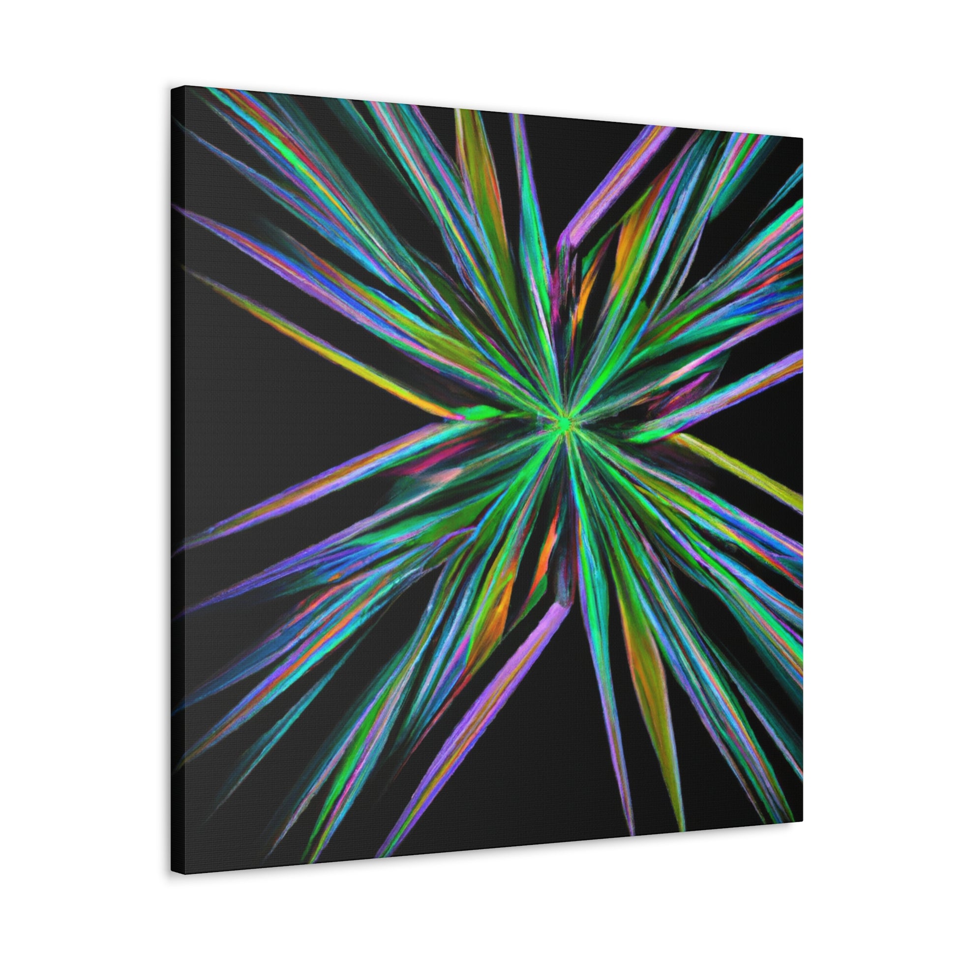 Bring the beauty of geometry to life with this Trippy Geometric Palm Leaves, Kaleidoscope, Abstract, Digital Art, Vibrant Colors, 3D Lines, & Fractal Canvas. Take your