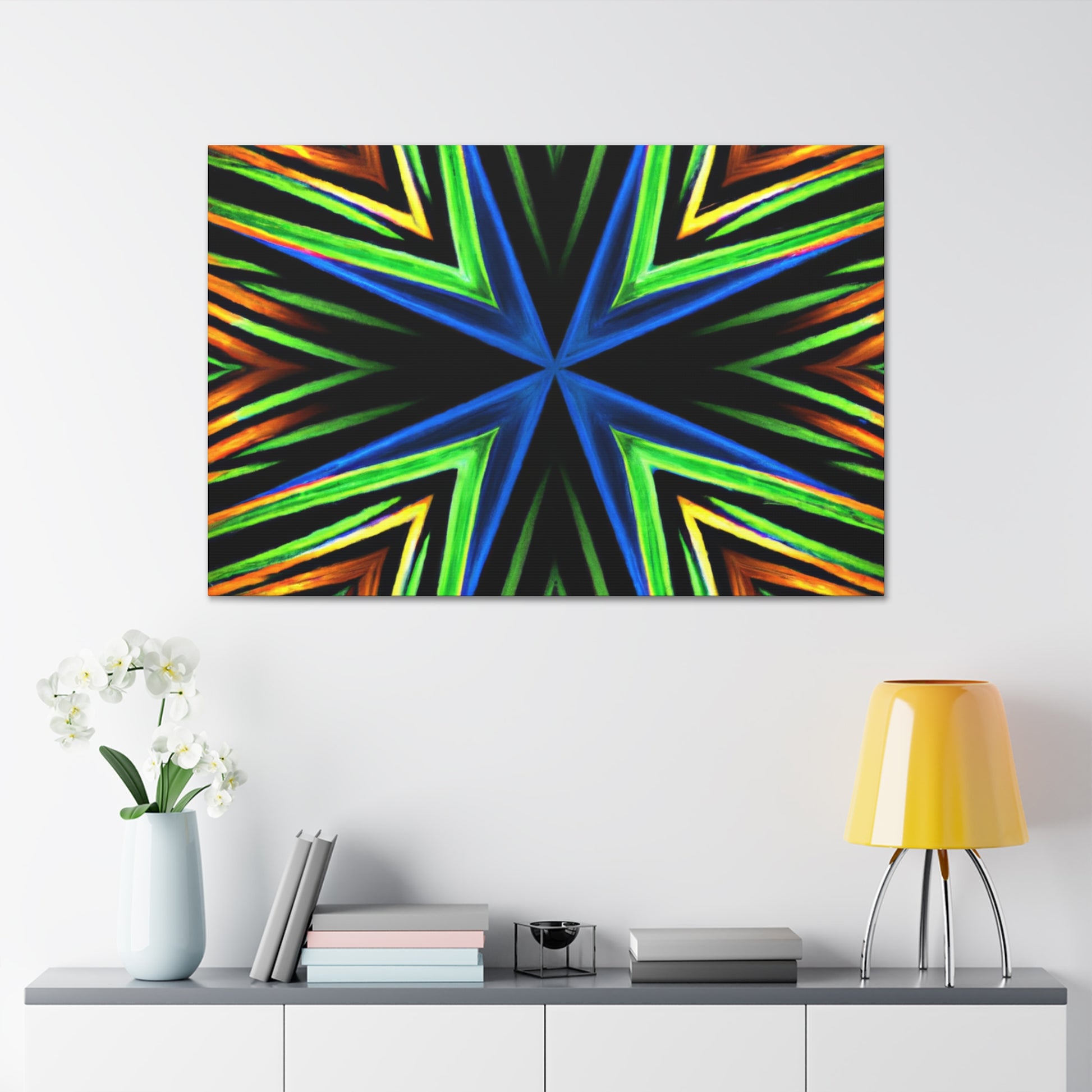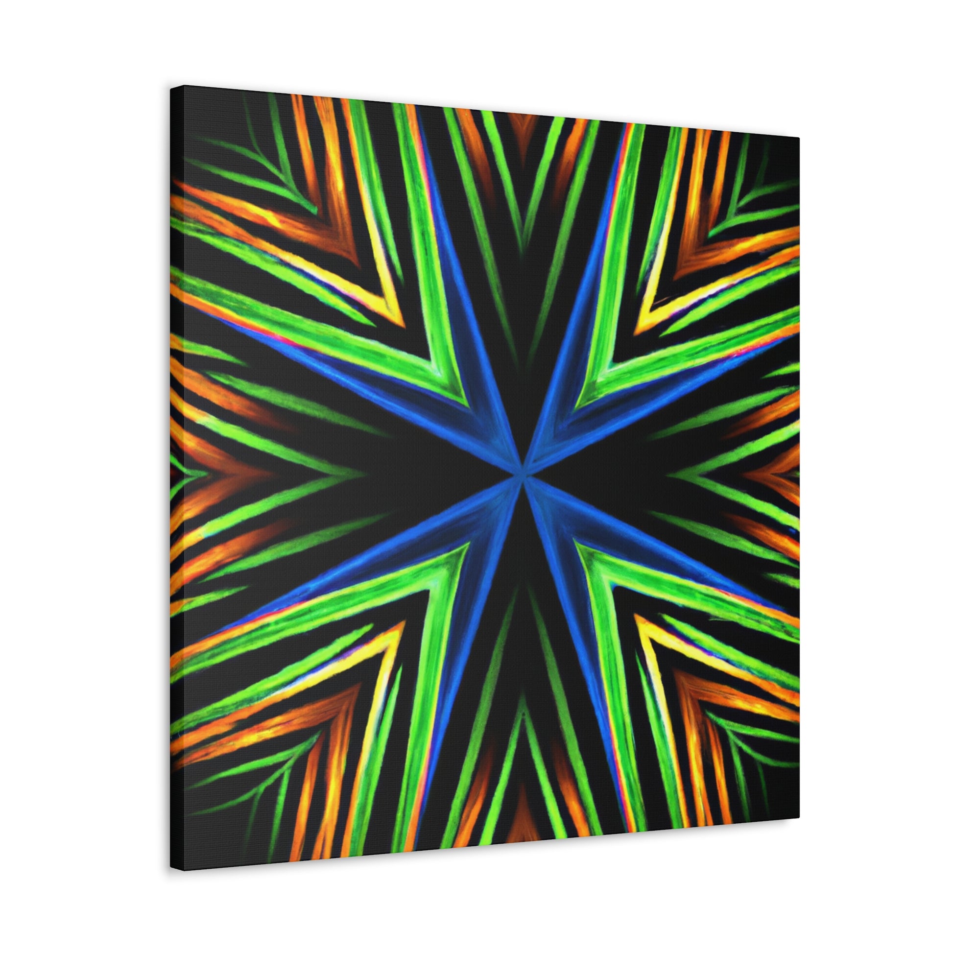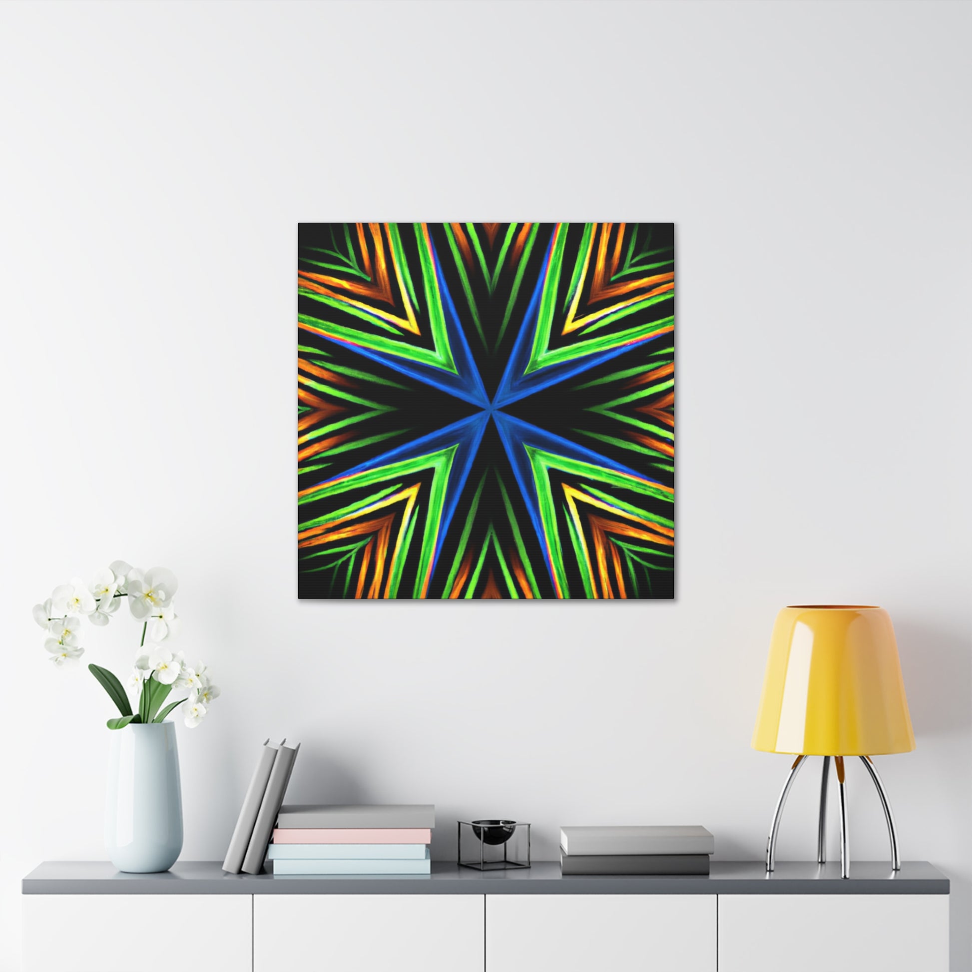 This trippy digital art is sure to turn heads! A colorful kaleidoscope of geometric palm leaves, 3D lines, and fractal imagery, all in stunningly vibrant hues, makes for a mesmerizing canvas. Unfurling with energy, this piece is an eye-catching addition to any space. #abstractart #abstractartist #interiordesign #wallart #canvasart #texture #3Dlines #fractal #palmleaves #vibrantcolor #kaleidoscope