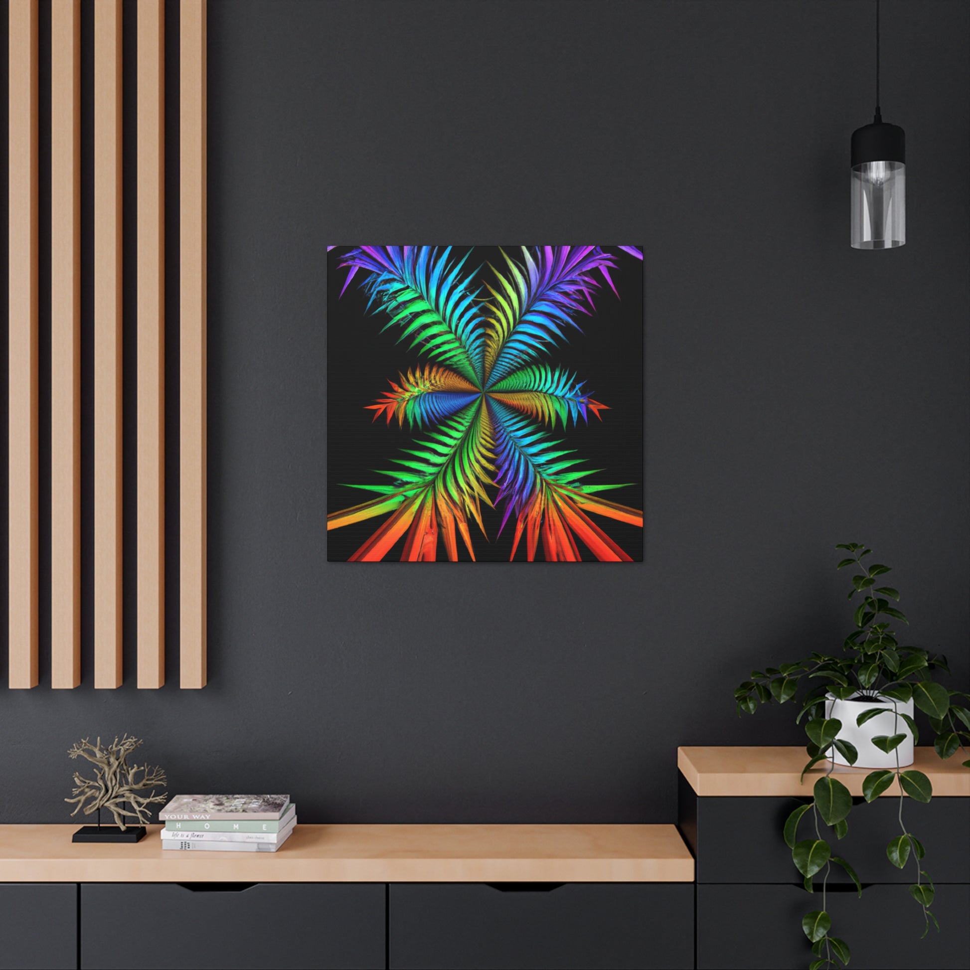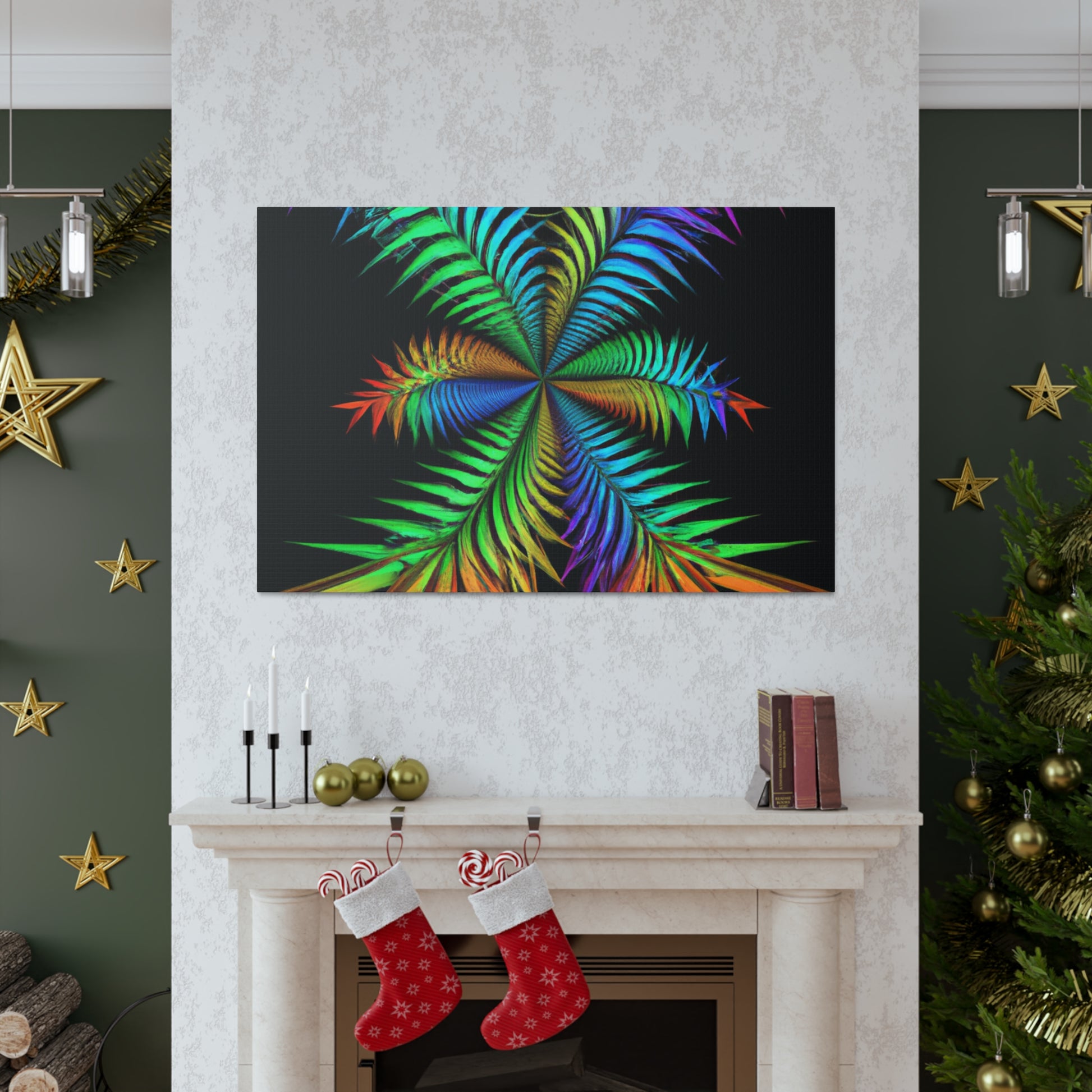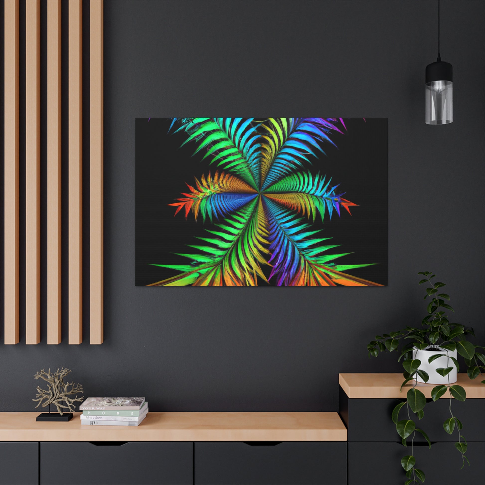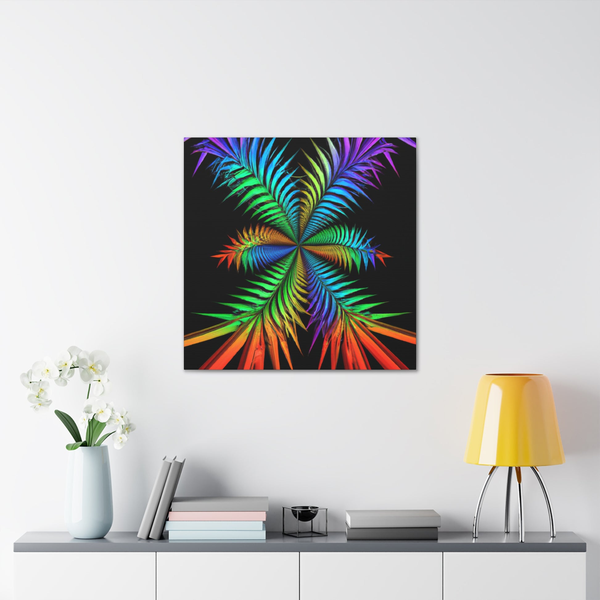 This canvas of trippy geometric palm leaves, kaleidoscope, abstract, digital art, vibrant colors, 3D lines and fractal will bring a dynamic touch to your wall. It brings together the unique features of each element to create an eye-catching, unique and mesmerizing piece perfect for your living space! #abstractart #kaleidoscopeart #trippyart #3dart #fractalart #colorfulart #palmleavesart #digitalart #vibrantdecor #wallart #contemporaryart