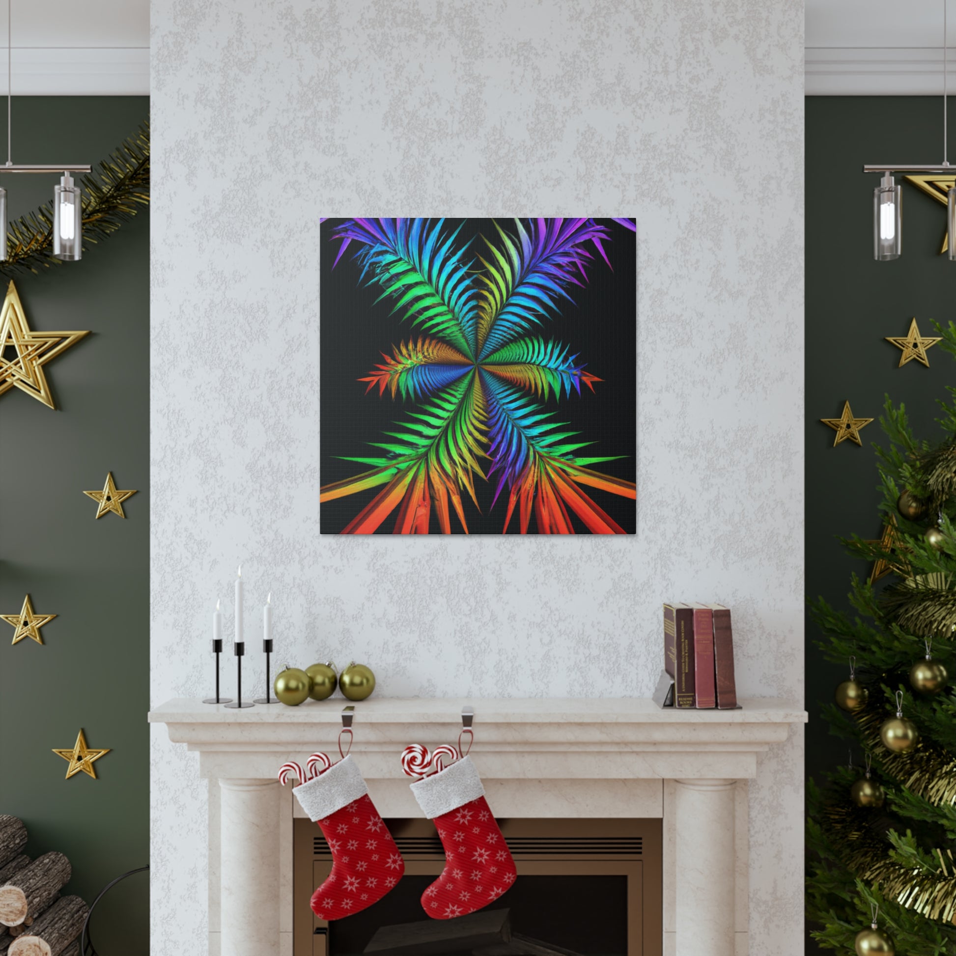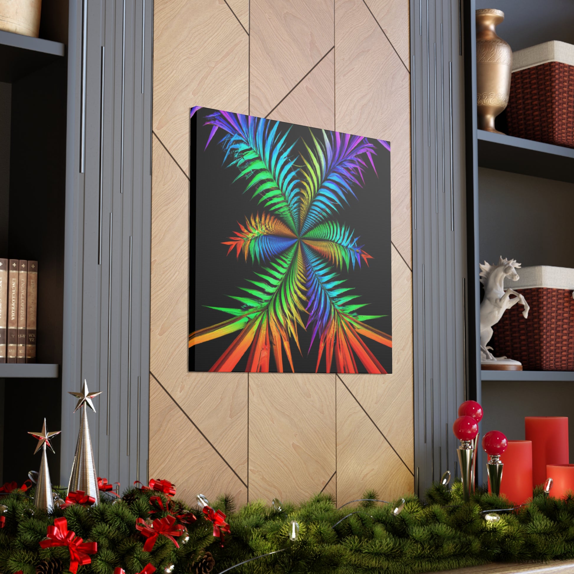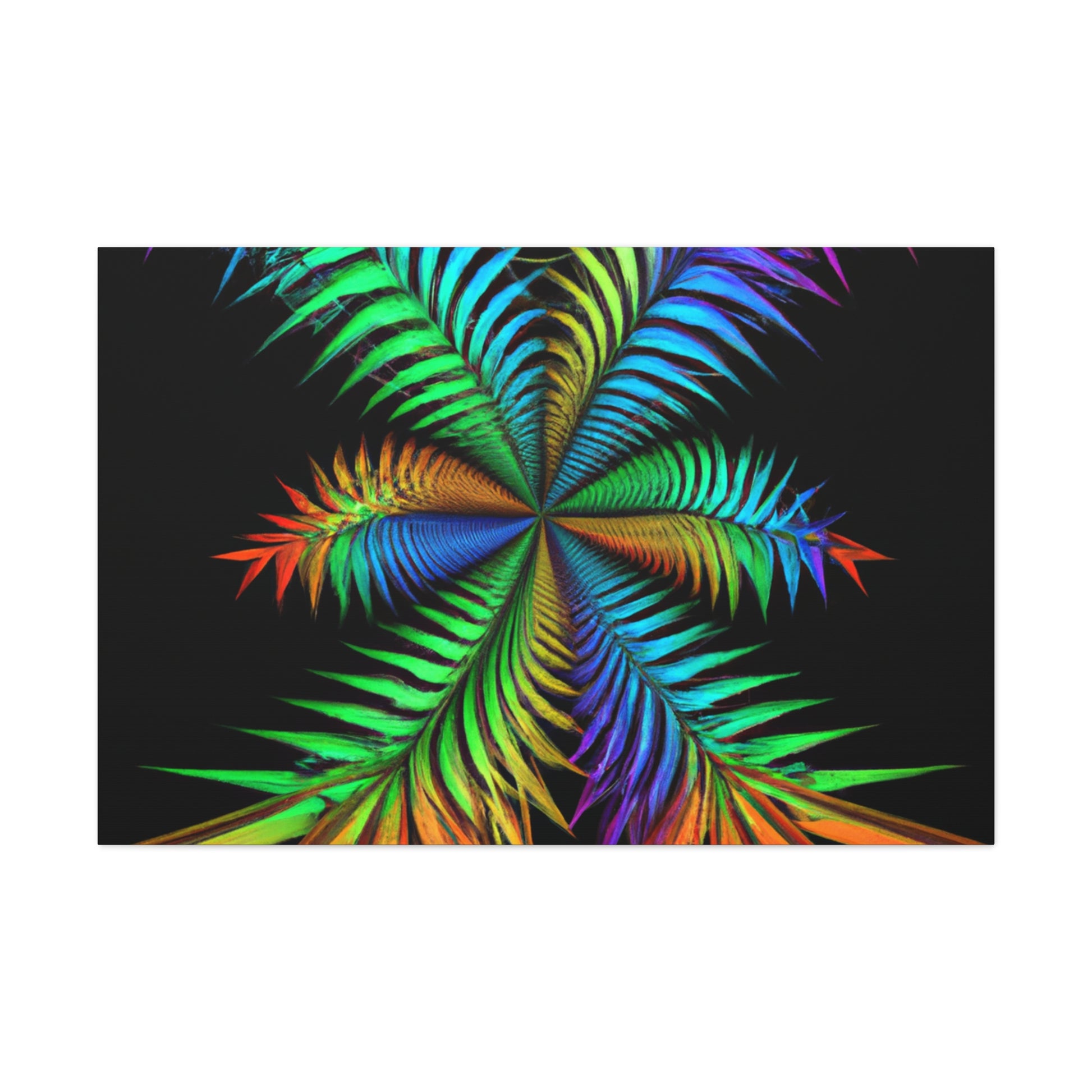 This canvas of trippy geometric palm leaves, kaleidoscope, abstract, digital art, vibrant colors, 3D lines and fractal will bring a dynamic touch to your wall. It brings together the unique features of each element to create an eye-catching, unique and mesmerizing piece perfect for your living space! #abstractart #kaleidoscopeart #trippyart #3dart #fractalart #colorfulart #palmleavesart #digitalart #vibrantdecor #wallart #contemporaryart
