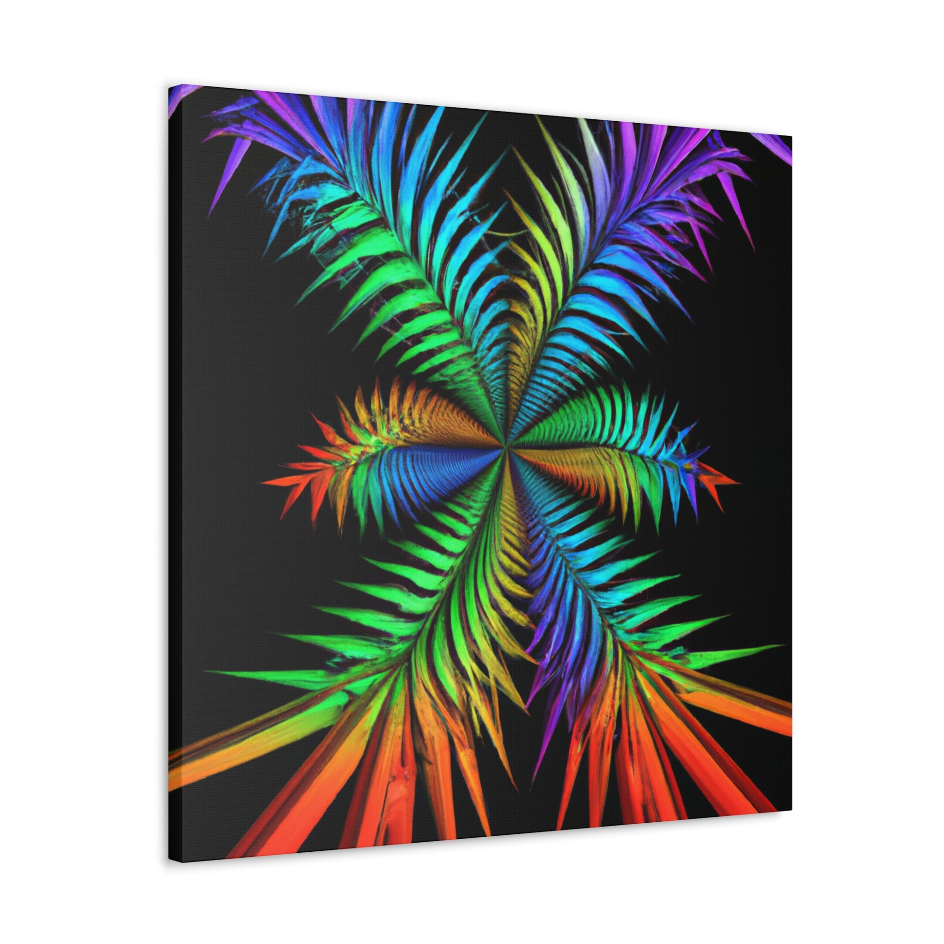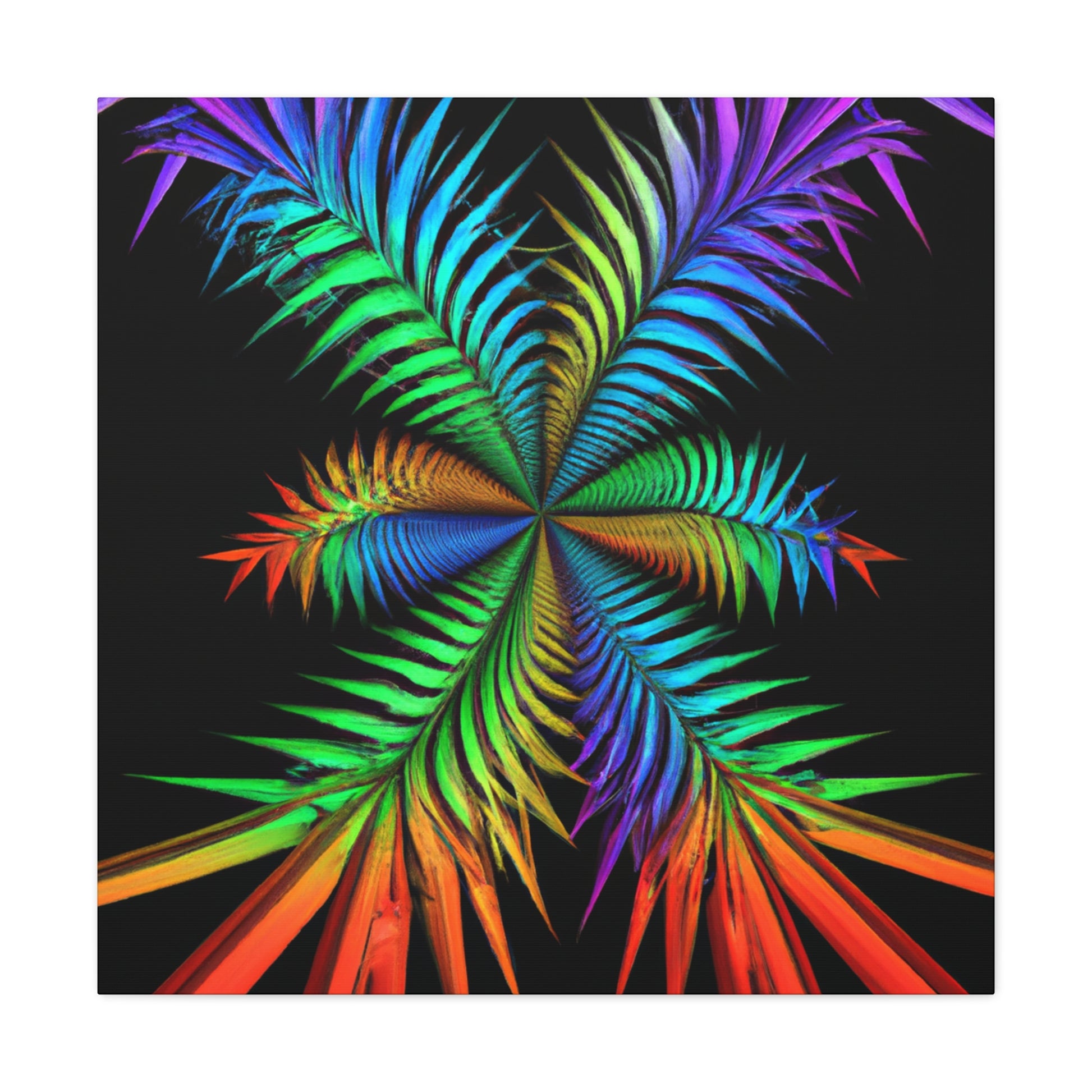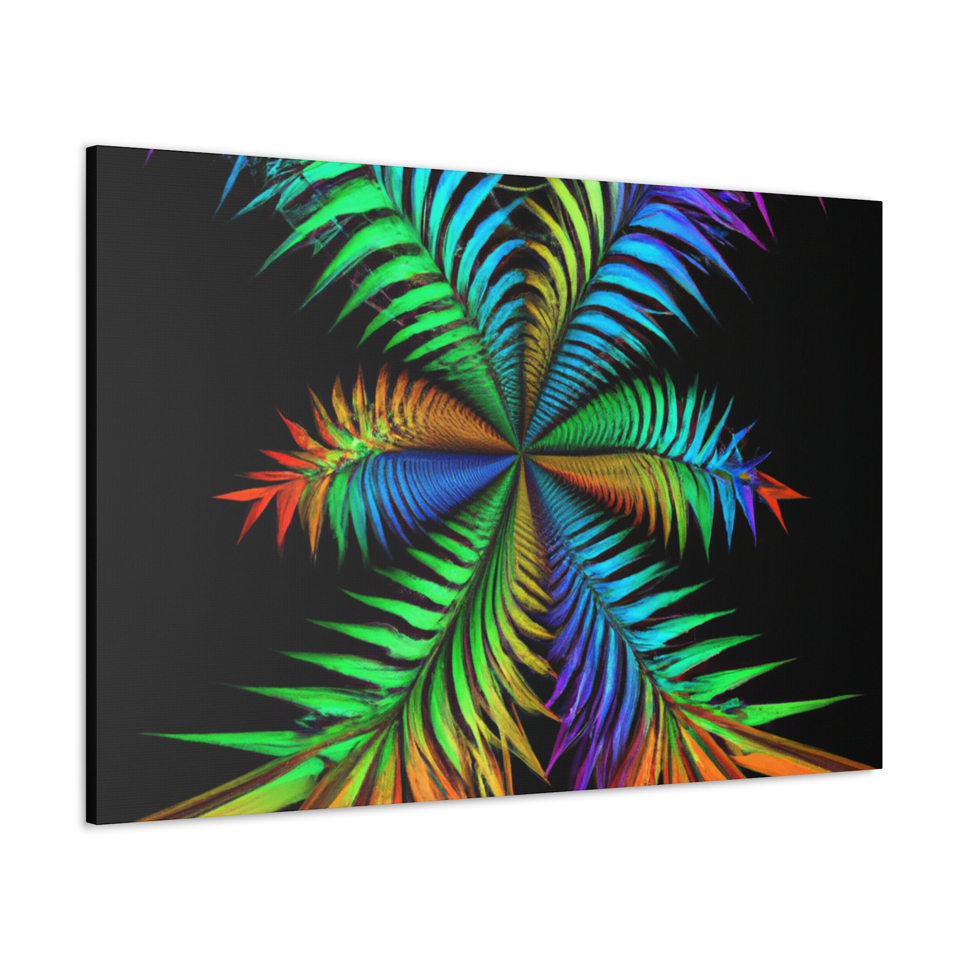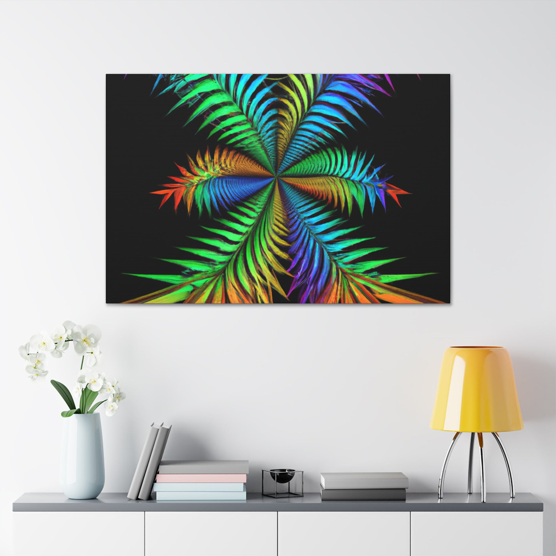 This canvas of trippy geometric palm leaves, kaleidoscope, abstract, digital art, vibrant colors, 3D lines and fractal will bring a dynamic touch to your wall. It brings together the unique features of each element to create an eye-catching, unique and mesmerizing piece perfect for your living space! #abstractart #kaleidoscopeart #trippyart #3dart #fractalart #colorfulart #palmleavesart #digitalart #vibrantdecor #wallart #contemporaryart