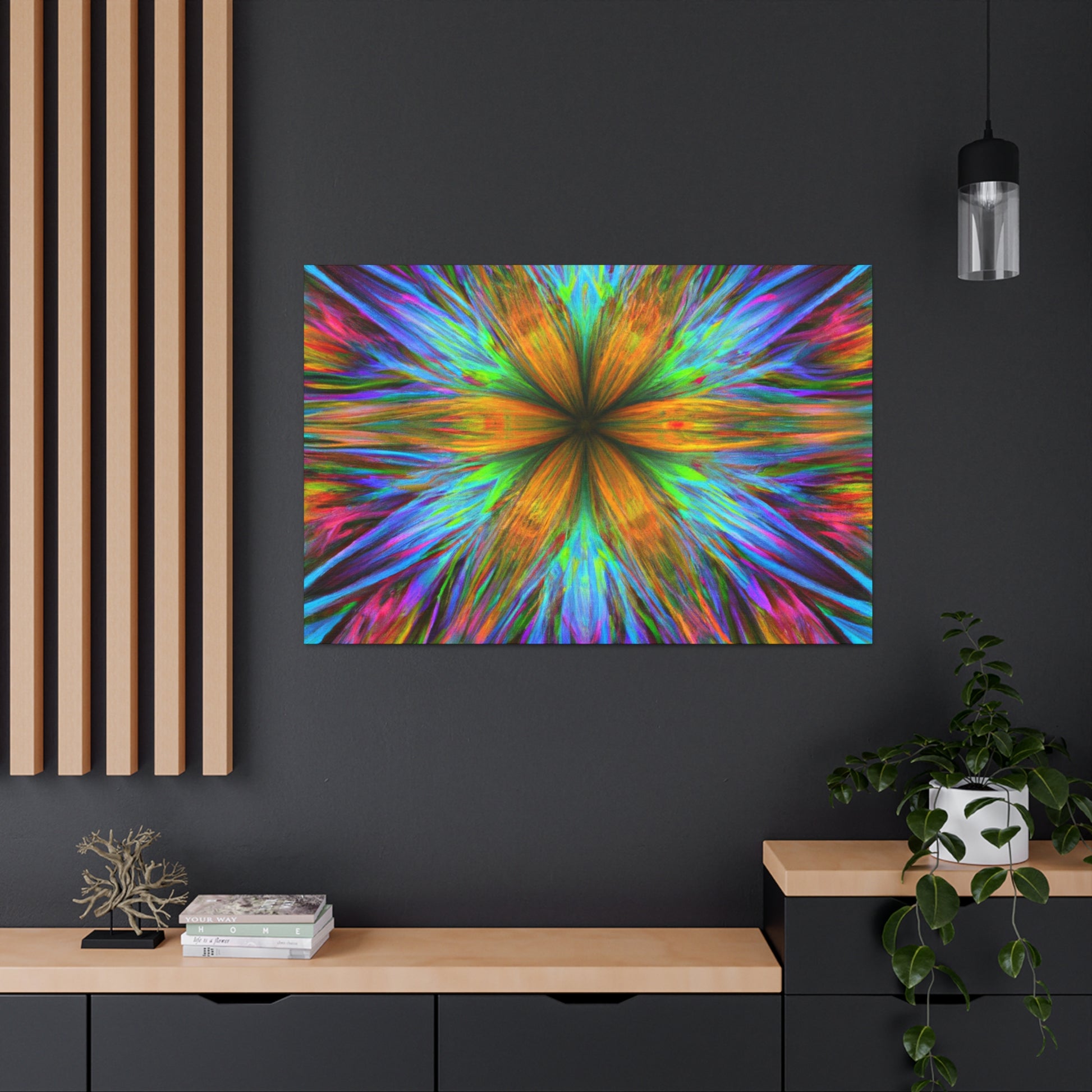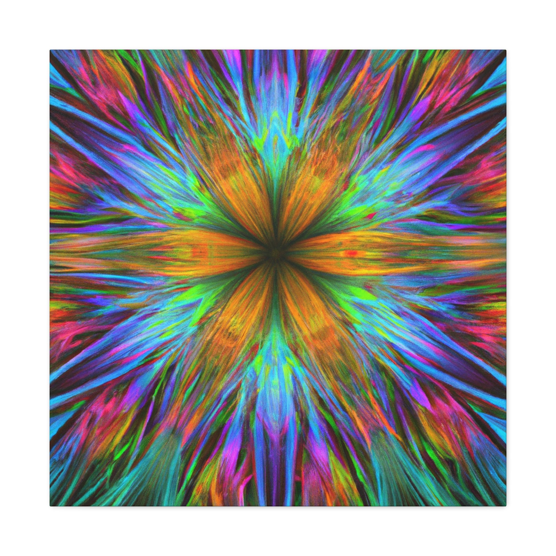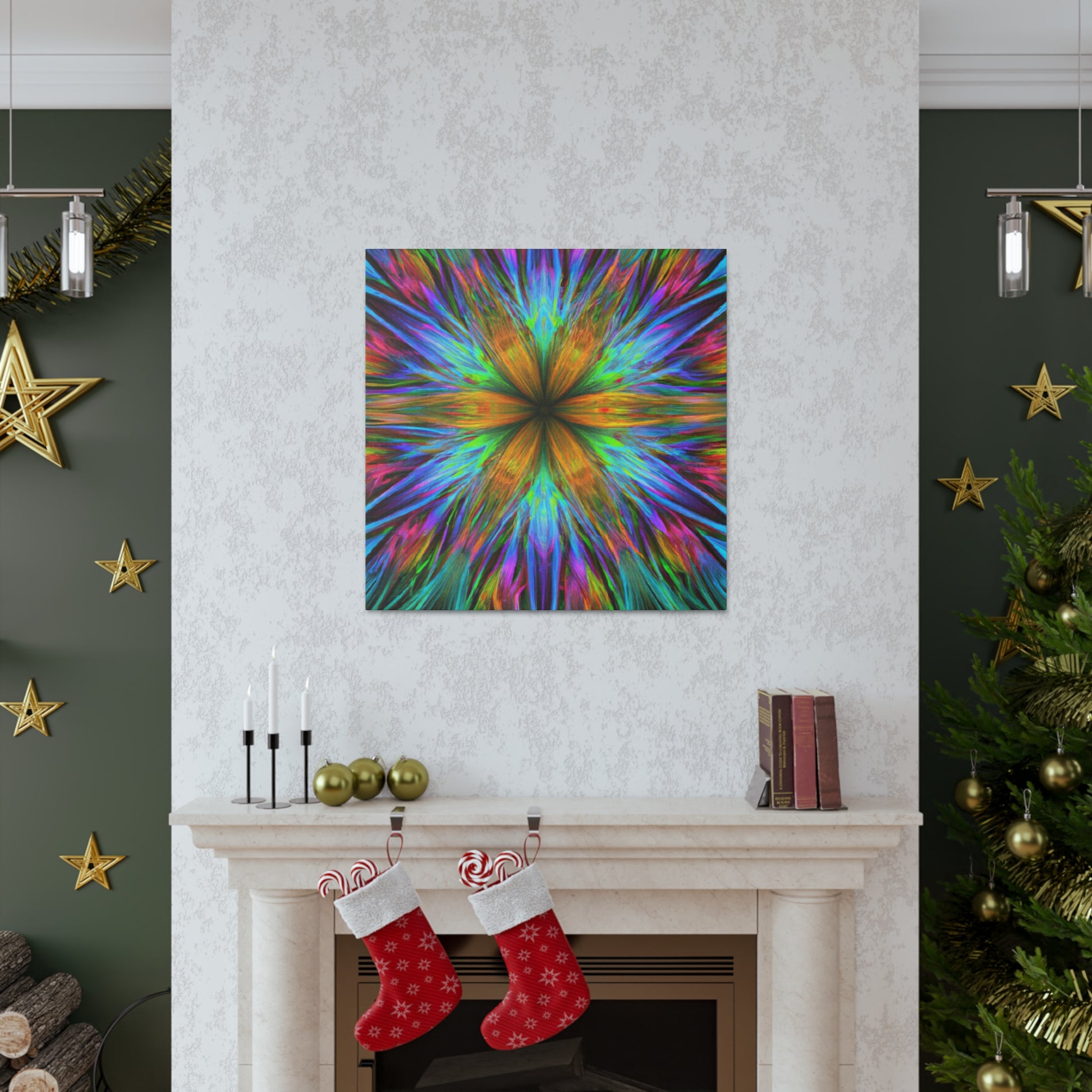 This ethereal canvas of trippy geometrics will add a unique splash of color and vitality to any home decor. Combining abstract art, 3D lines, kaleidoscope, and fractal designs, this digital art canvas is painted with vibrant colors and is sure to make any room pop. Add this dazzling and unique statement piece to your home and watch your space come alive with a modern flare. #trippy #geometric #palmleaves #kaleidoscope #abstract #digitalart #vibrantcolors #3Dlines #fractal #homedecor #walldecor