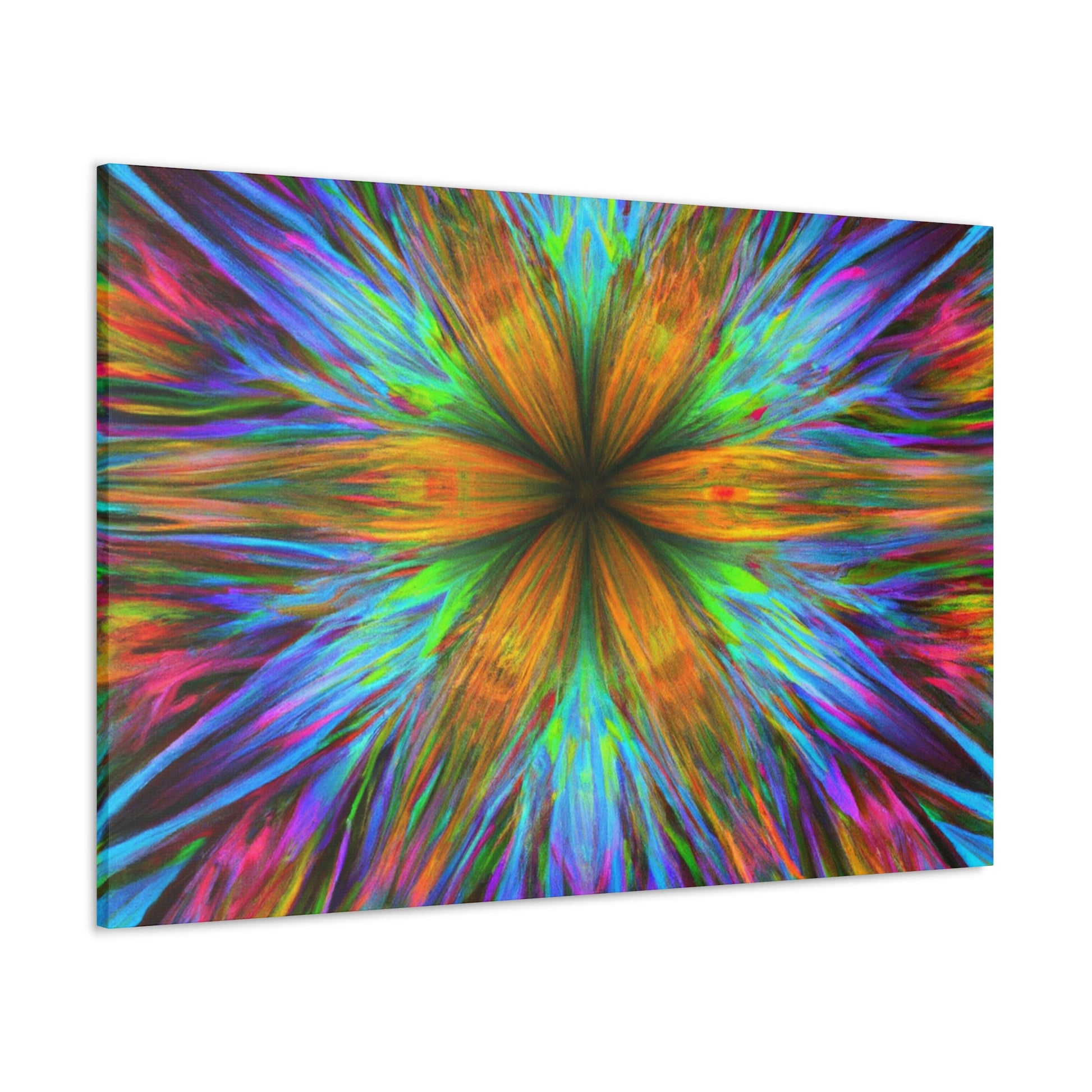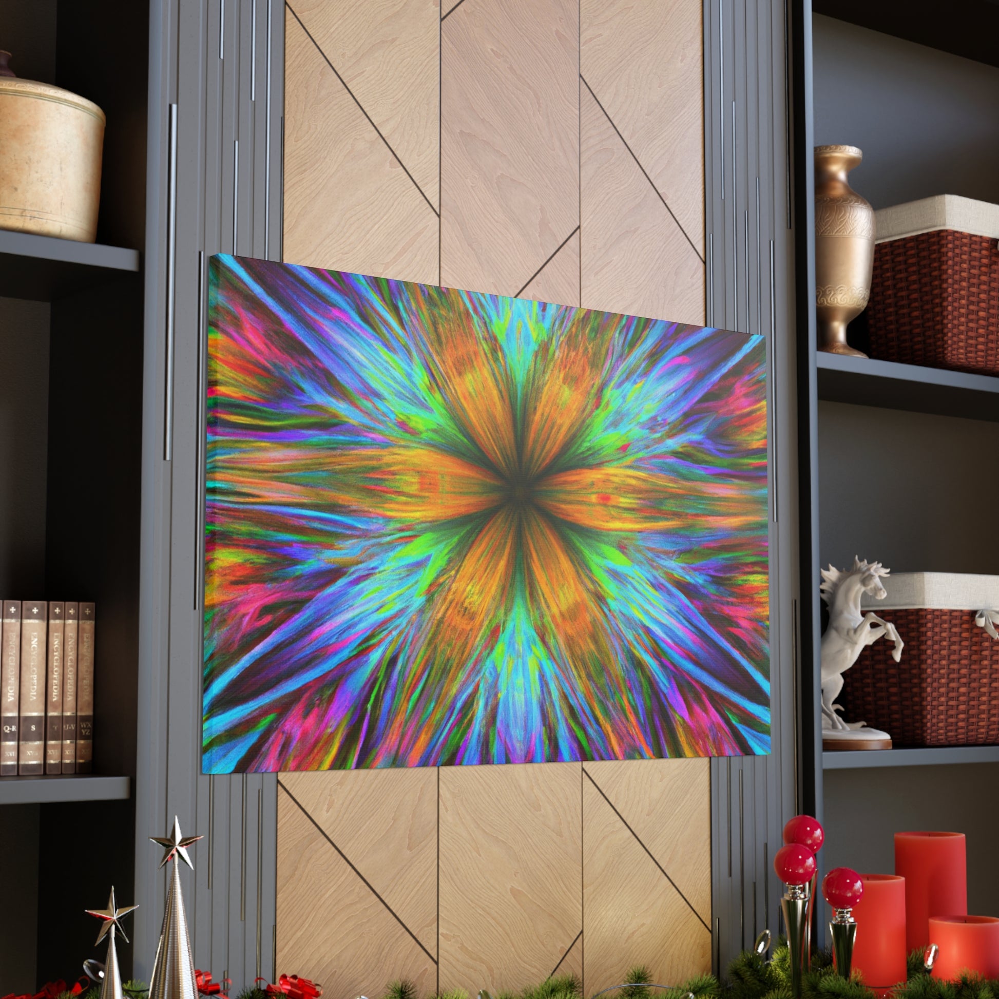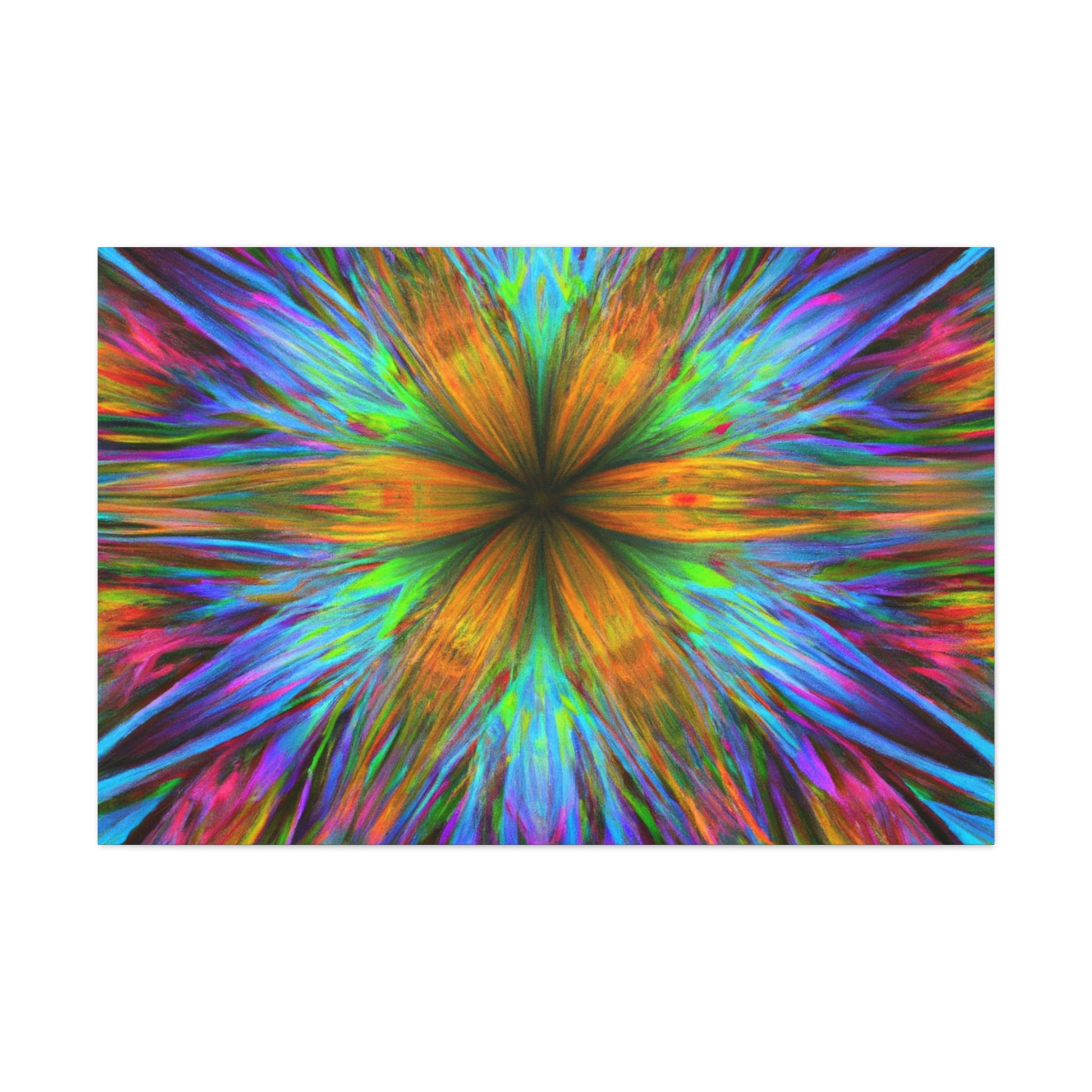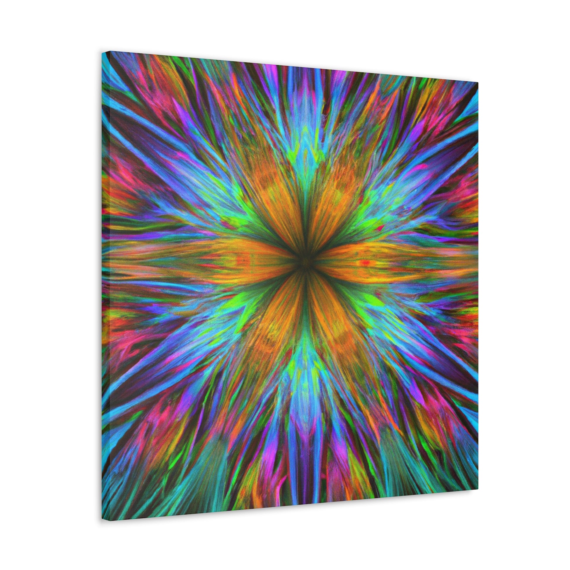 This ethereal canvas of trippy geometrics will add a unique splash of color and vitality to any home decor. Combining abstract art, 3D lines, kaleidoscope, and fractal designs, this digital art canvas is painted with vibrant colors and is sure to make any room pop. Add this dazzling and unique statement piece to your home and watch your space come alive with a modern flare. #trippy #geometric #palmleaves #kaleidoscope #abstract #digitalart #vibrantcolors #3Dlines #fractal #homedecor #walldecor