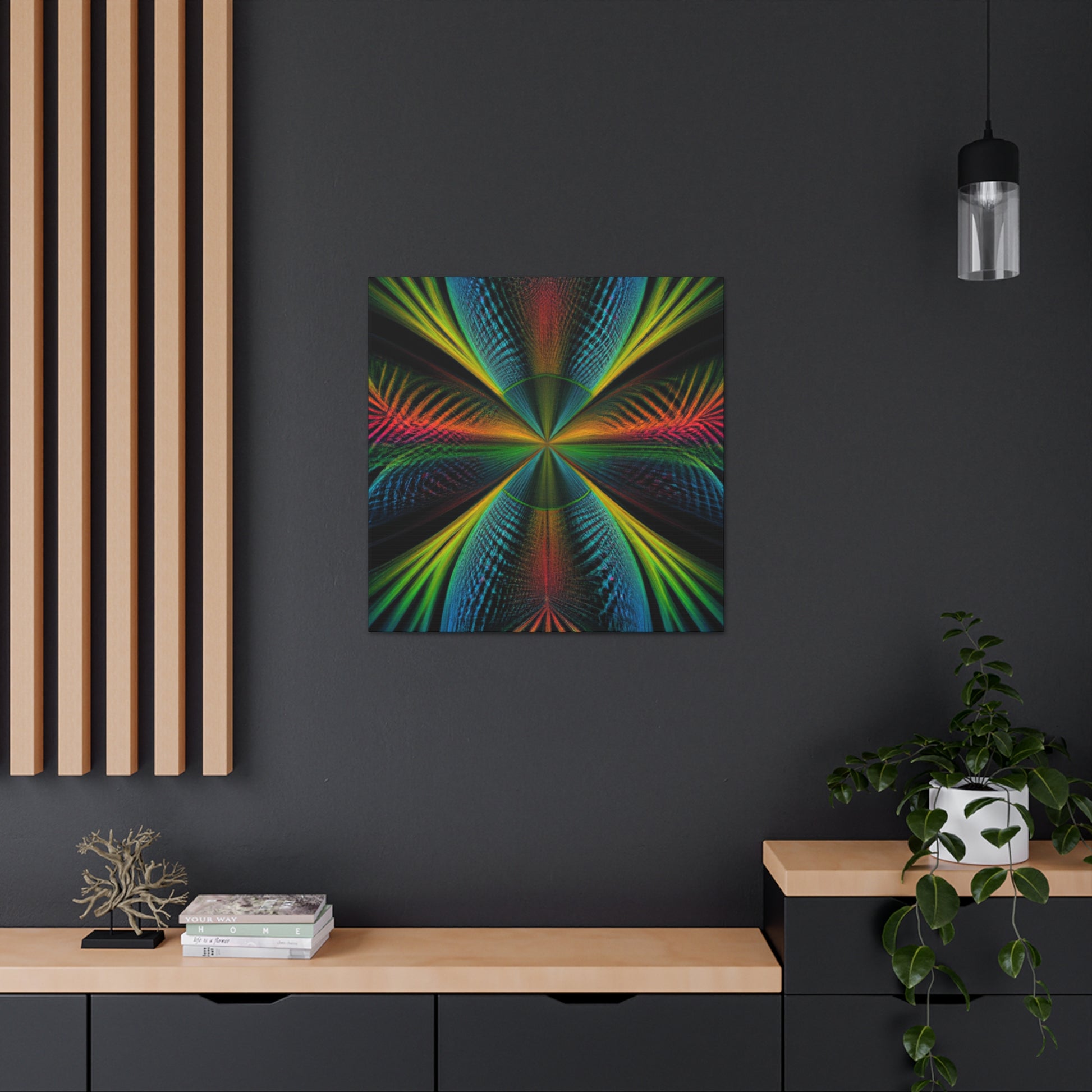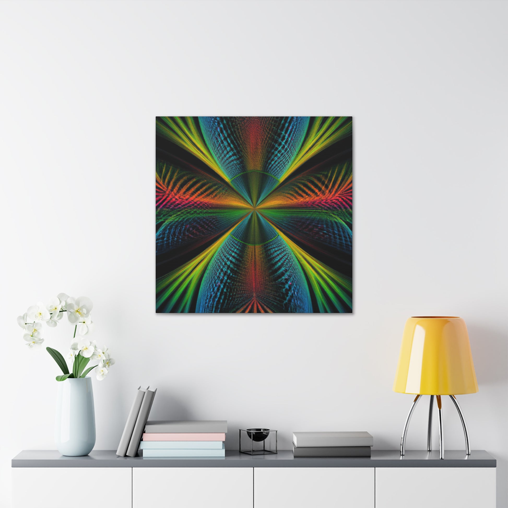 This high quality canvas displays a vivid, modern art piece with an eye-catching blend of trippy, geometric palm leaves, kaleidoscope, abstract, and digital elements. Drawing from a vibrant combination of colors, curving 3D lines, and a mesmerizing fractal, this unique abstract design will add a stylish flair to your walls. Its bold design and intricate detail will bring your interior to life! #vivid #modernart #palmleaves #kaleidoscope #abstract #digital #vibrantcolors #3Dlines #fractal #canvas #interiorstyle