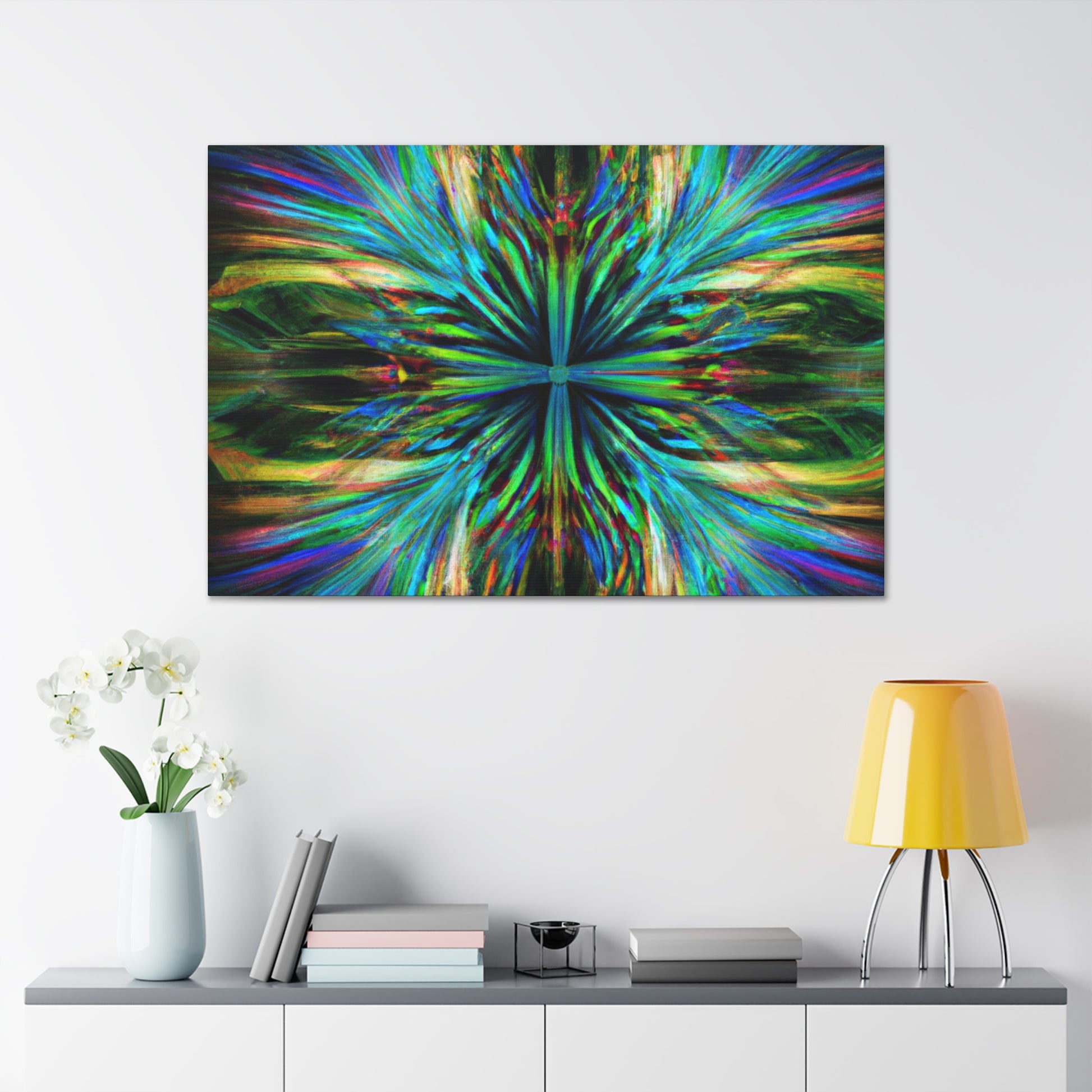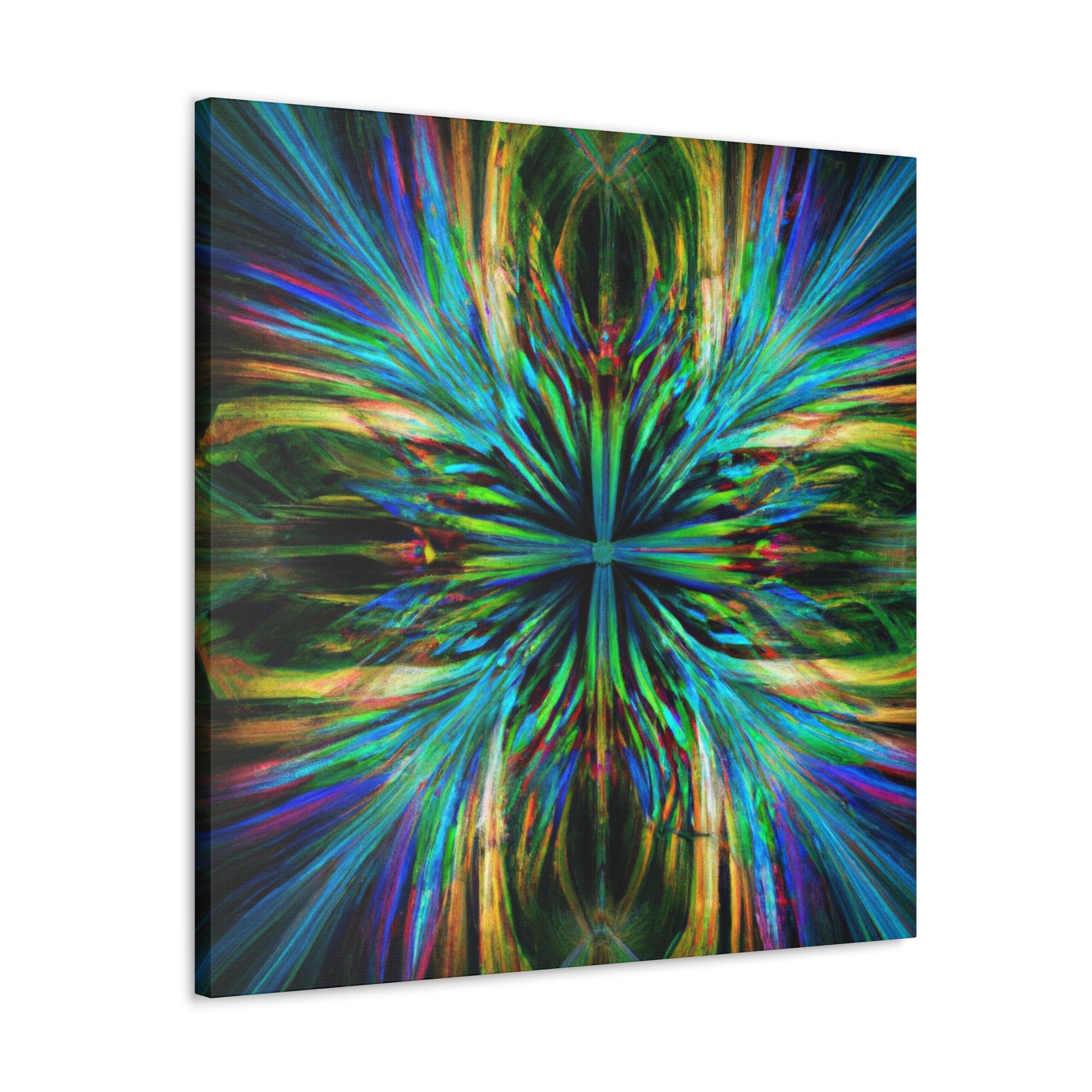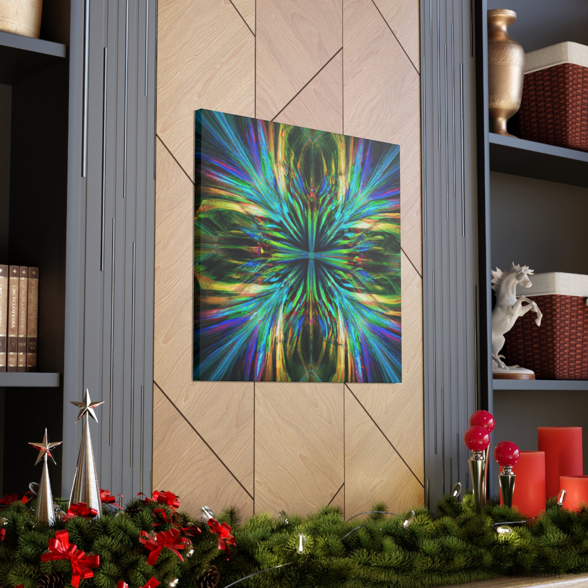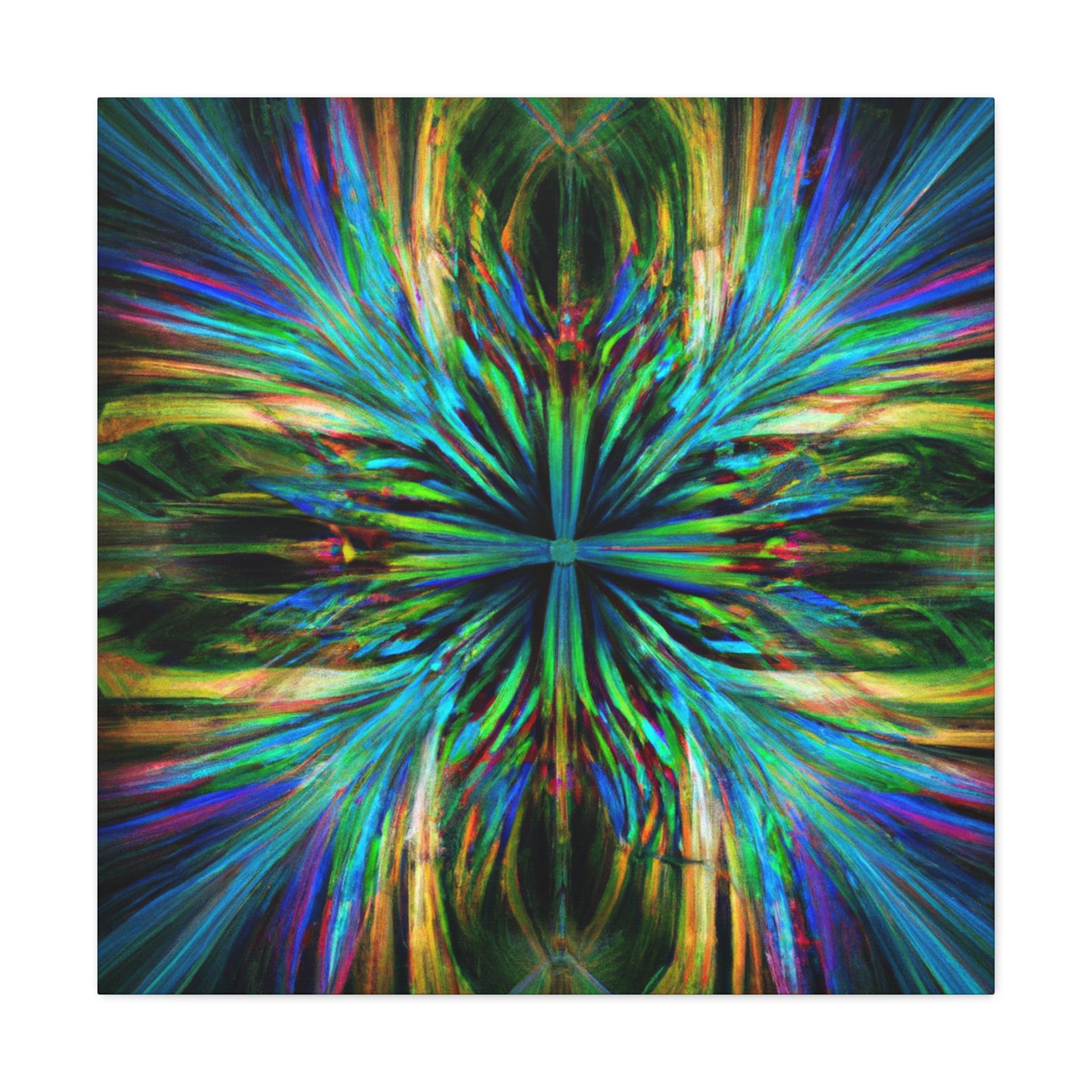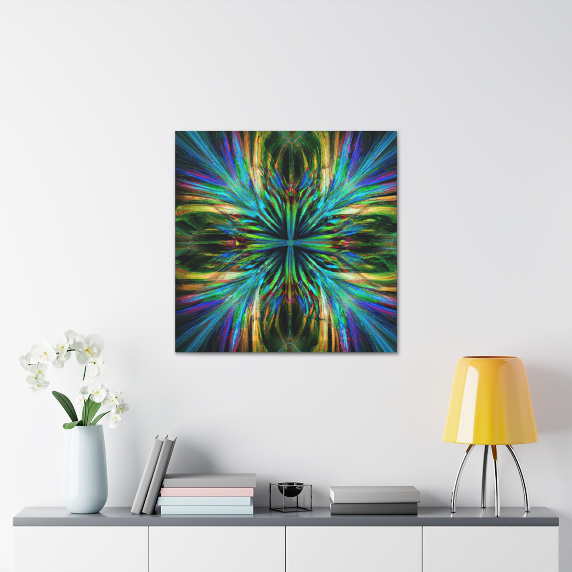 This unique mosaic of colors and shapes creates an eye-catching statement piece. Trippy geometric palm leaves, kaleidoscope, abstract, digital art, vibrant colors, 3D lines, and fractal patterned artwork fill the canvas, creating an instantly captivating design. Dynamic and ethereal, this artwork is sure to add a dynamic splash of color to any space. #art #fractal #trippyart #kaleidoscope #colorfulart #palmleaves #digitalart #vibrantcolors #abstract #3dlines #wallart
