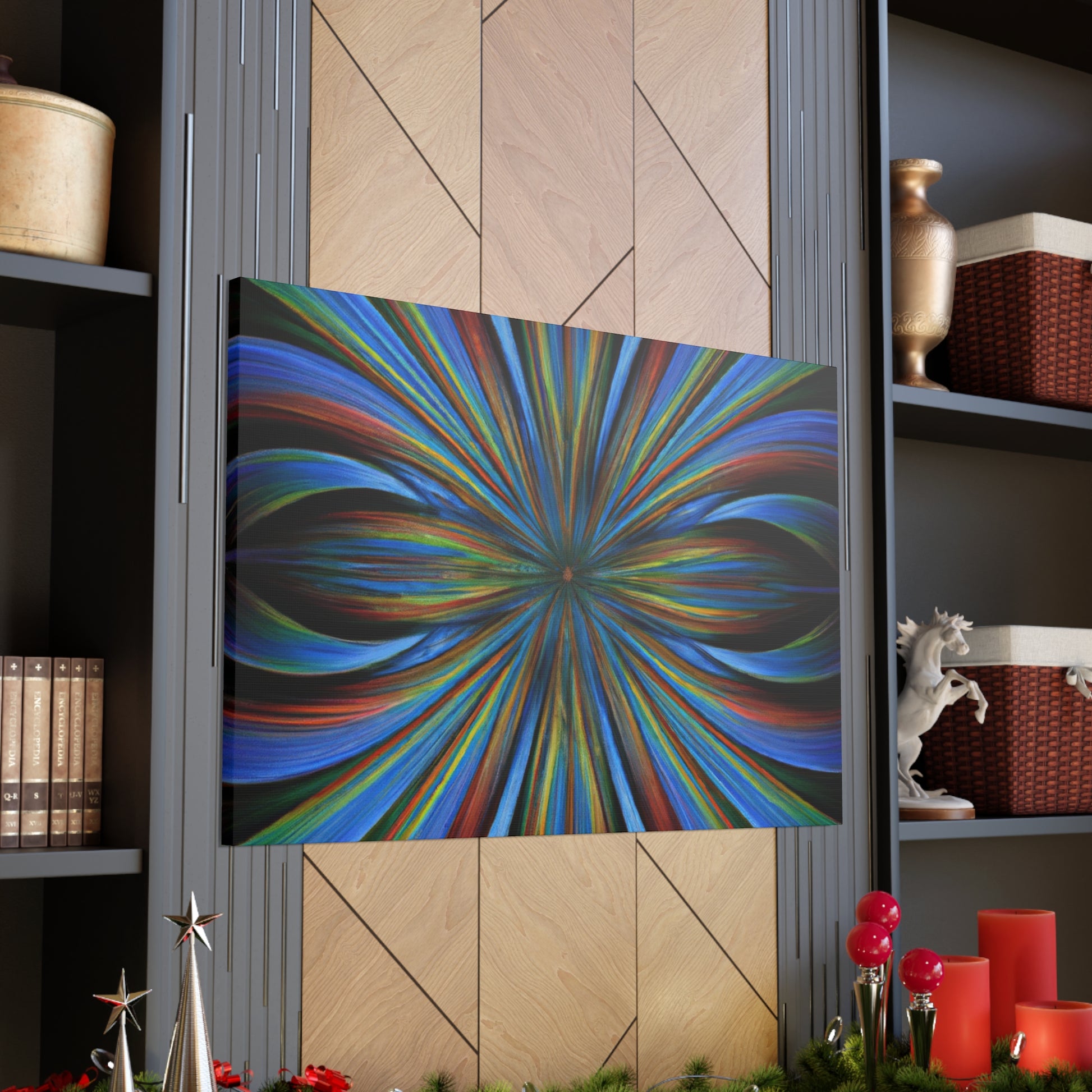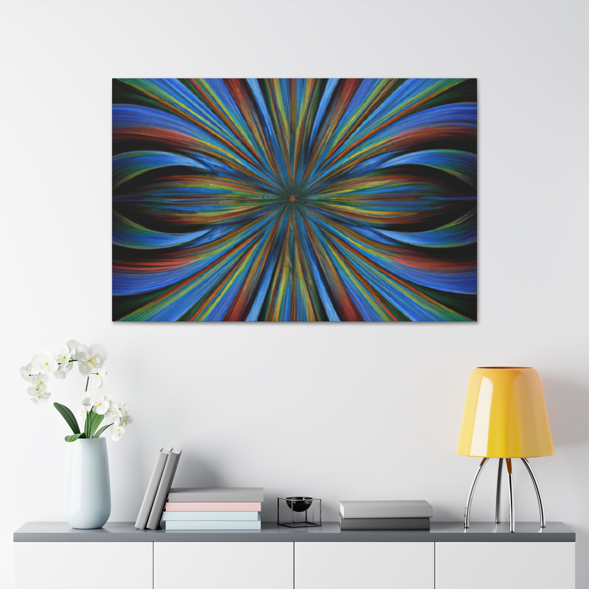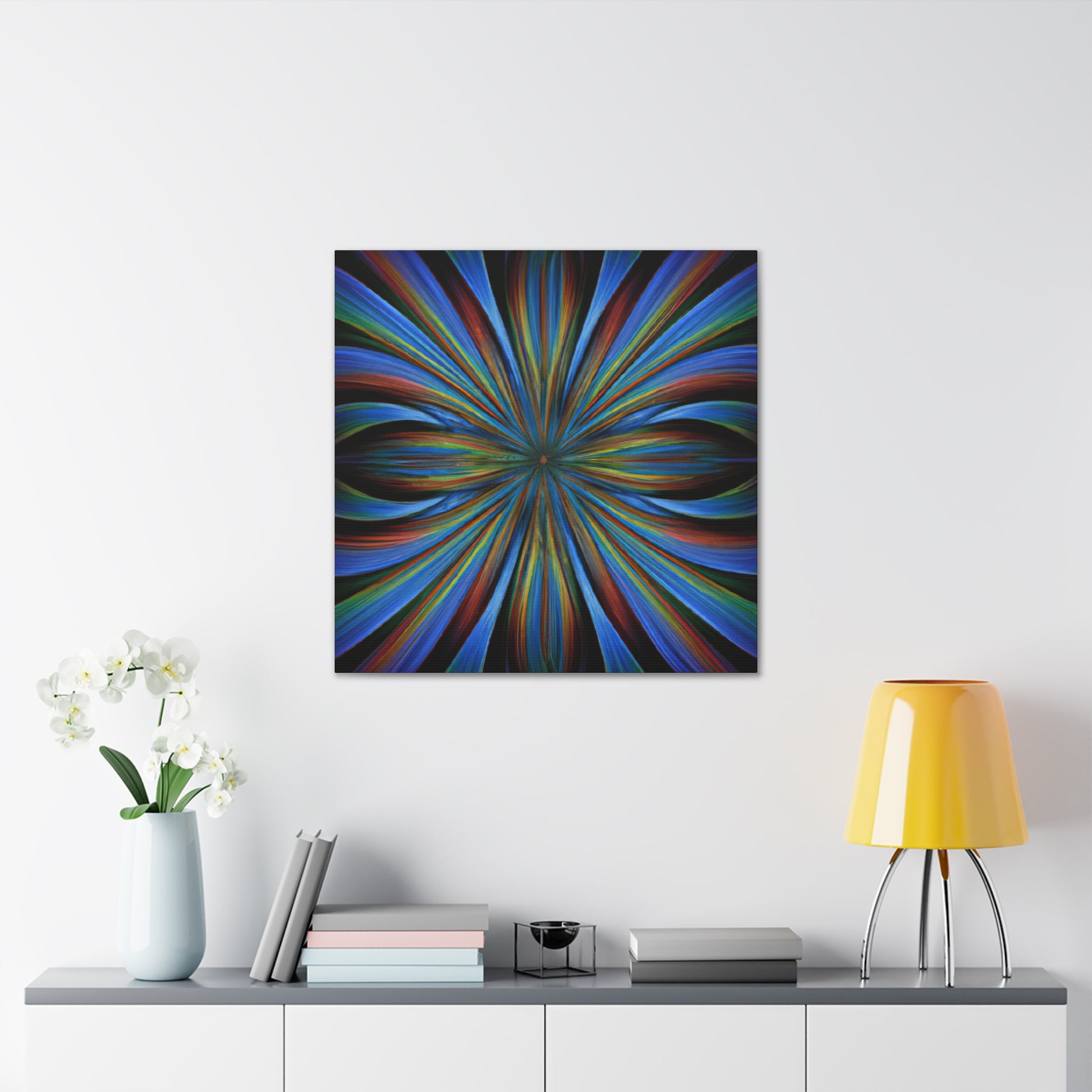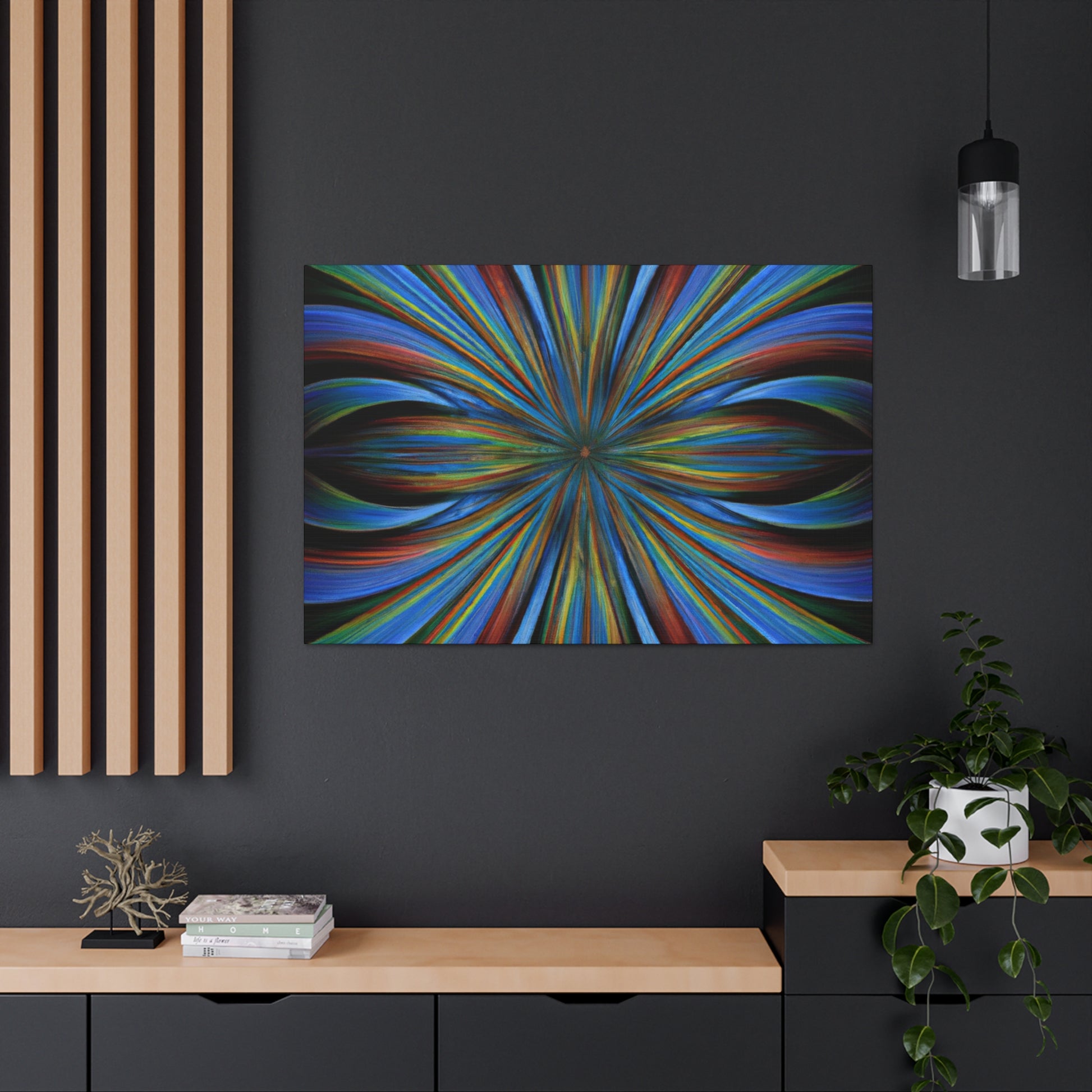 This canvas of Trippy Geometric Palm leaves, Kaleidoscope, Abstract, Digital Art, and Vibrant Colors is sure to brighten up any room! Its bold 3D lines, Fractal patterns and unique blend of bright colors make for an eye-catching statement piece. Hang it as an accent to provide an extra spark of life in any setting. #TrippyArt #GeometricStyle #AbstractArt #PalmLeaves #Kaleidoscope #VibrantColours #StatementPiece #3DLines #Fractal #DigitalArt #UniqueDesign