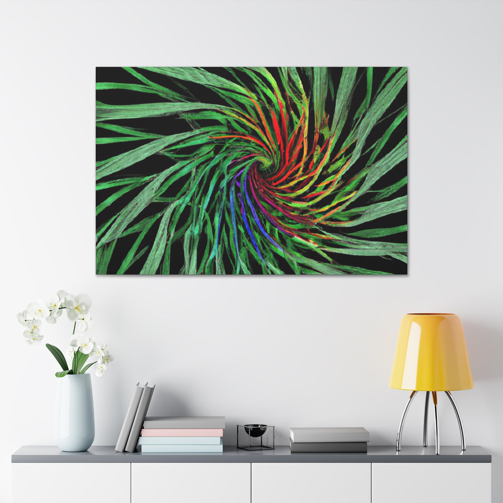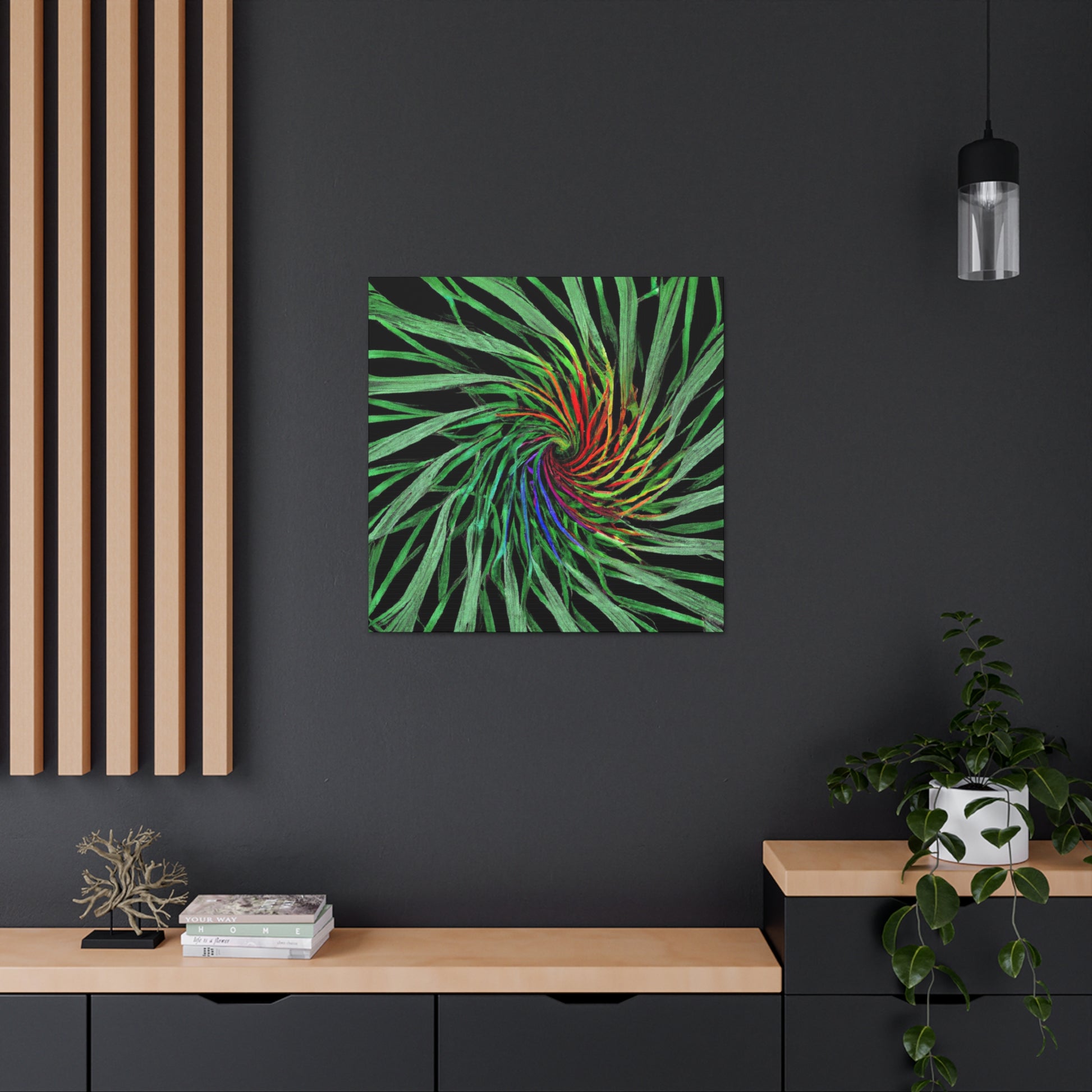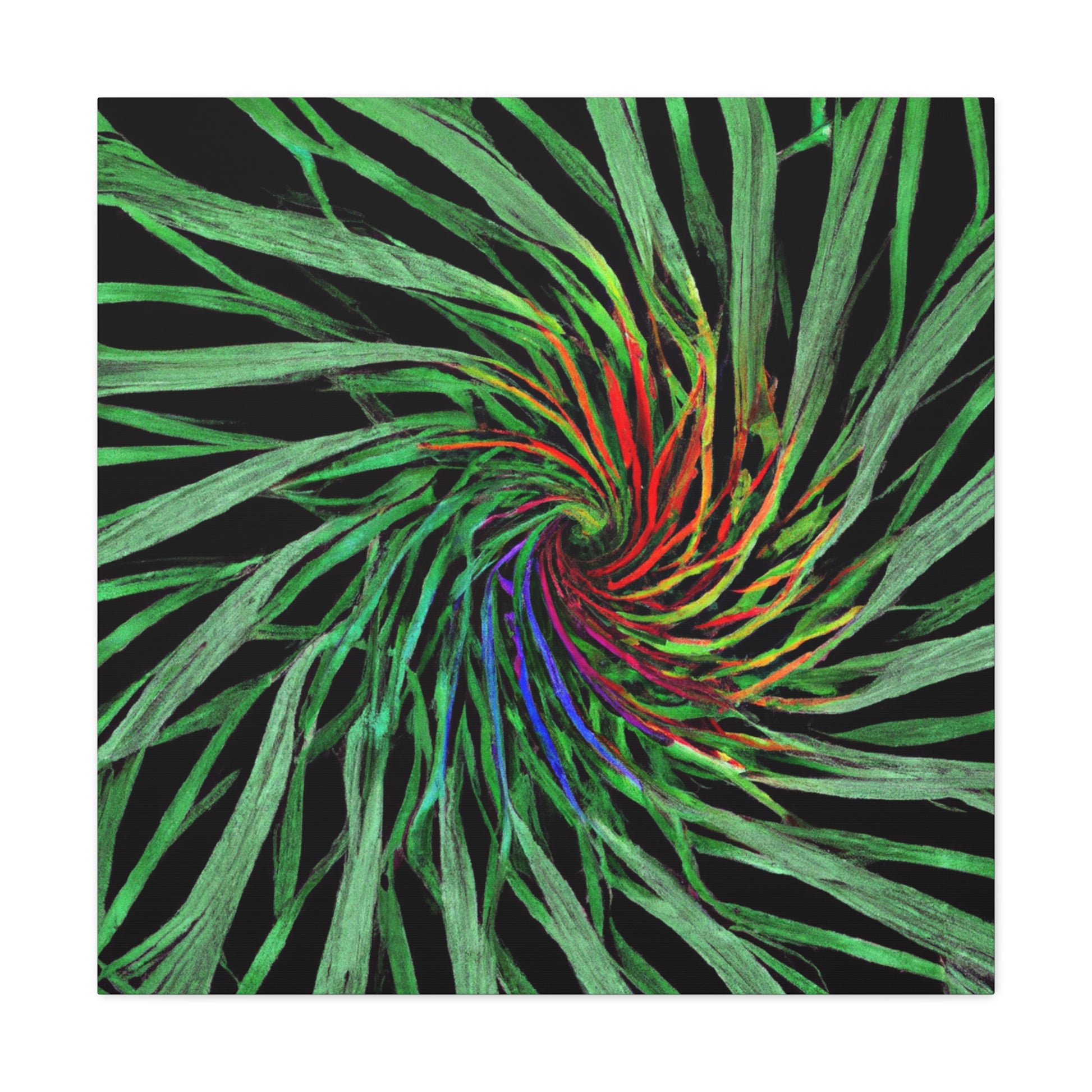 Experience a world of bold colors and abstract geometry with this vivid canvas. This digital artwork features trippy palm leaves with 3D lines, kaleidoscope, fractal and vivid colors to create a mesmerizing effect. The bold colors and 3D lines bring this abstract art to life. Hang this in your living space for a one-of-a-kind, modern look. #Geometric #AbstractArt #DigitalArt #VibrantColors #3DLines #Fractal #Kaleidoscope #Trippy #PalmLeaves #Canvas