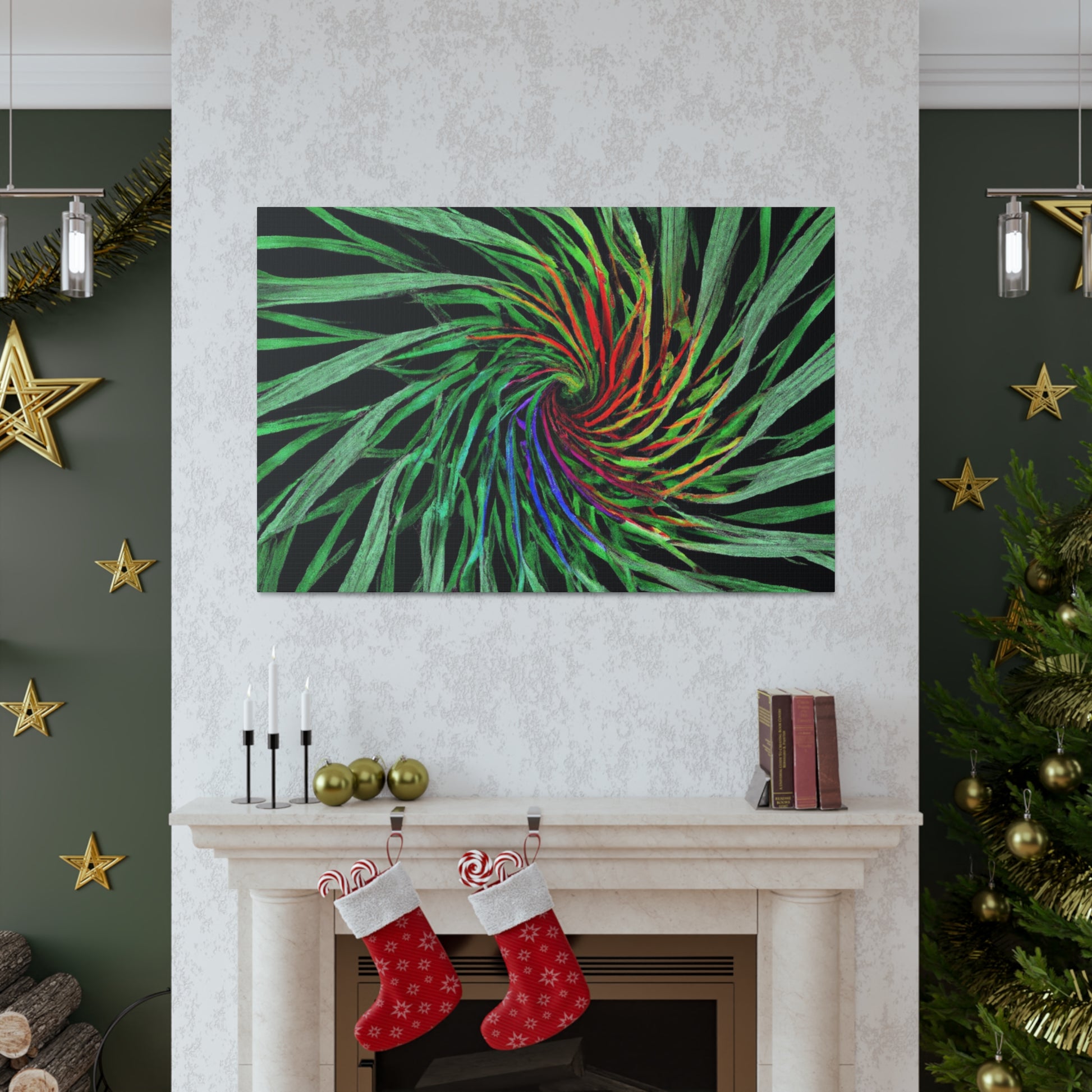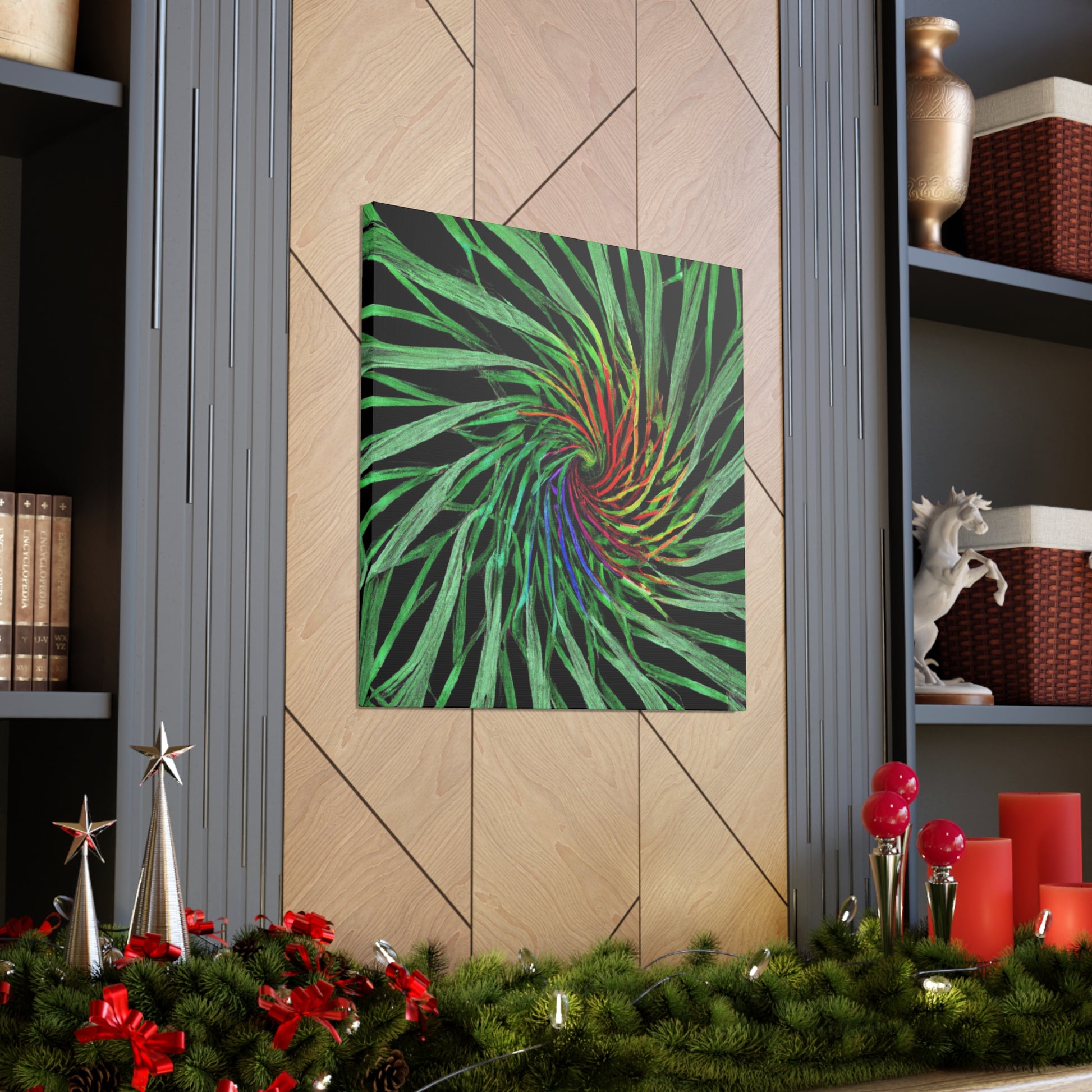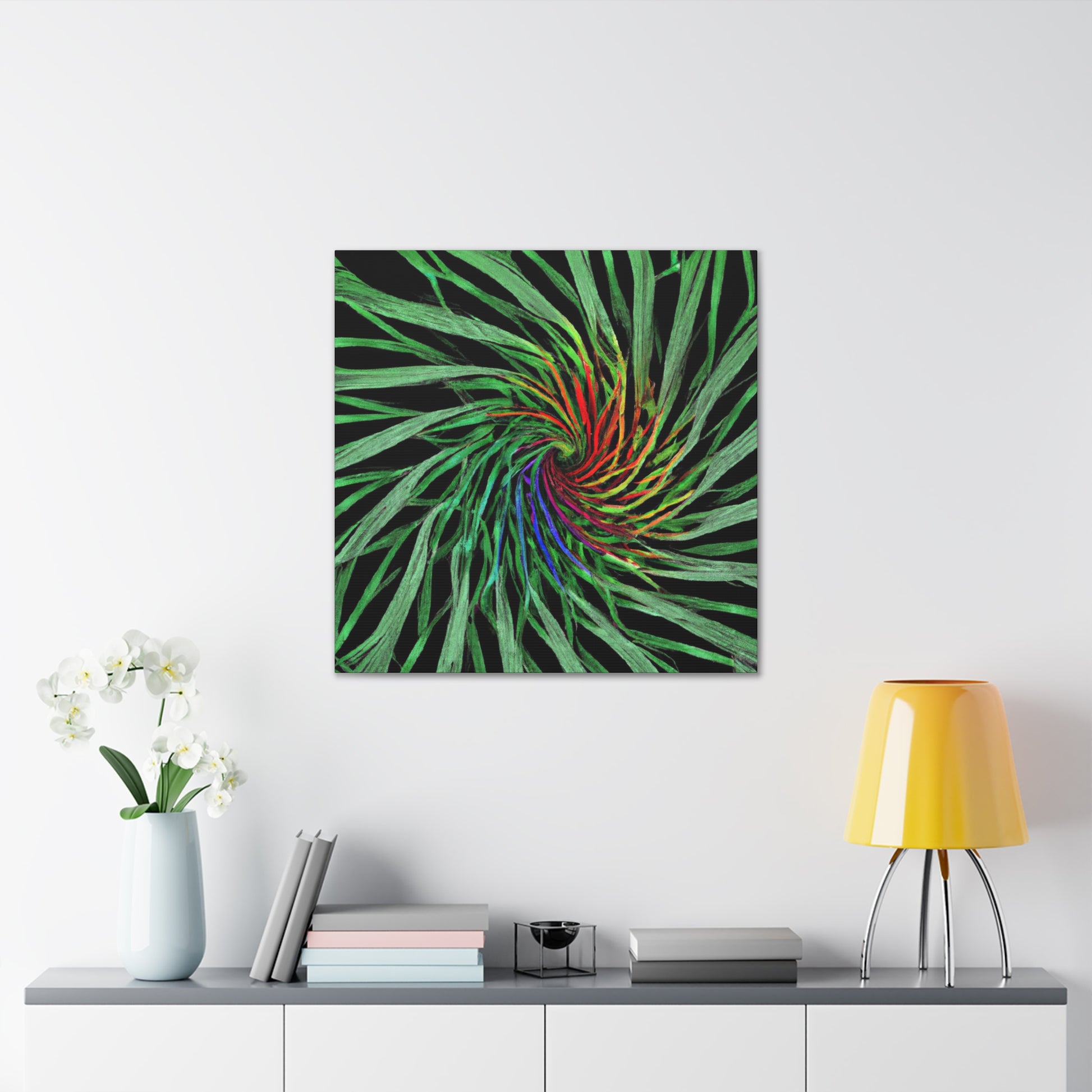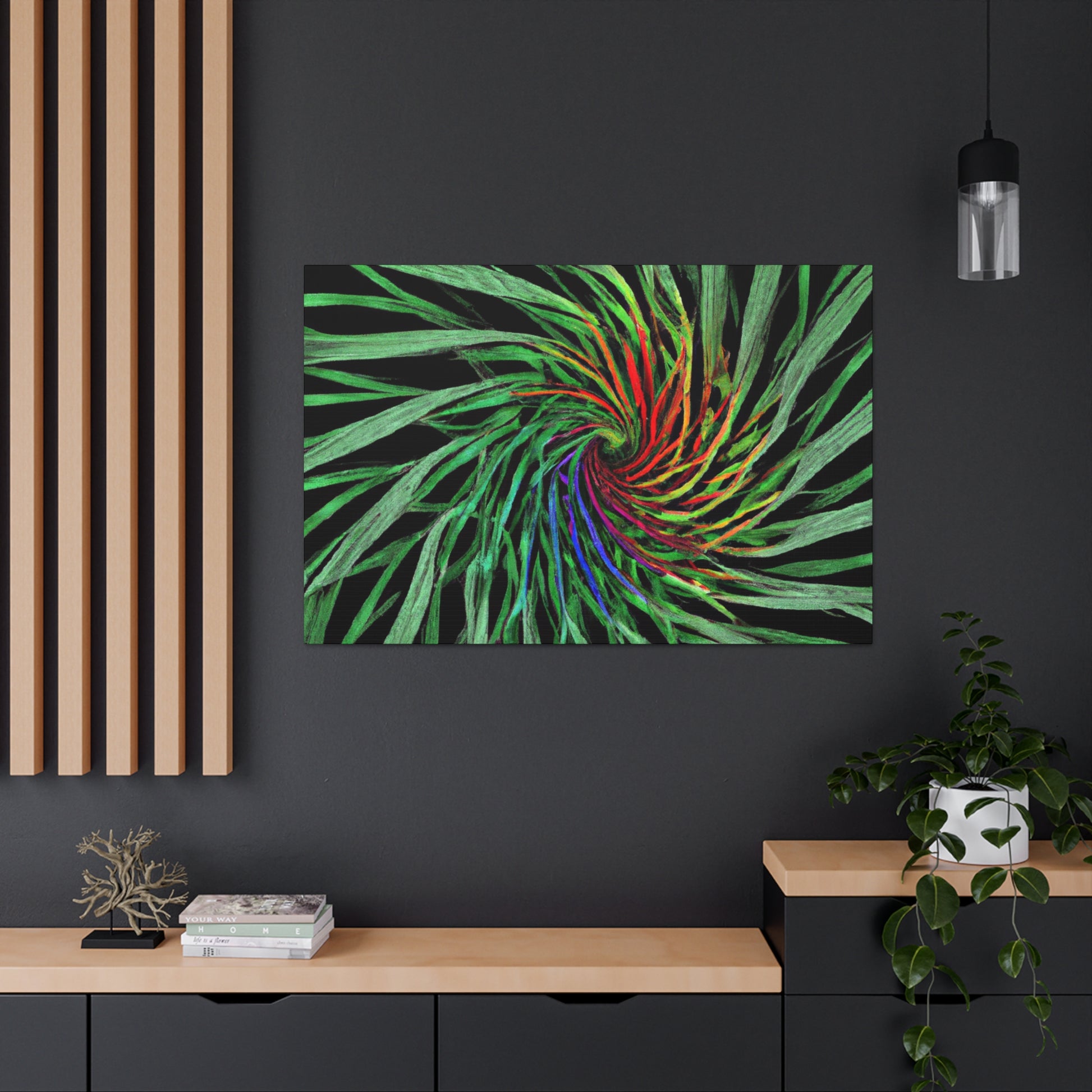 Experience a world of bold colors and abstract geometry with this vivid canvas. This digital artwork features trippy palm leaves with 3D lines, kaleidoscope, fractal and vivid colors to create a mesmerizing effect. The bold colors and 3D lines bring this abstract art to life. Hang this in your living space for a one-of-a-kind, modern look. #Geometric #AbstractArt #DigitalArt #VibrantColors #3DLines #Fractal #Kaleidoscope #Trippy #PalmLeaves #Canvas