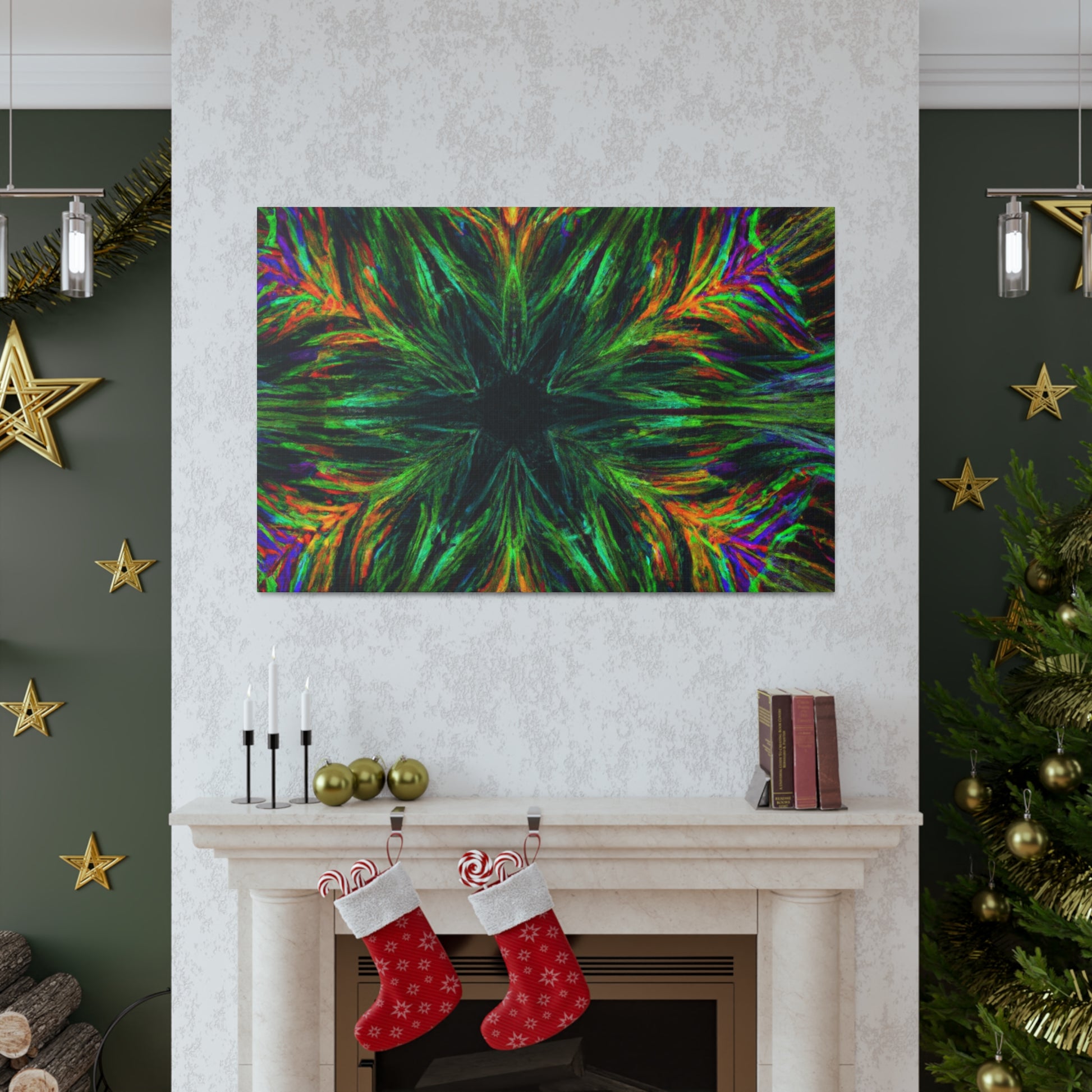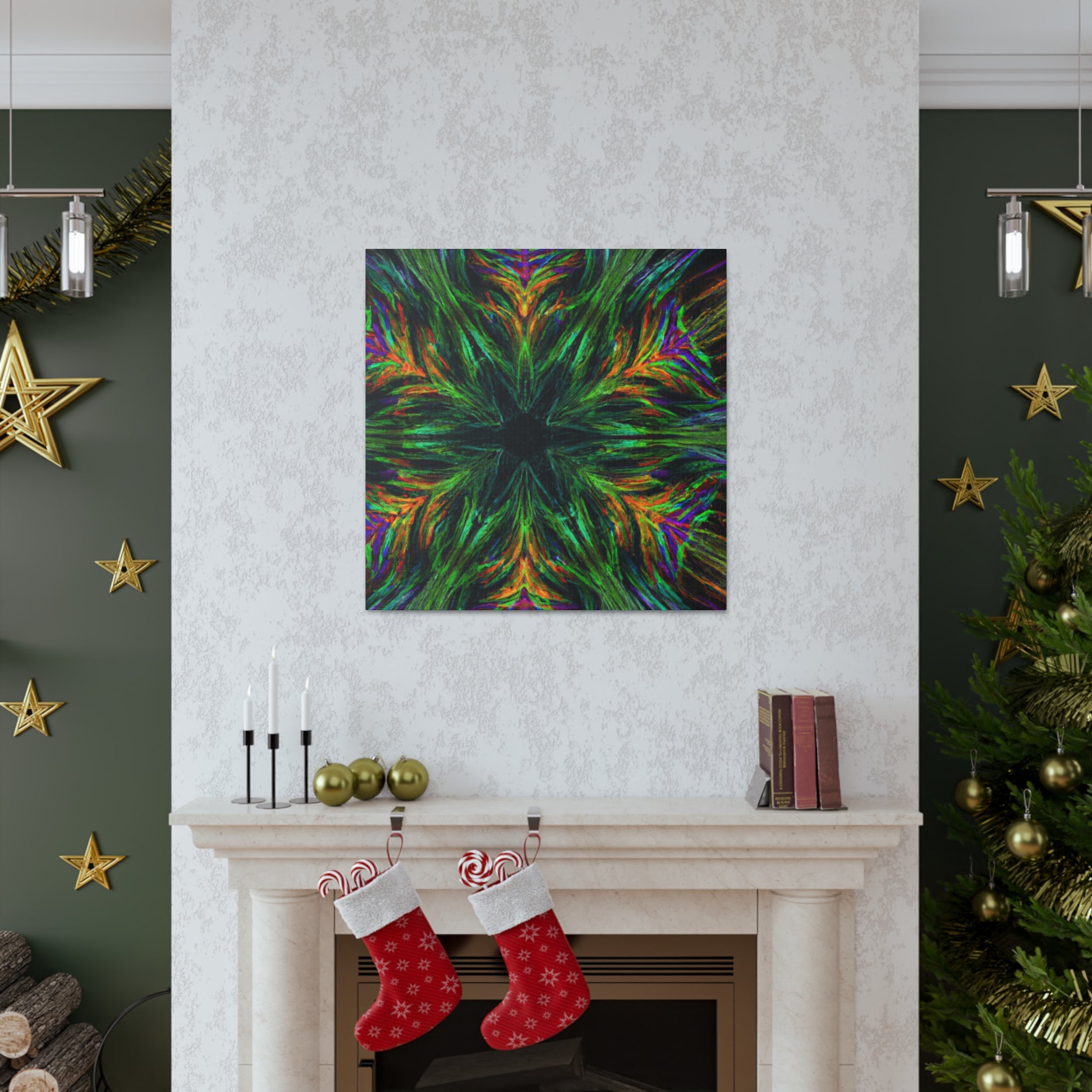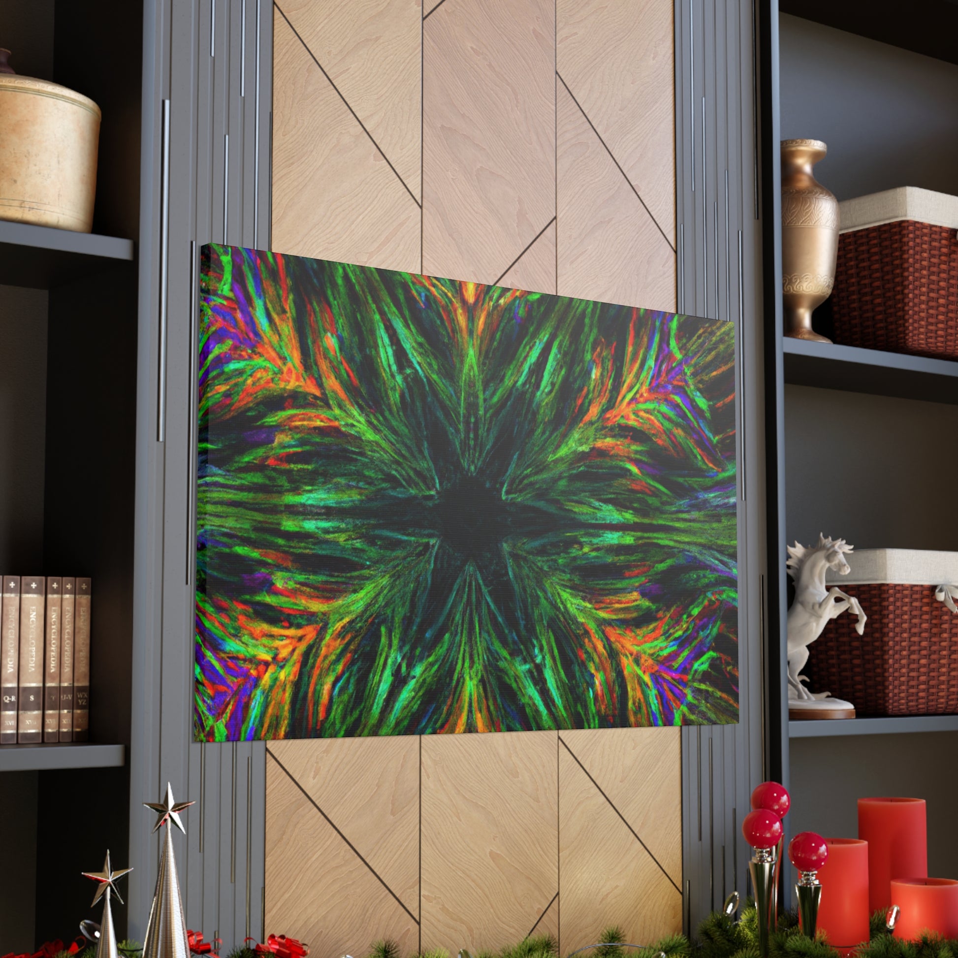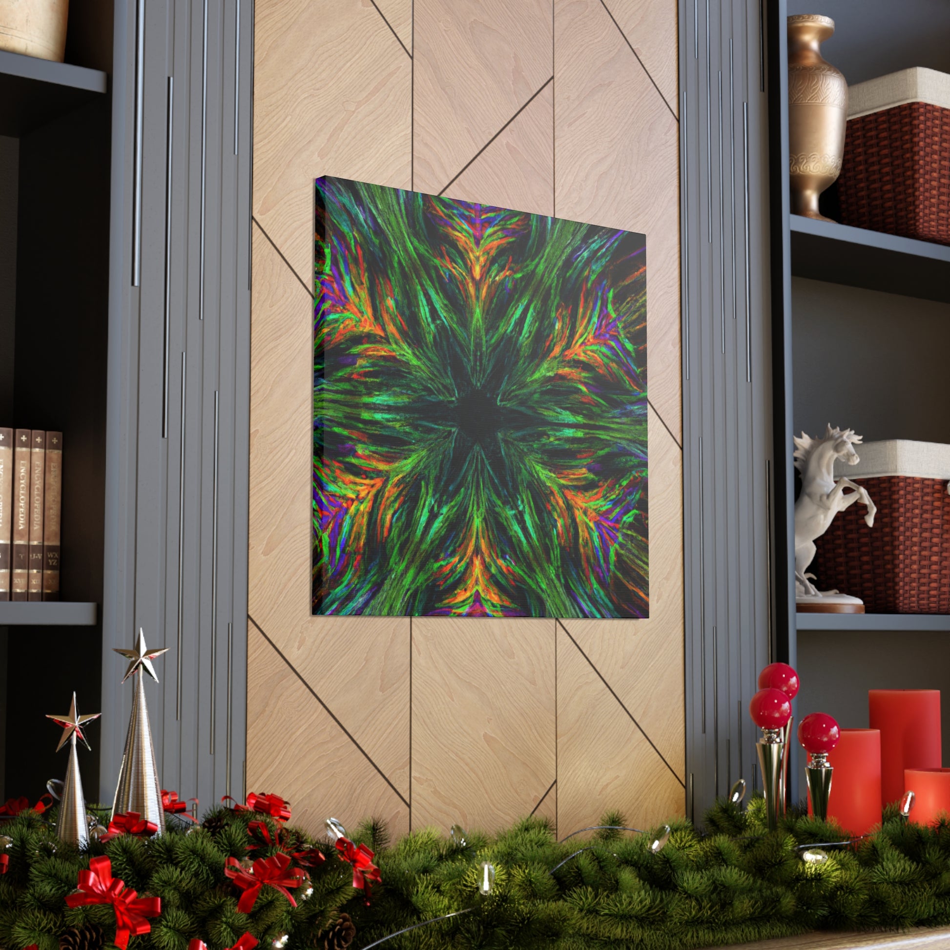 This one-of-a-kind canvas features trippy geometric palm leaves, kaleidoscope designs, 3D lines, abstract art, and vivid colors that create a stunning fractal. Boldly add something unique to your décor with this beautiful digital art piece! #abstractart #fractalart #vibrantcolors #canvasart #kaliedescope #trippyart #3Dlines #palmeleaves #digitlaart #vividcolors #fractaldesign