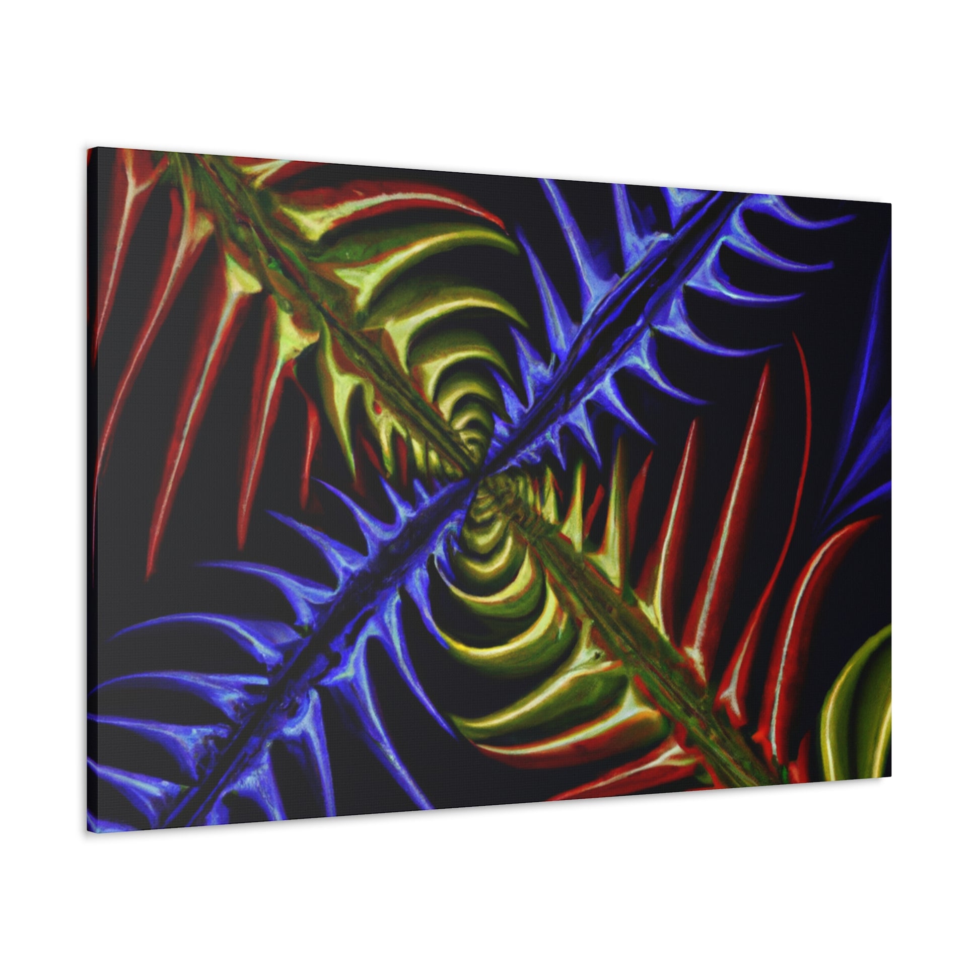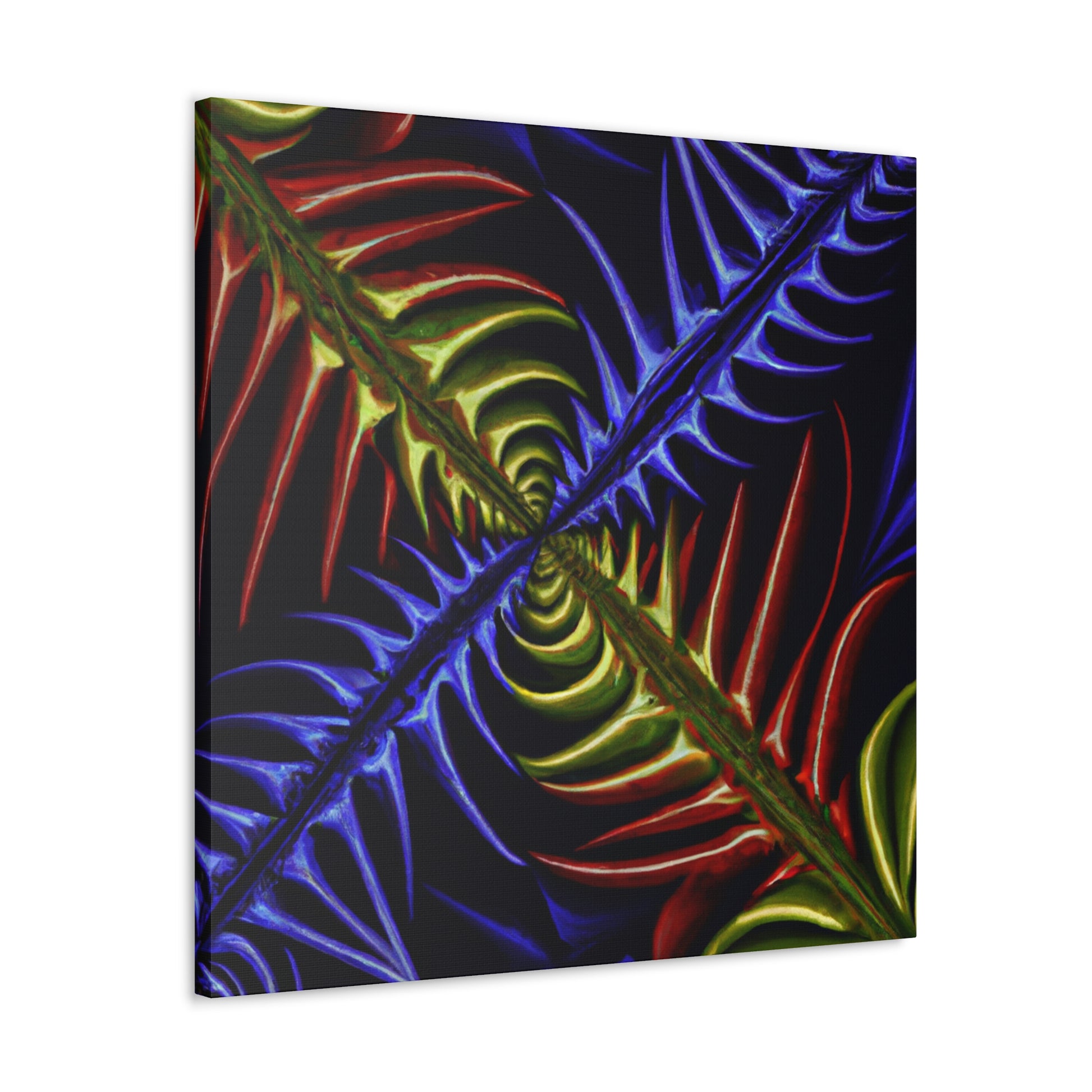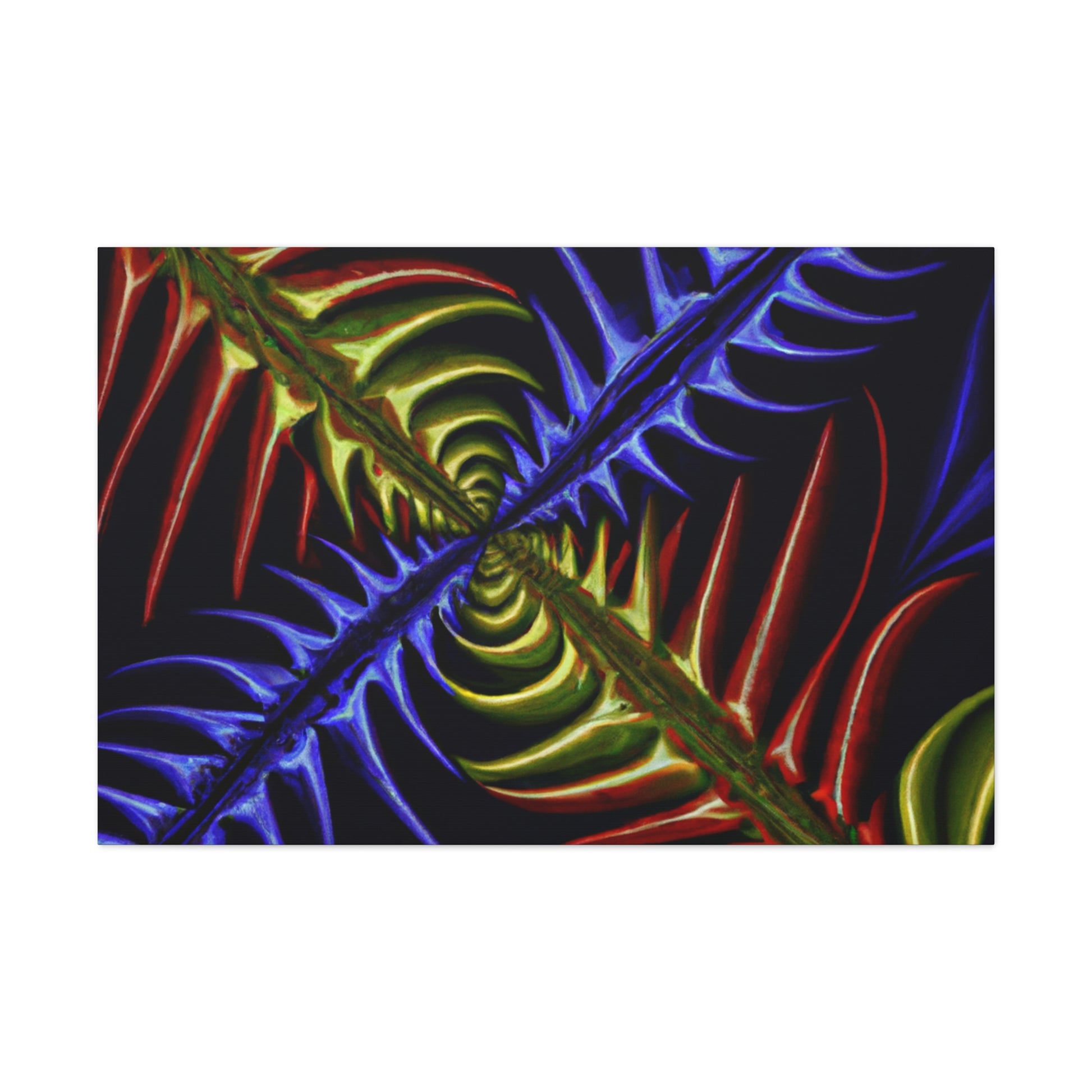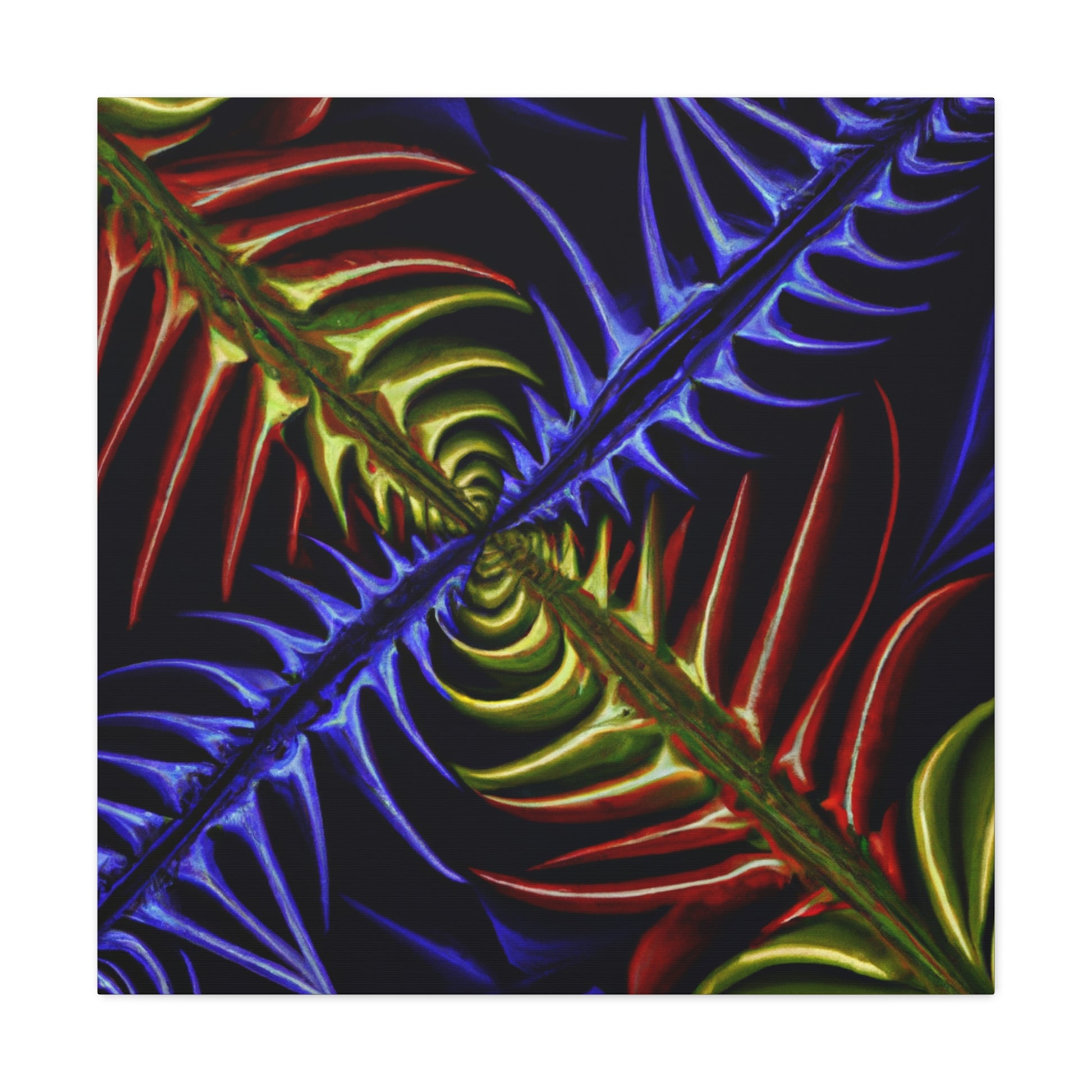 This canvas features a unique combination of trippy geometric palm leaves, kaleidoscope, abstract, and digital art elements, set to vibrant colors and 3D lines. The fractal design gives a stunning visual as it draws the eye. This piece adds a splash of color to any space and will bring a sense of creativity and imagination to your home. #abstractart #palmleaves #kaleidoscope #digitalart #vibrantcolors #3Dlines #fractal #canvasart #canvas #trippygeometric #allemandart