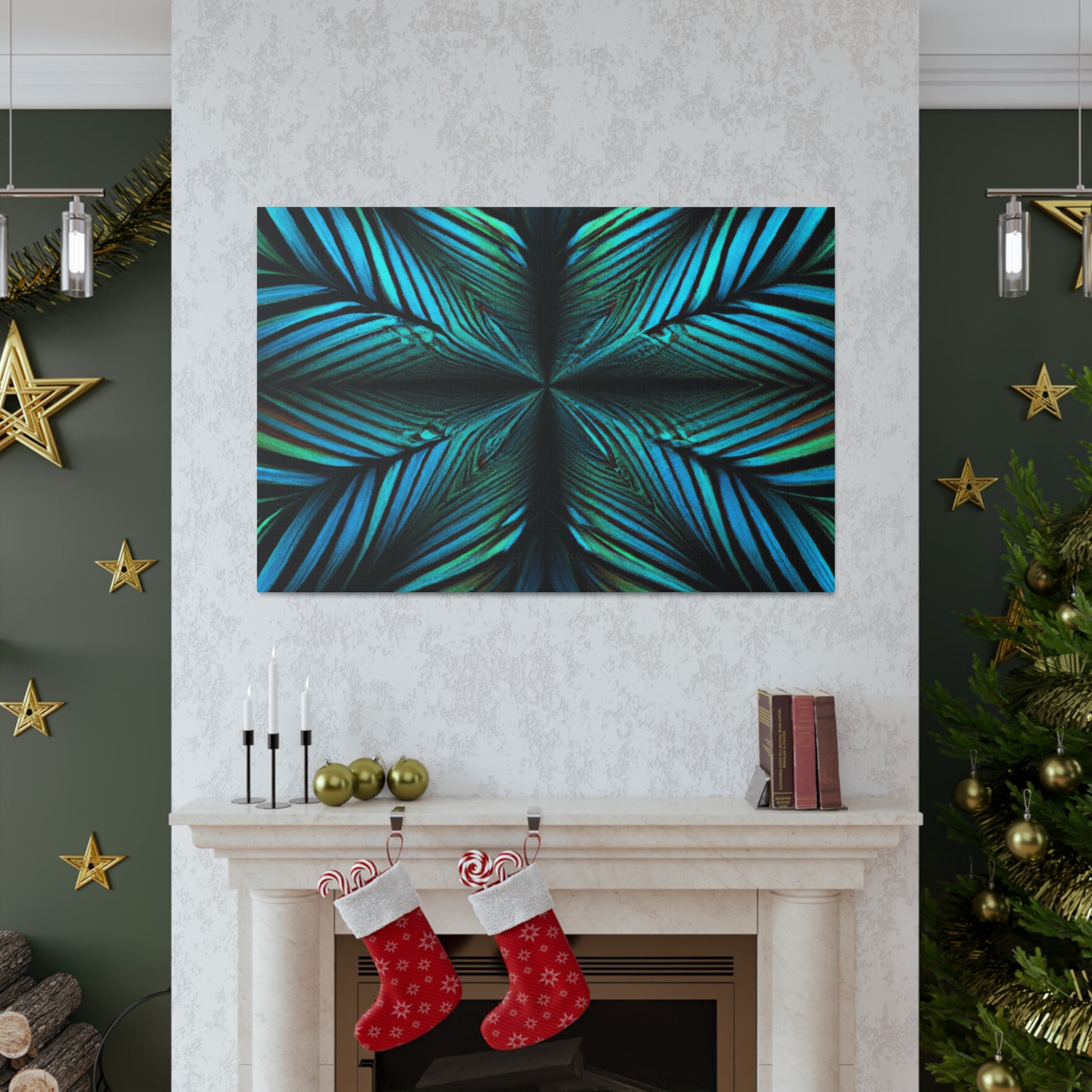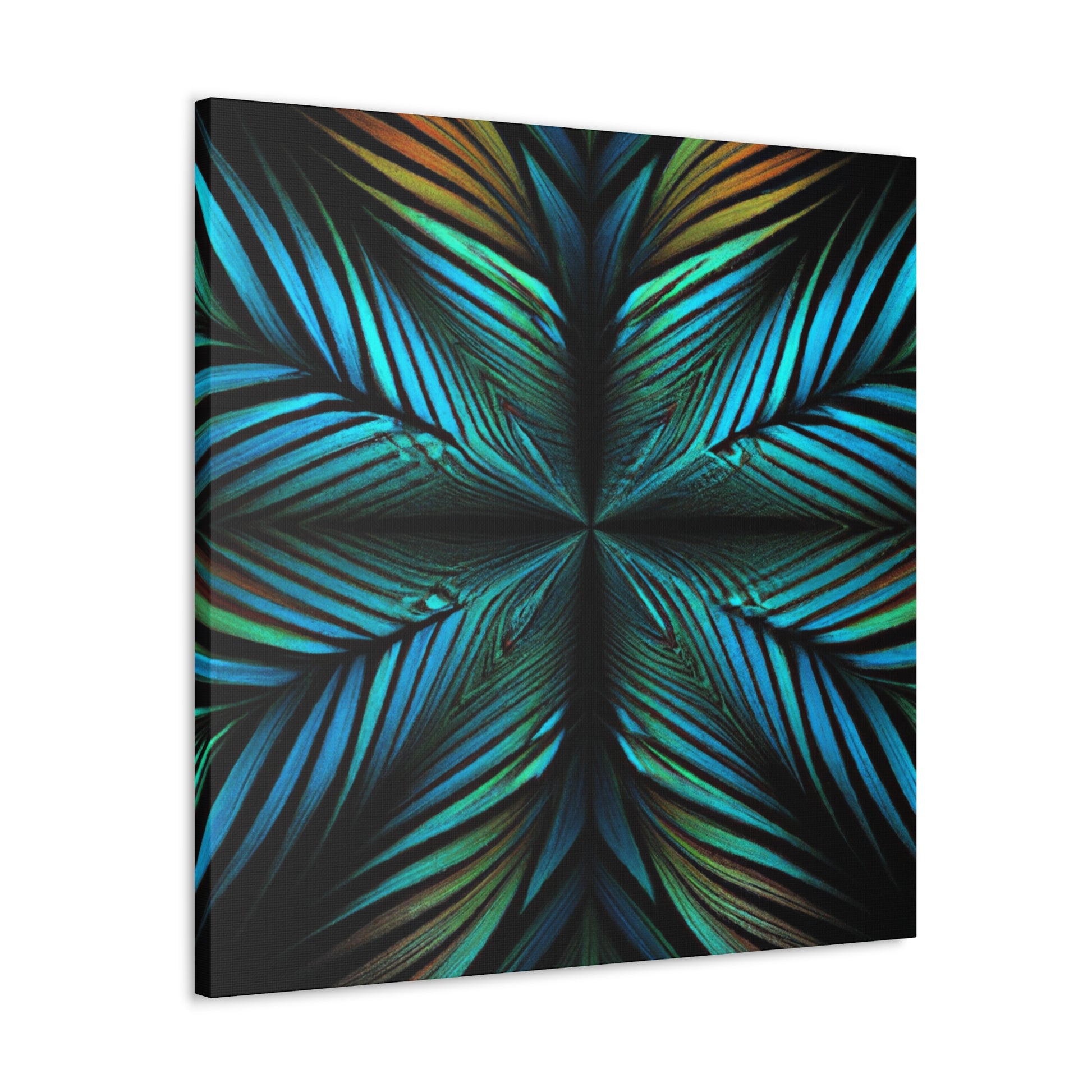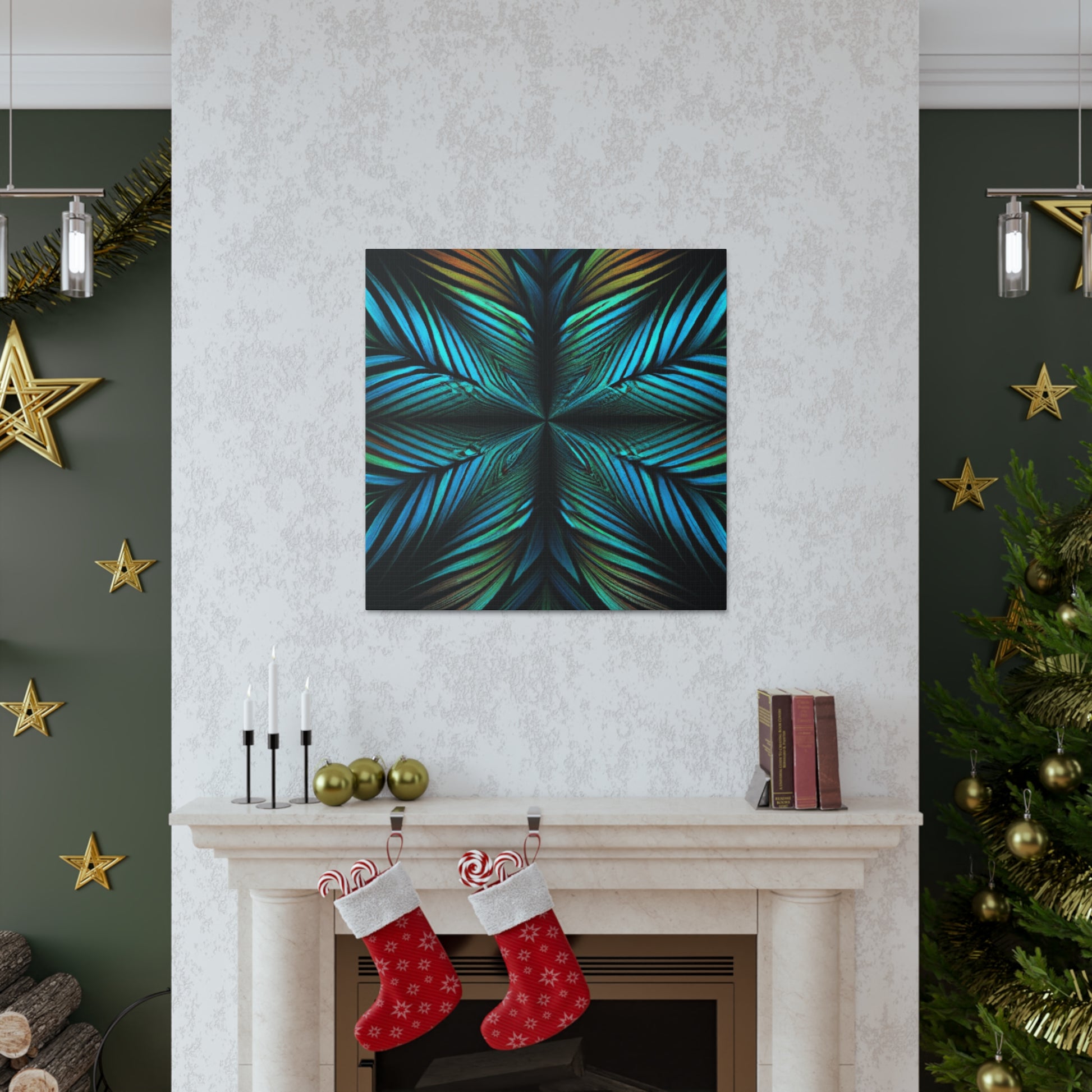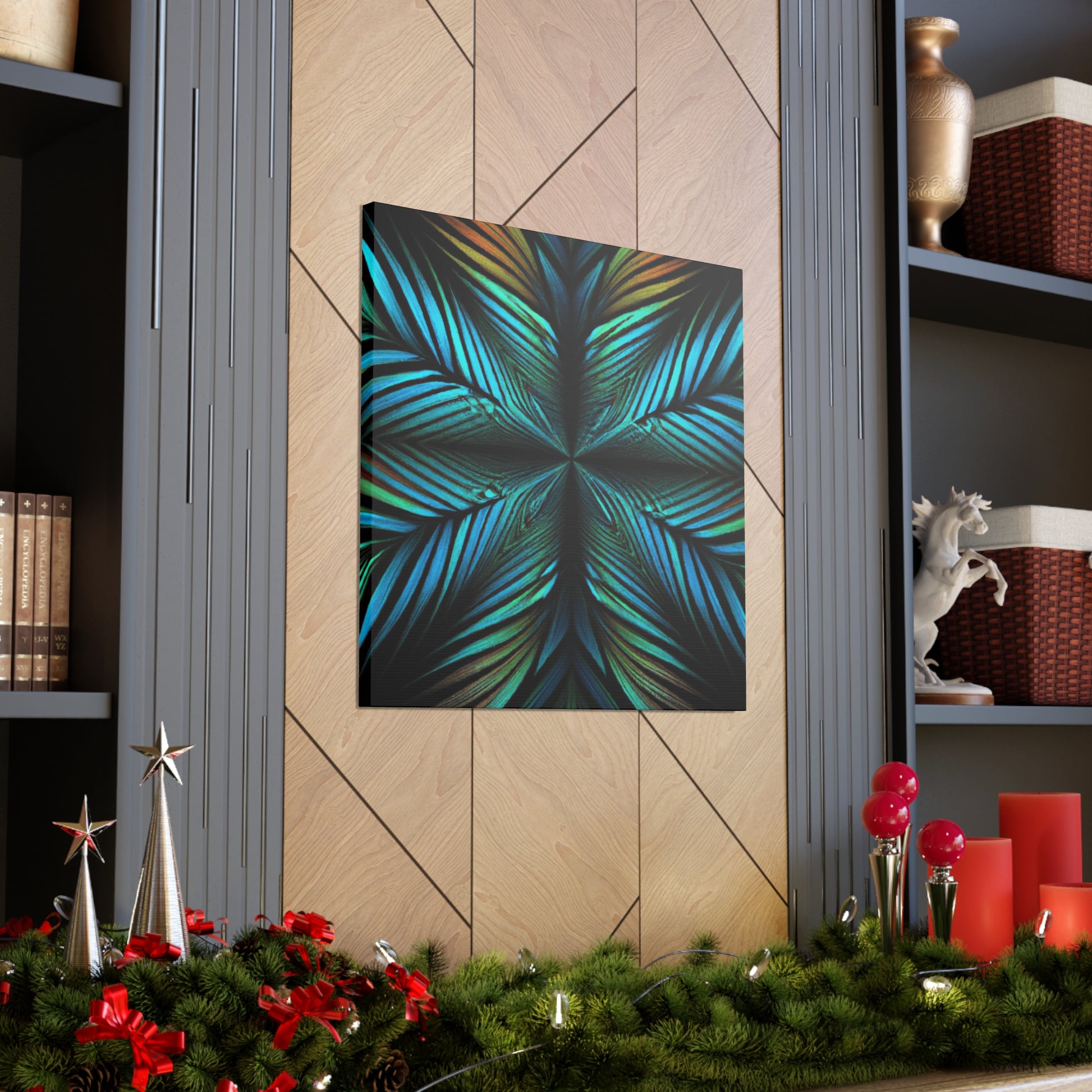This canvas of trippy geometric palm leaves is a one-of-a-kind work of art sure to elevate any space! Featuring kaleidoscope designs and abstract shapes, beautiful vibrant colors, unique 3D lines, and a fractal design, this item will be a standout in any room. Whether it's added to a living room or used as a dorm decoration, this canvas will be the conversation starter everyone is looking for! #palmleaves #kaleidoscope #abstractart #vibrantcolors #3Dlines #fractalart #digitalart #interiordesign #wallart #homedecor