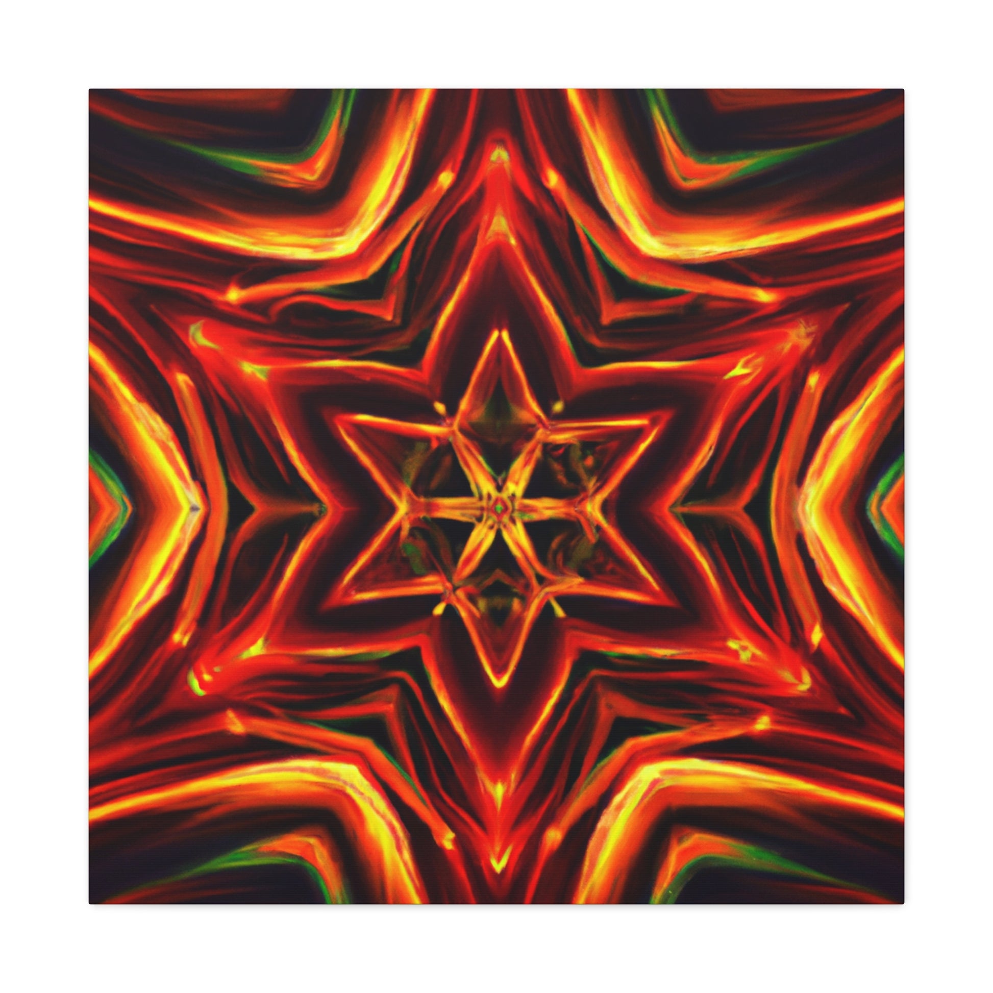 This canvas art print is a unique work of art, perfect for anyone who loves a trippy, kaleidoscopic aesthetic. It features abstract, digital art in vibrant colors, along with hand drawn HD details that make it stand out. Symmetrical floral shapes create a beautiful, mesmerizing display that will make any space standout. #Canvas #ArtPrint #Abstract #Trippy #Kaleidoscope #DigitalArt #VibrantColors #HD #Symmetrical #Center #Viewing