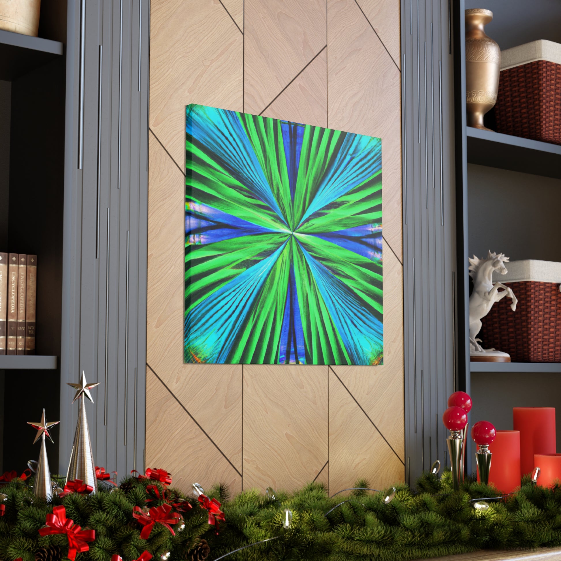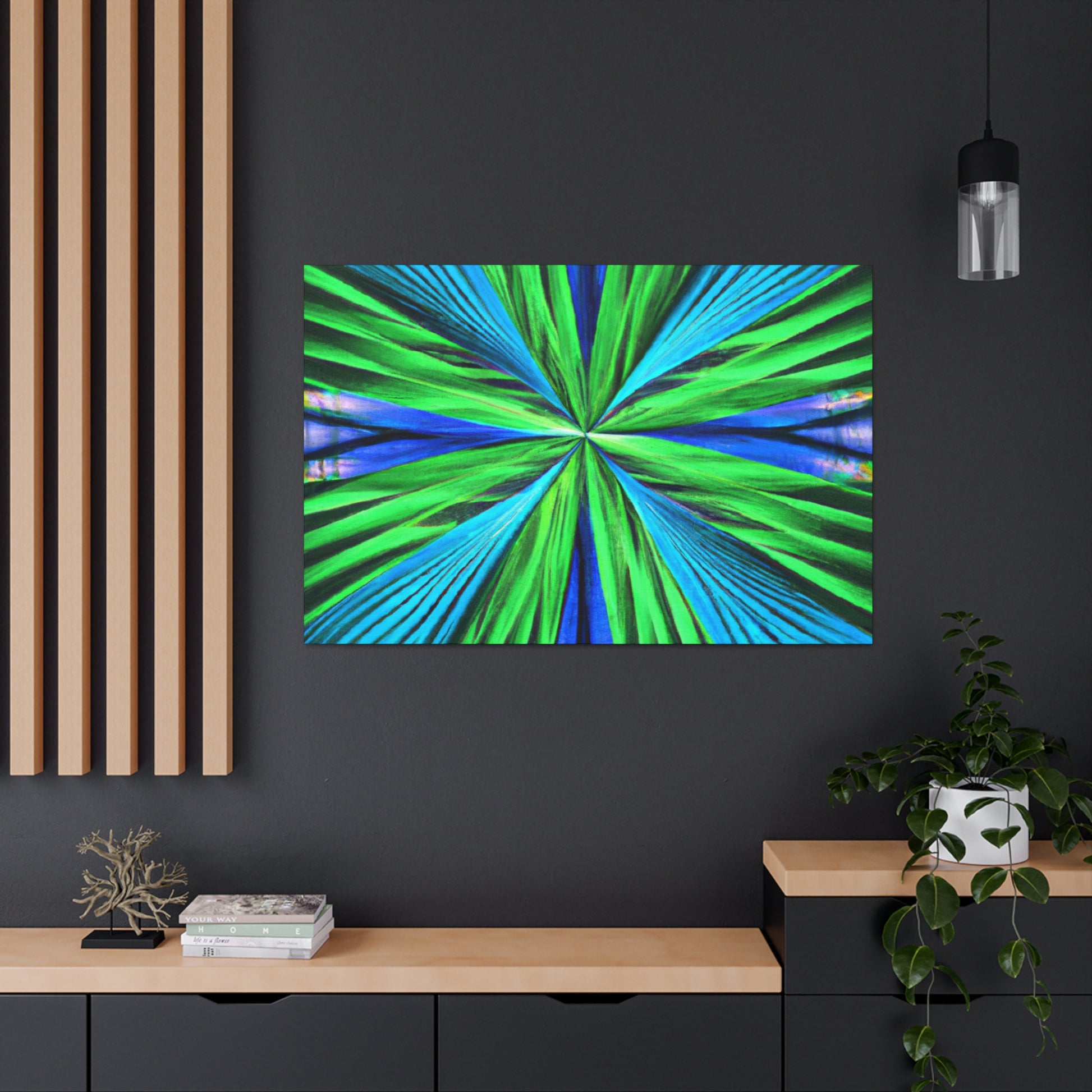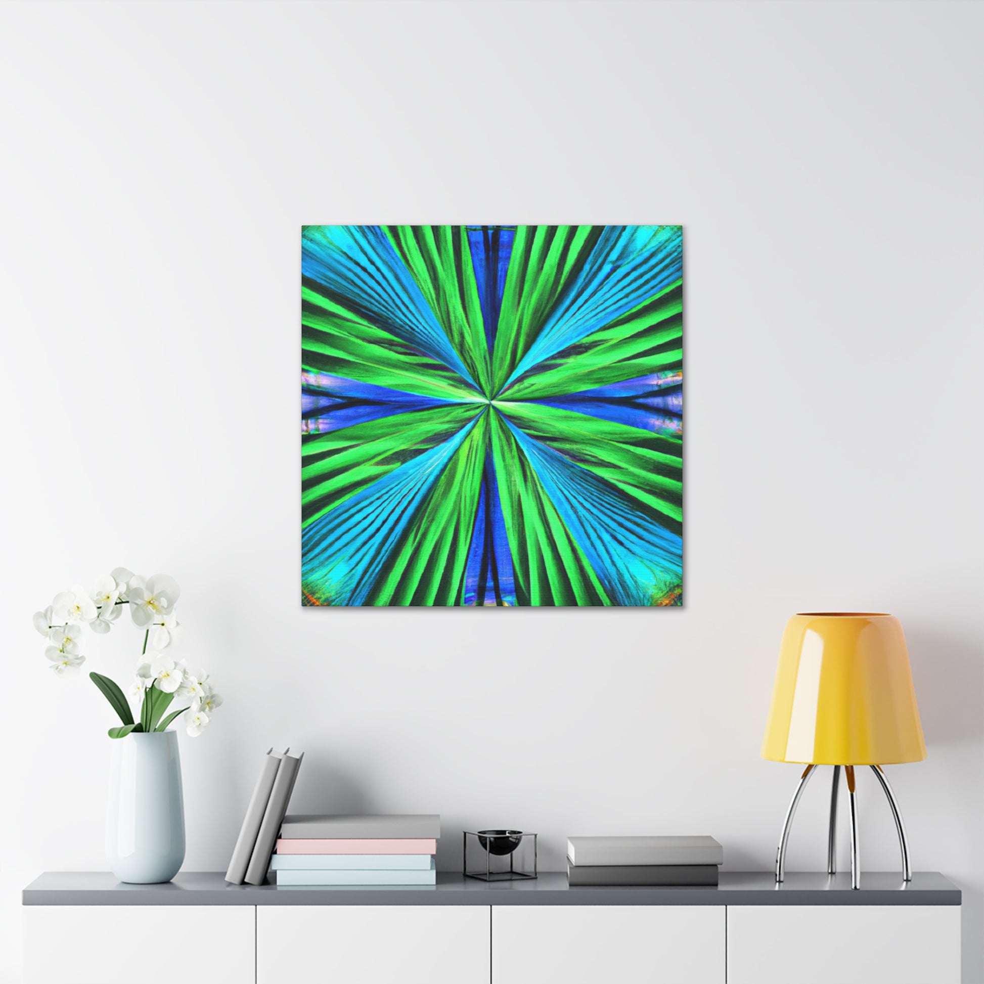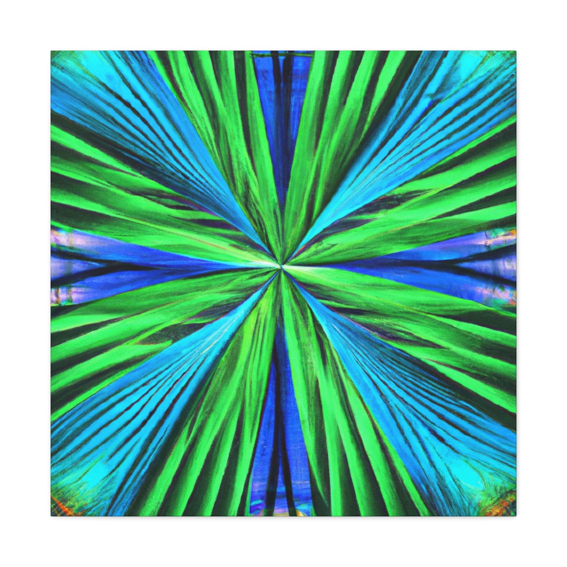 This Trippy Geometric Palm Leaves canvas is sure to be an eye-catching addition to any wall. With abstract, digital art, vibrant colors, 3D lines, and fractal patterns, you can be creative with your own unique statement piece. Add a touch of psychedelic vibes to your home with this digitally printed masterpiece. #abstractart #digitalart #palmleaves #vibrantcolors #3dlines #fractal #kaleidoscope #interiordesign #homeaccents #homedecor