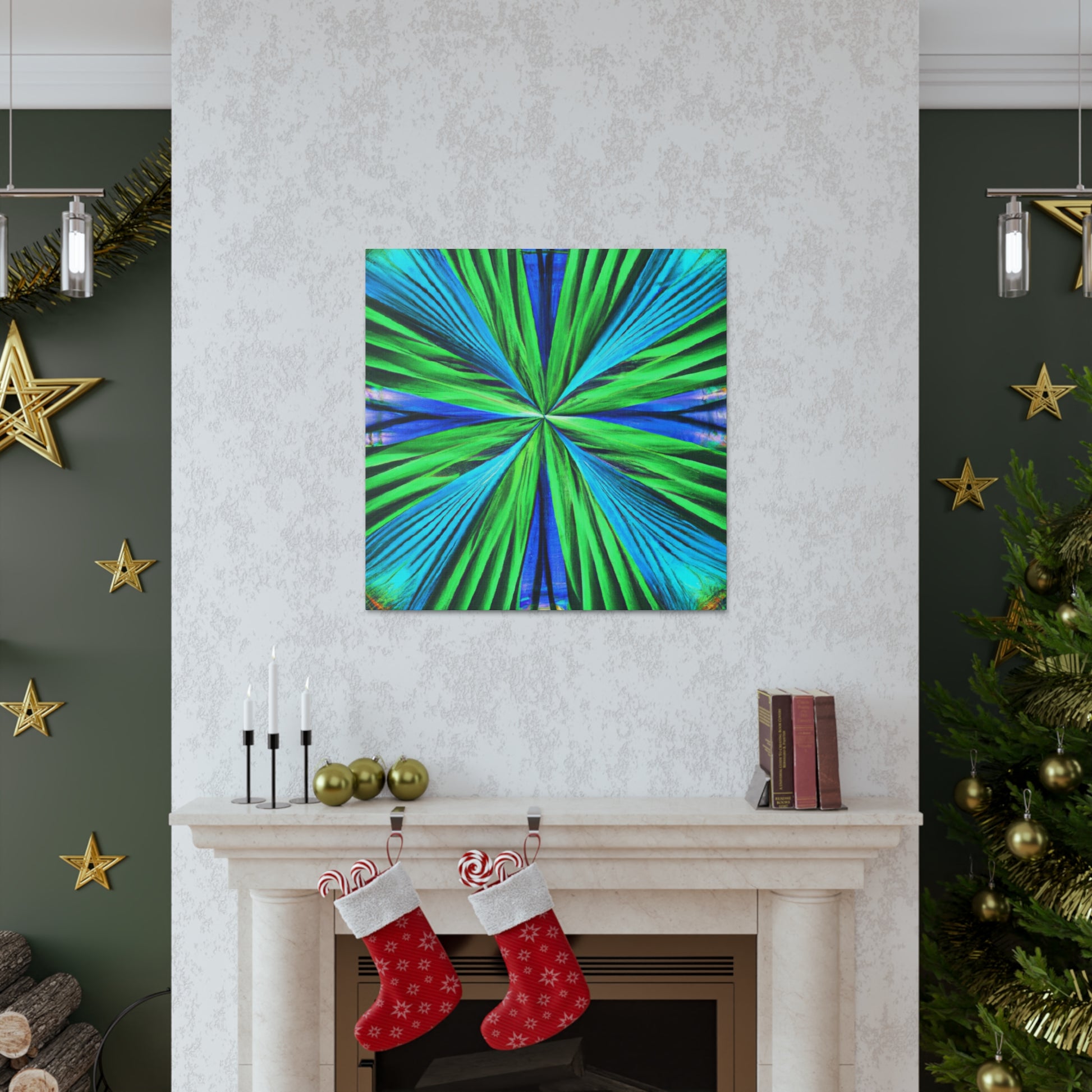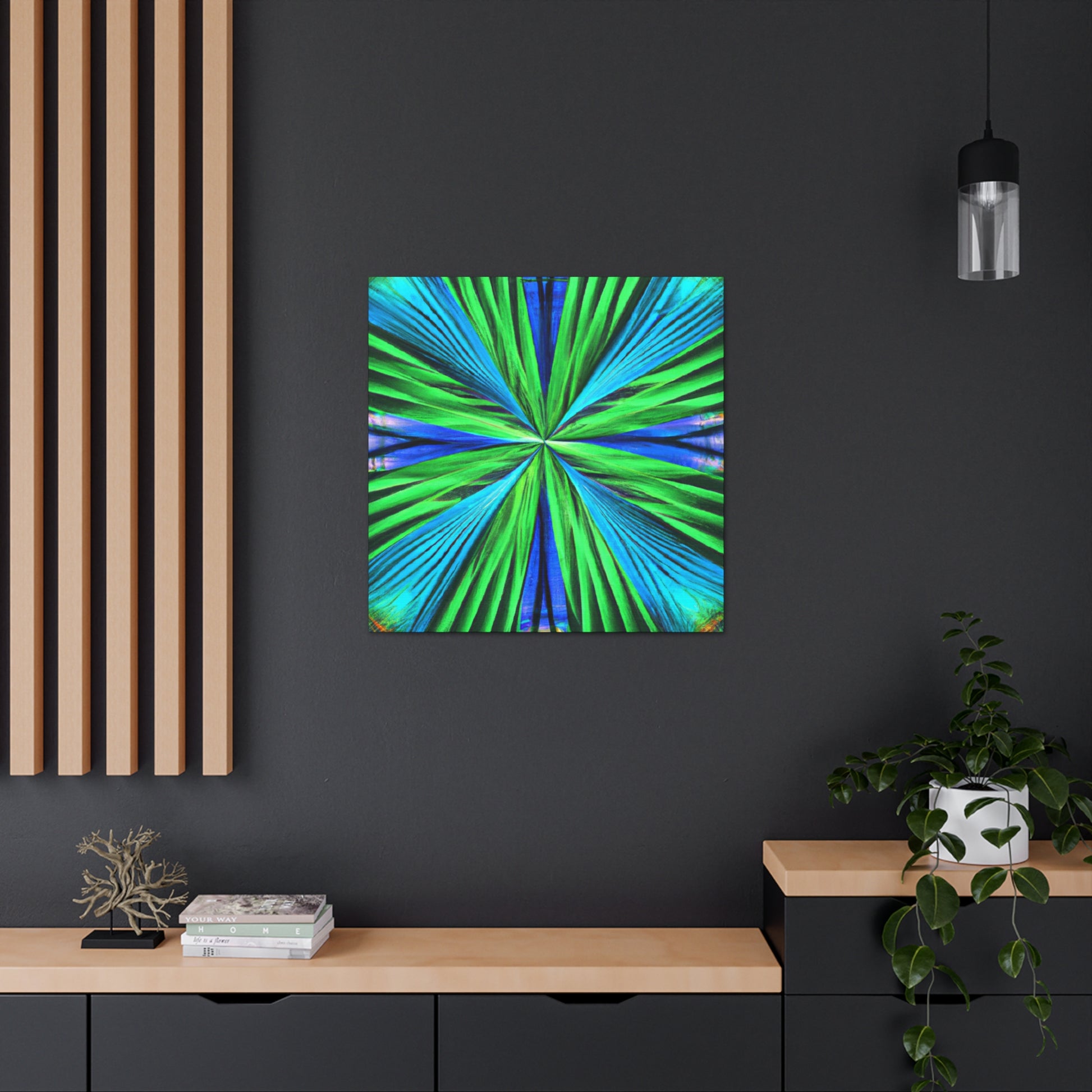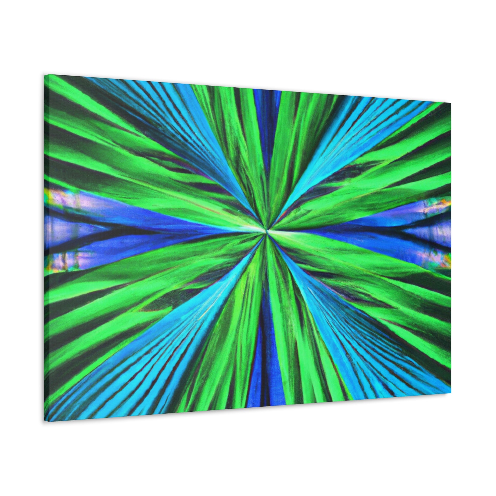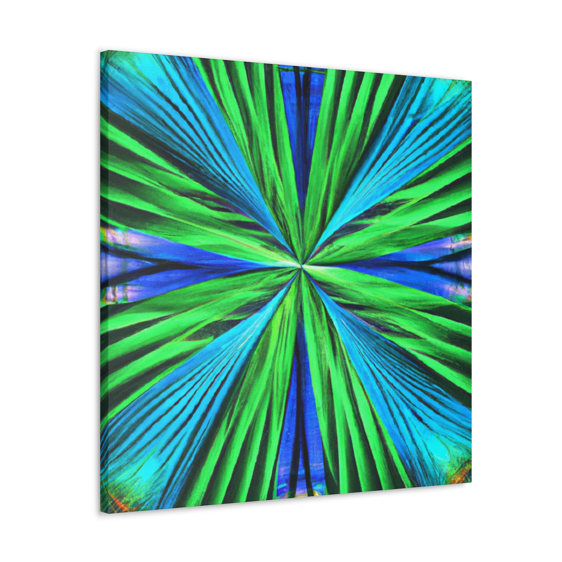 This Trippy Geometric Palm Leaves canvas is sure to be an eye-catching addition to any wall. With abstract, digital art, vibrant colors, 3D lines, and fractal patterns, you can be creative with your own unique statement piece. Add a touch of psychedelic vibes to your home with this digitally printed masterpiece. #abstractart #digitalart #palmleaves #vibrantcolors #3dlines #fractal #kaleidoscope #interiordesign #homeaccents #homedecor