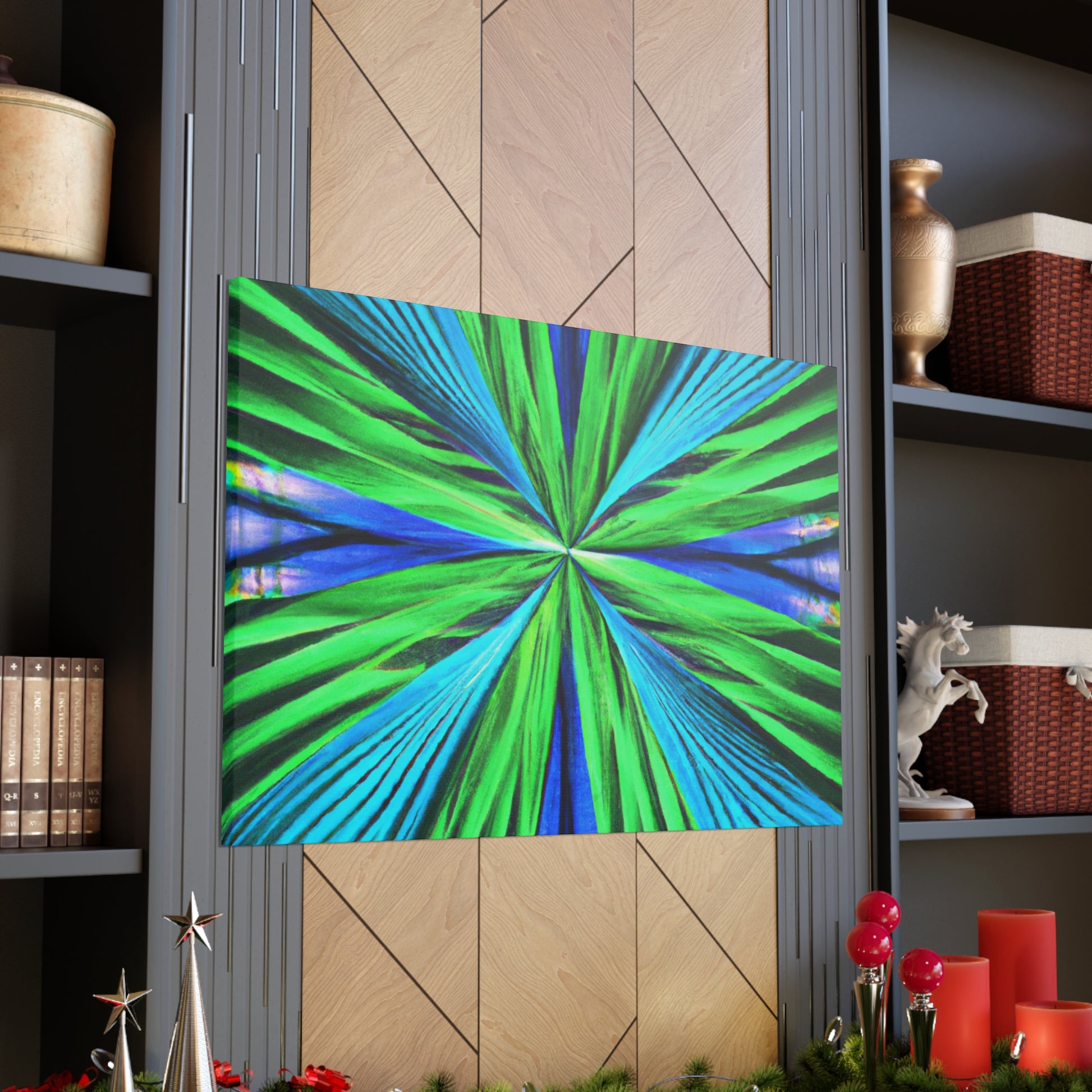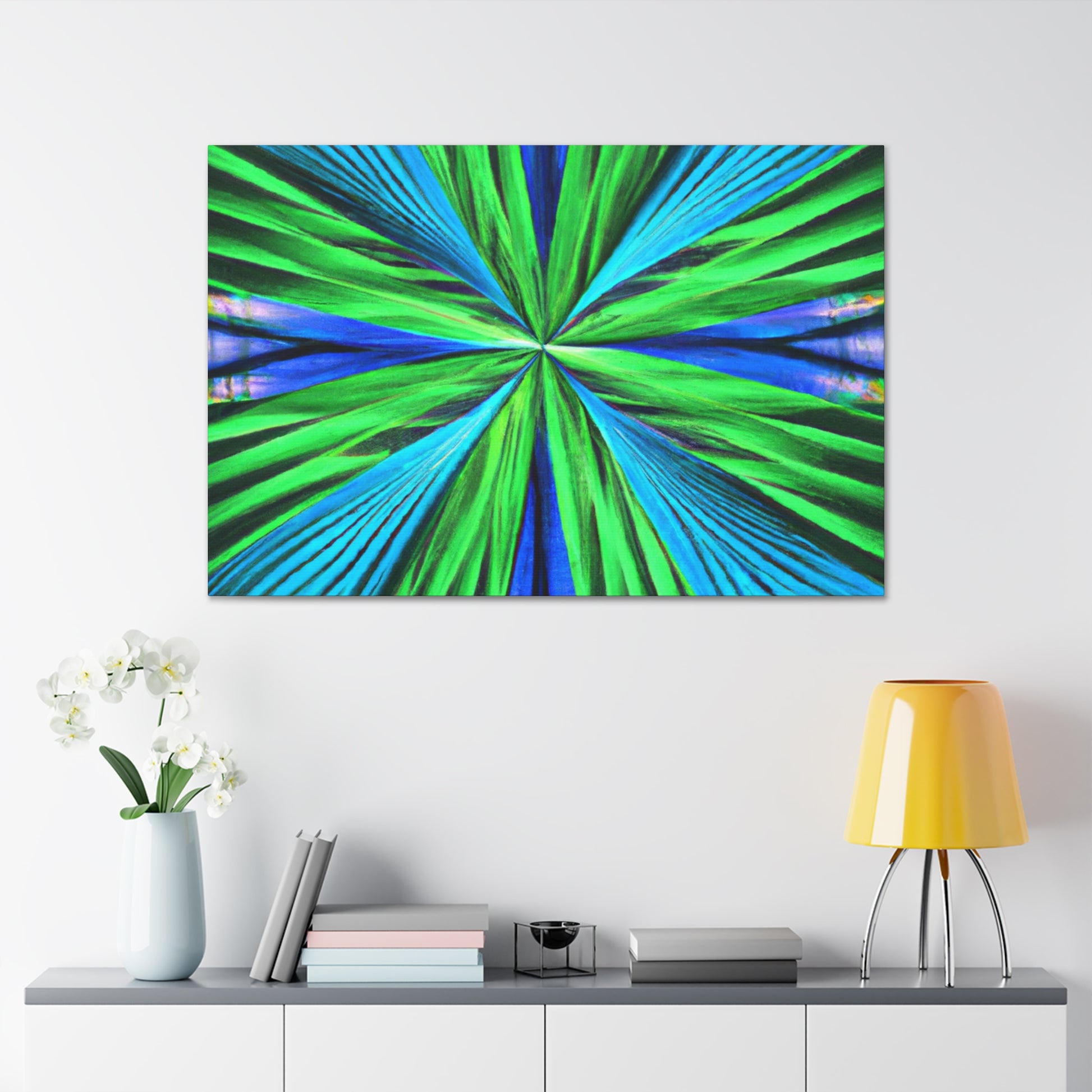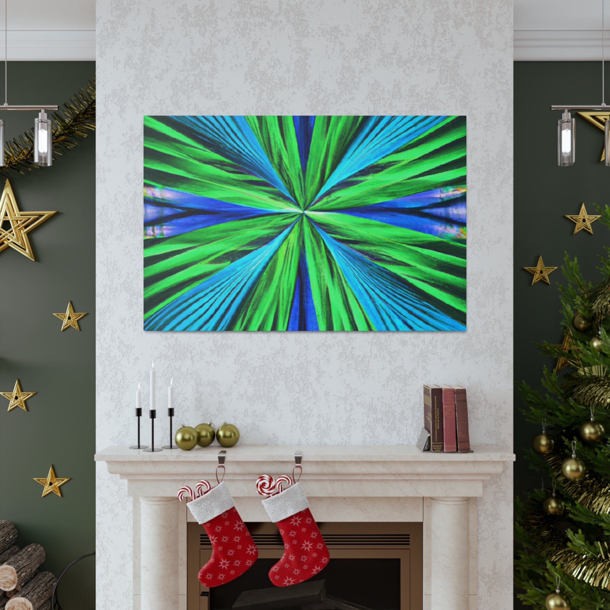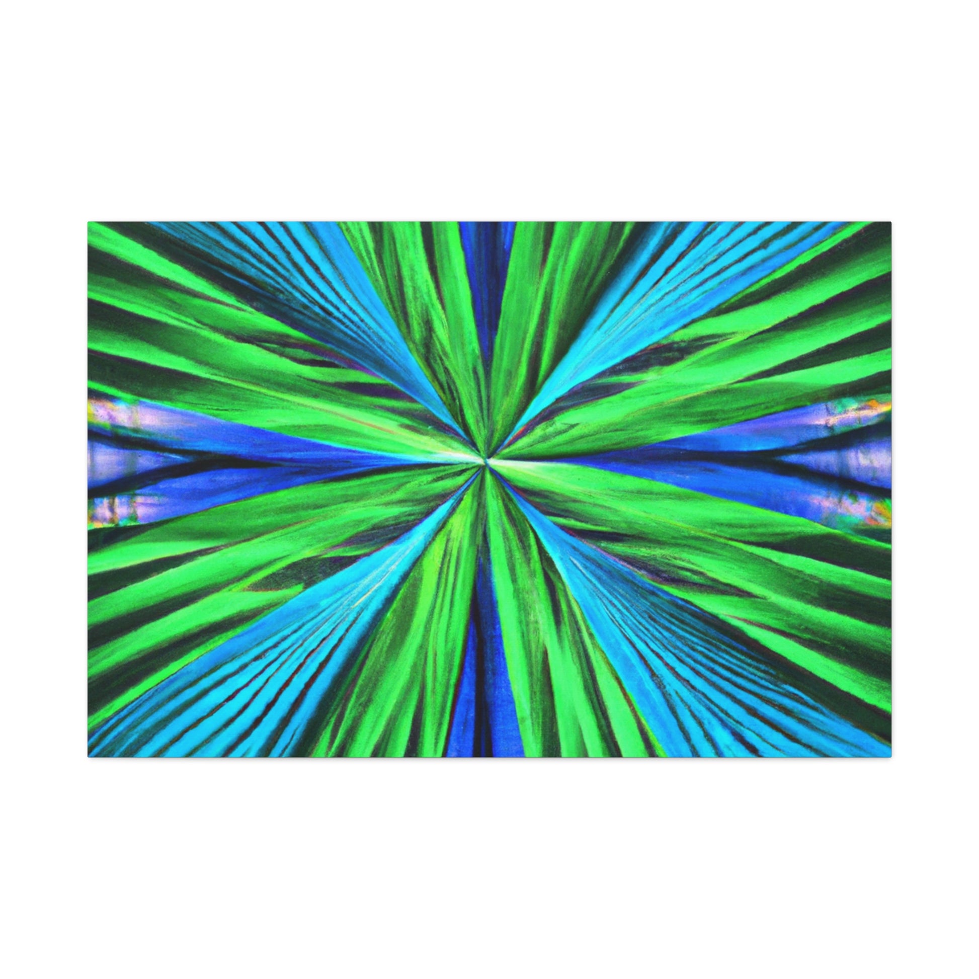 This Trippy Geometric Palm Leaves canvas is sure to be an eye-catching addition to any wall. With abstract, digital art, vibrant colors, 3D lines, and fractal patterns, you can be creative with your own unique statement piece. Add a touch of psychedelic vibes to your home with this digitally printed masterpiece. #abstractart #digitalart #palmleaves #vibrantcolors #3dlines #fractal #kaleidoscope #interiordesign #homeaccents #homedecor