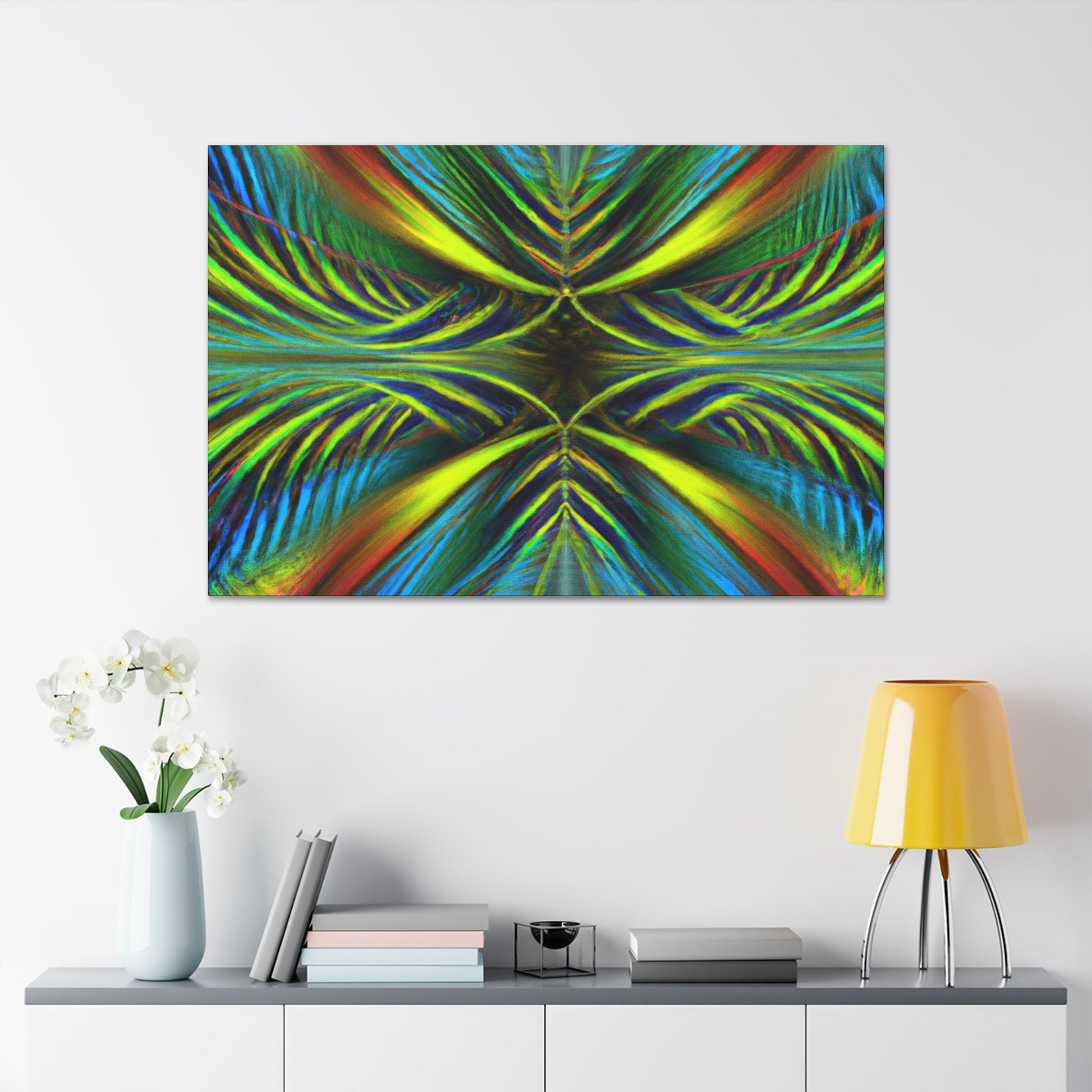This digital art canvas is sure to turn any room into a vibrant oasis! A Trippy Geometric Palm Leaf, Kaleidoscope, Abstract, and 3D design that incorporates Fractal and Vibrant Colors to make a stunning 3D piece of art. Bring life to any room with this Collection! #DigitalArt #AbstractArt #FractalArt #TrippyGeometric #PalmLeaf #Kaleidoscope #ArtCanvas #VibrantColors #3DLines #3DArt #DigitalPainting