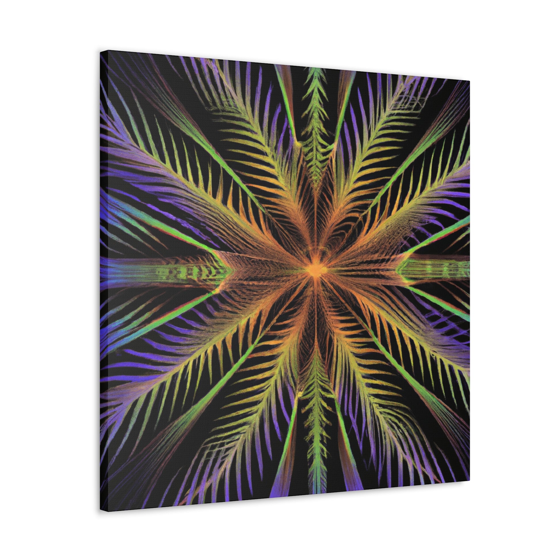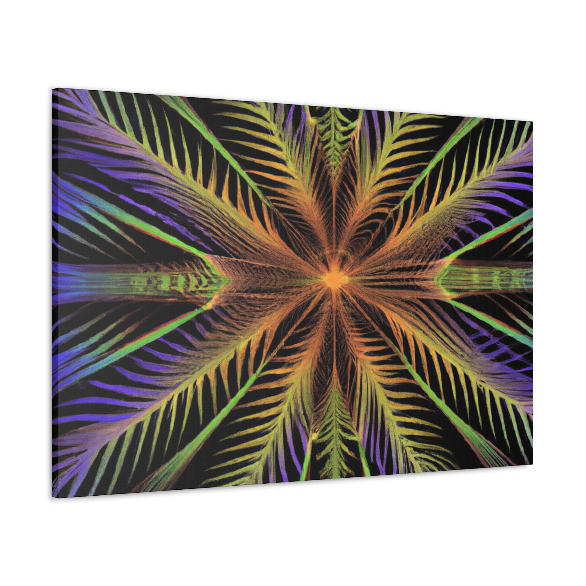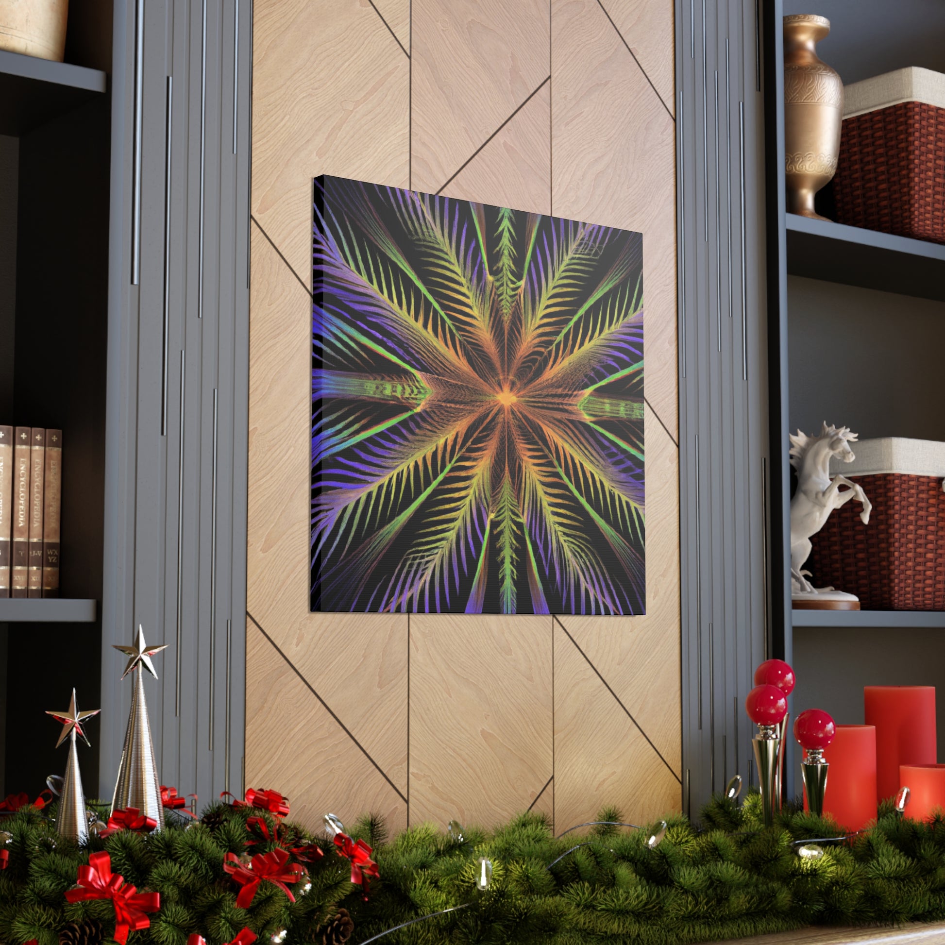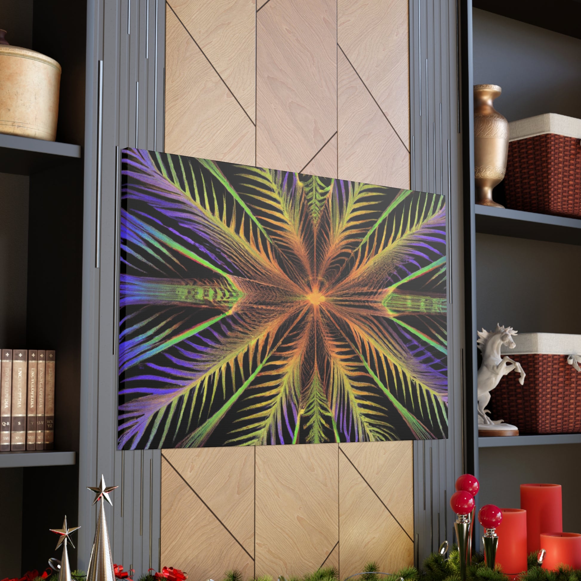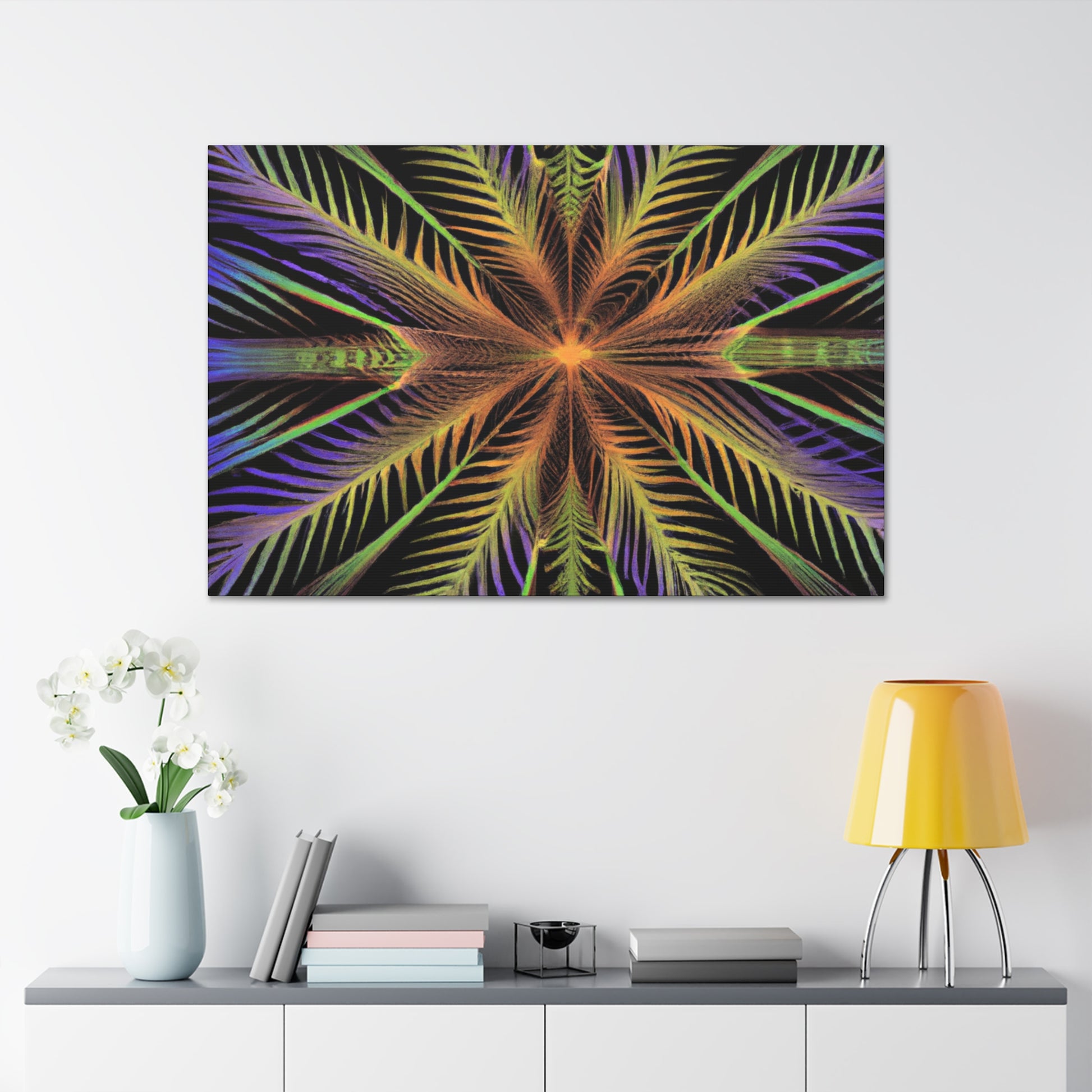 This captivating and eye-catching canvas displays a beautiful trippy geometric design, featuring kaleidoscopic abstract colors, sharp 3D lines, fractal shapes, and vibrant colorful elements. This unique piece of digital art resembles a feathery palm leaf, creating an incredible visual impact that will be a showstopper in your home decor. #digitalart #3Dlines #fractalart #kaleidoscope #palmleaves #abstractart #canvasdecor #vibrantcolors #geometricart #3Dfractal #trippyart