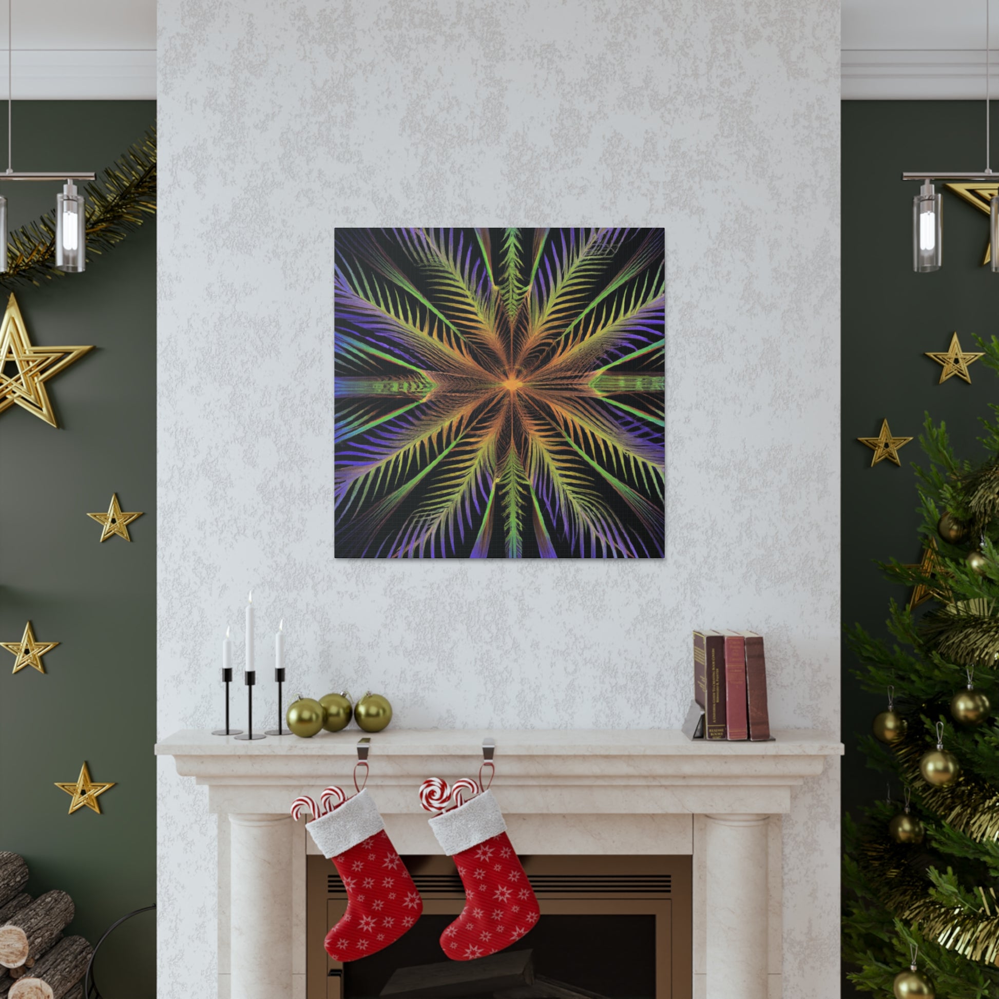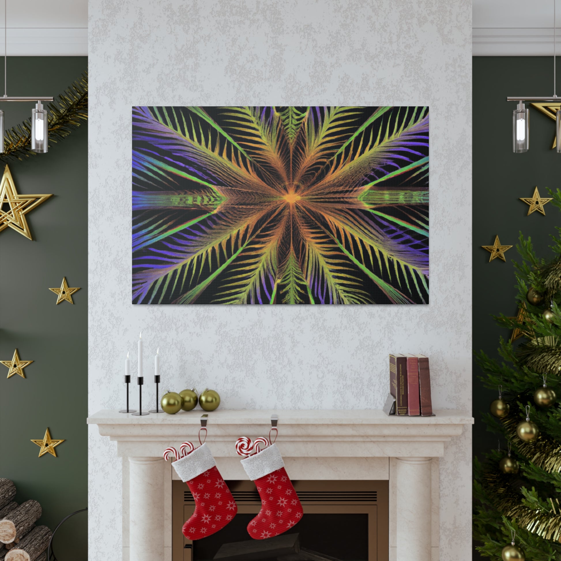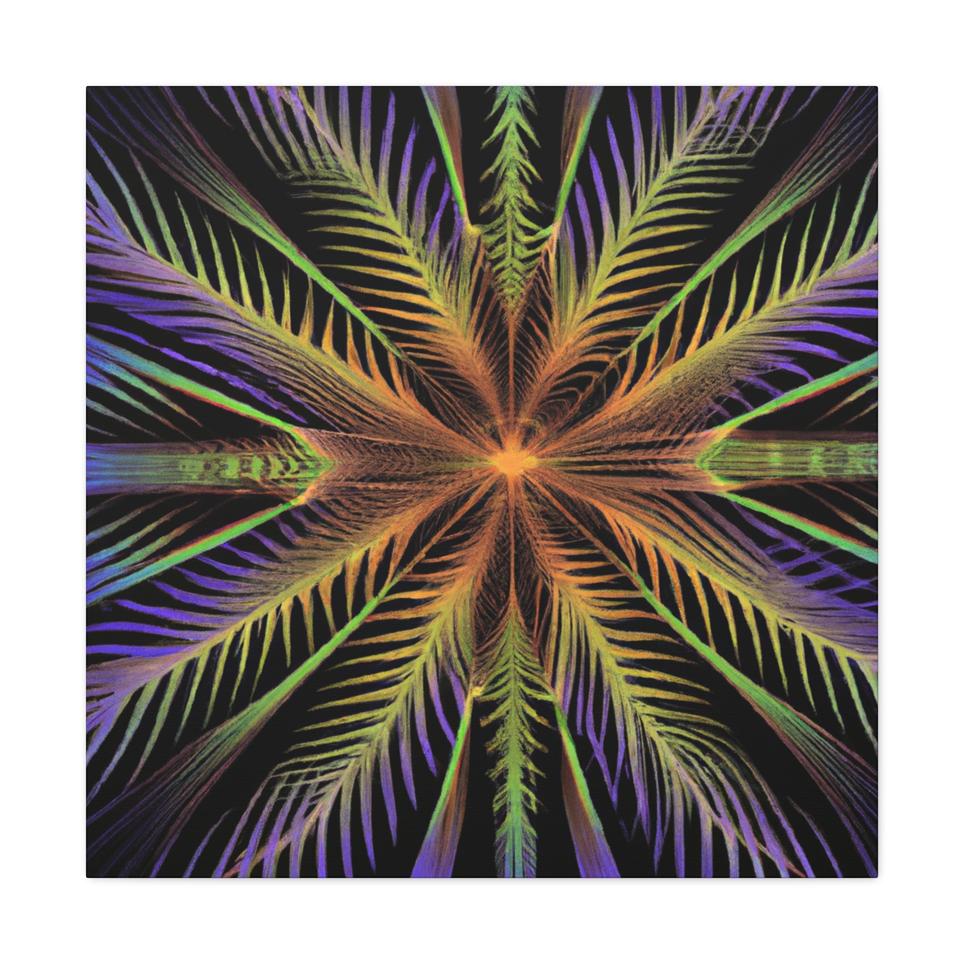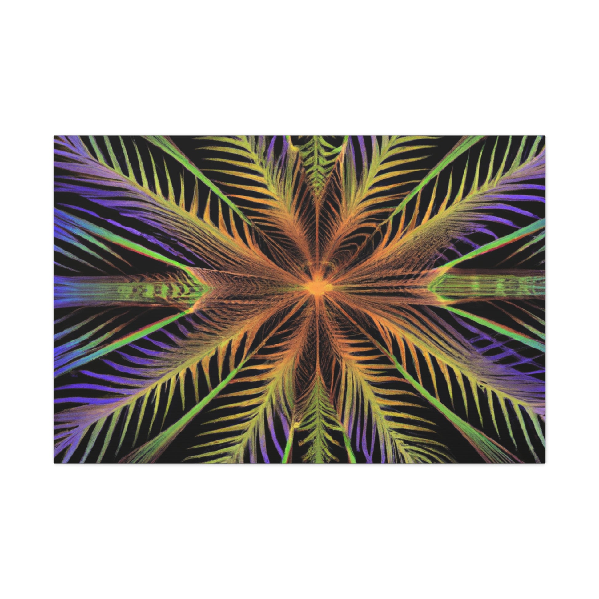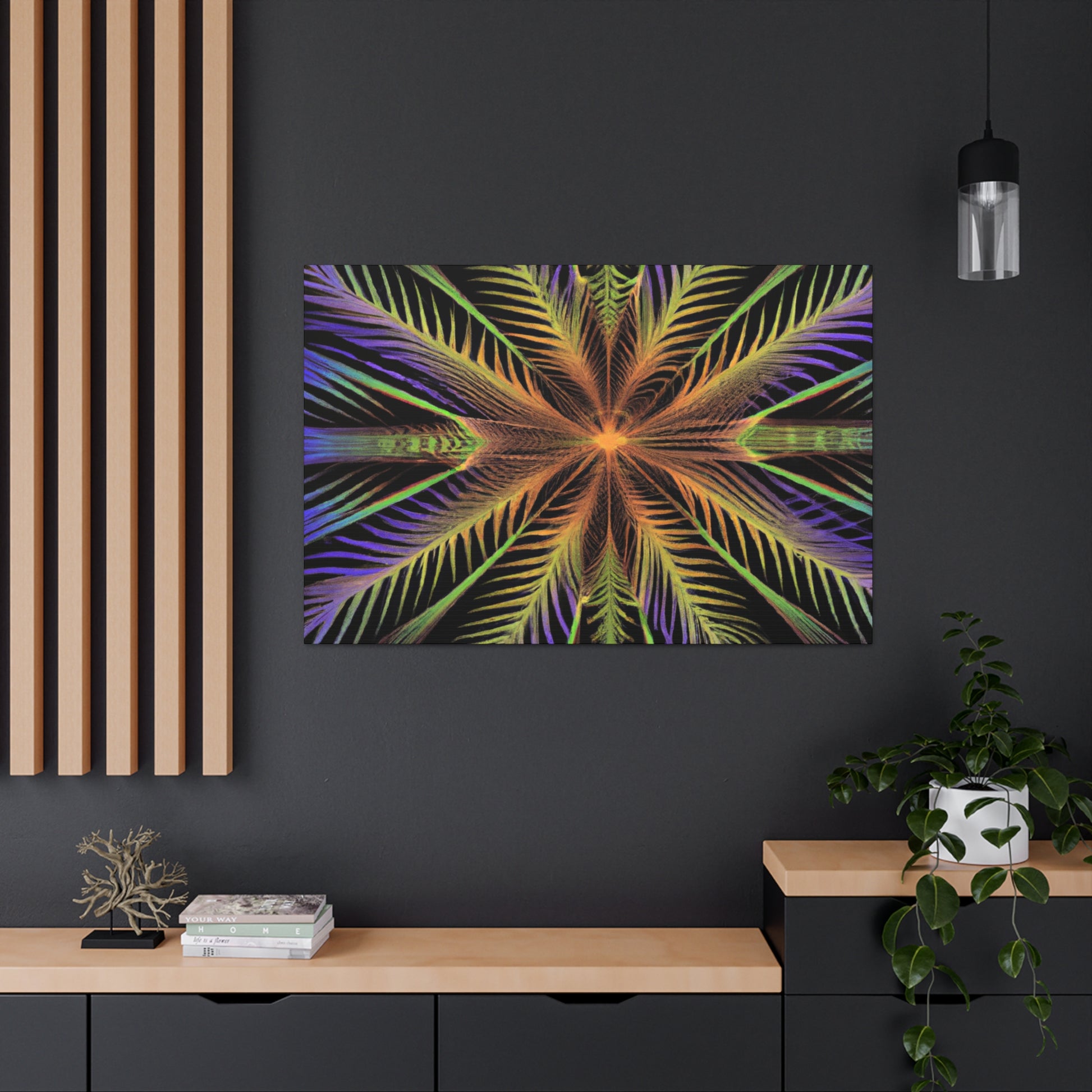 This captivating and eye-catching canvas displays a beautiful trippy geometric design, featuring kaleidoscopic abstract colors, sharp 3D lines, fractal shapes, and vibrant colorful elements. This unique piece of digital art resembles a feathery palm leaf, creating an incredible visual impact that will be a showstopper in your home decor. #digitalart #3Dlines #fractalart #kaleidoscope #palmleaves #abstractart #canvasdecor #vibrantcolors #geometricart #3Dfractal #trippyart