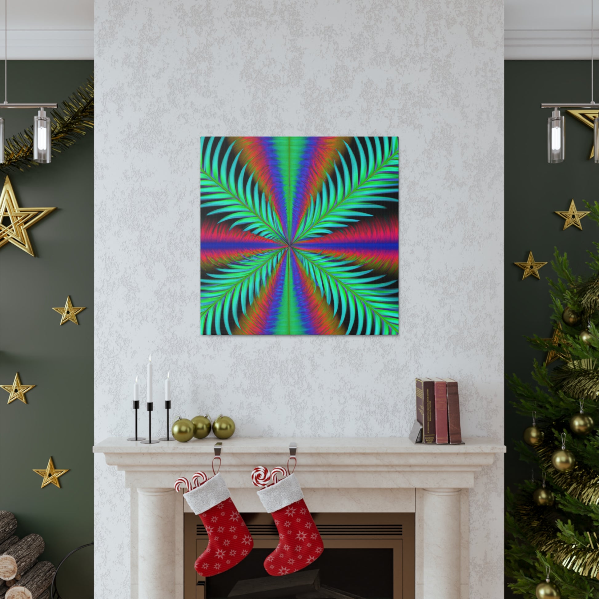 Vibrance meets artistry, creating a captivating future-forward design with this canvas of Trippy Geometric Palm Leaves, Kaleidoscope, Abstract, Digital Art, Vibrant Colors, 3D Lines, & Fractal. Noted artists have combined synchronized elements to evoke a dynamic surrealist twist. Hang it in your home space and bask in the ethereal energy of the artwork anytime. #trippyart #geometricart #kaleidoscope #abstractart #digitalart #vibrantcolors #3Dlines #fractal #homeart #create #vibes