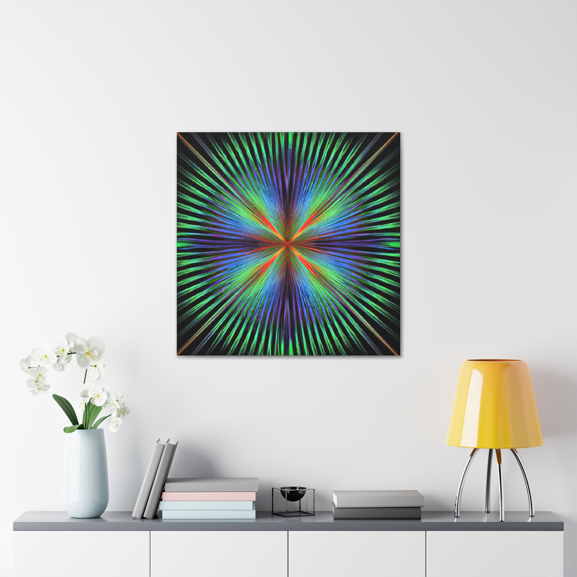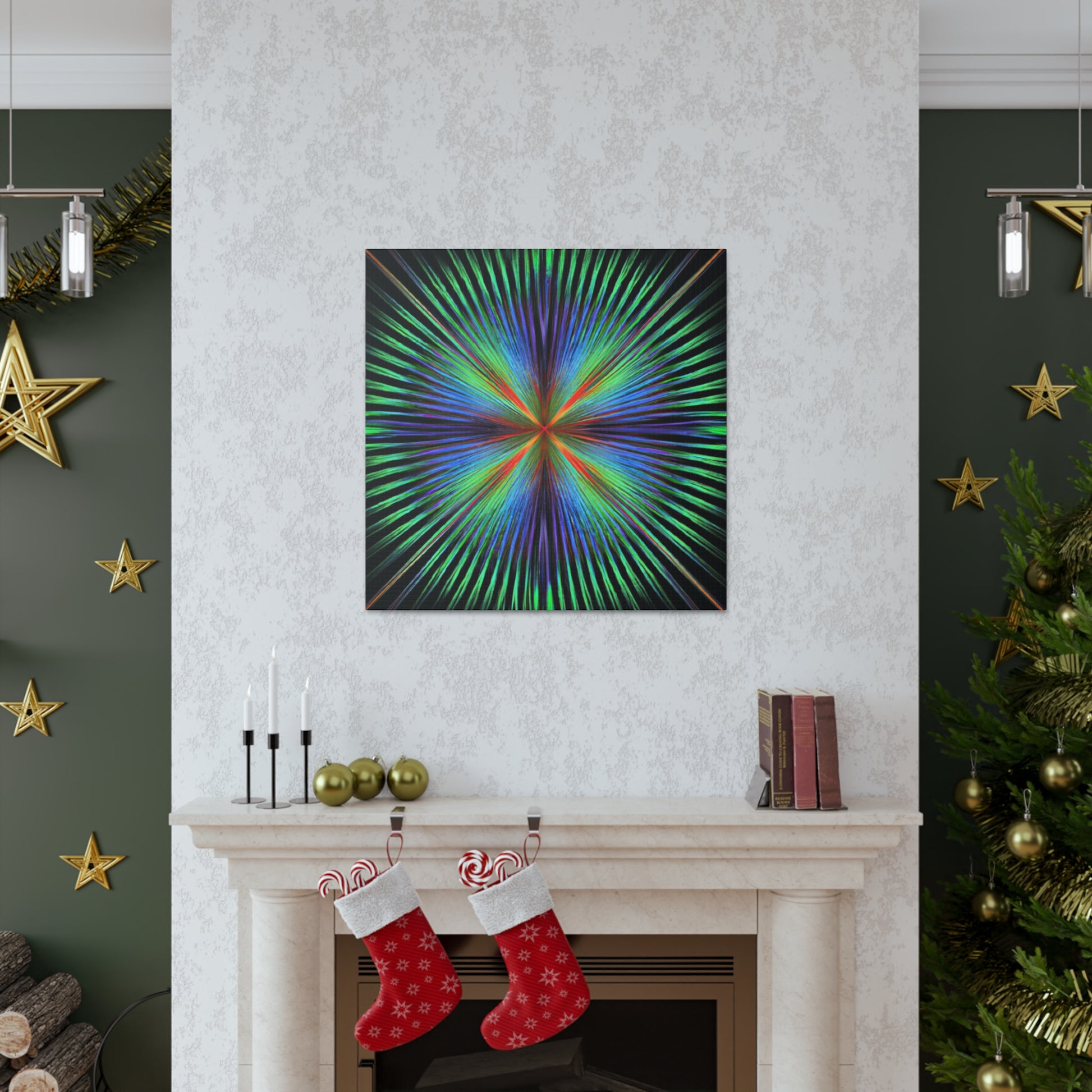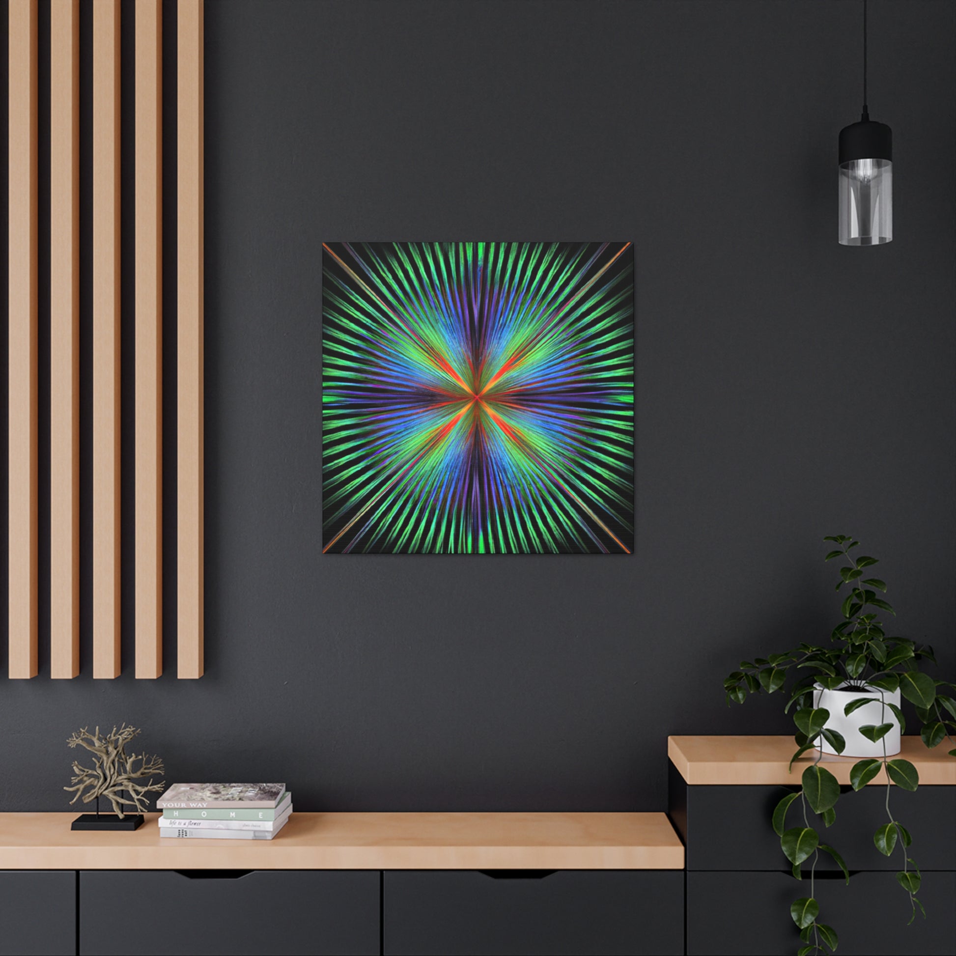 Create an enchanting focal point in any room with this vibrant canvas art piece! Featuring kaleidoscope, abstract, and digital art. This dazzling artwork features trippy geometric palm leaves in 3-D fractal-like lines and stunningly saturated colors. Perfect for expressing your edgy and artsy aesthetic. #TrippyArt #PalmLeafArt #AbstractArt #KaleidoscopeArt #DigitalArt #FractalArt #VibrantCanvasArt #3DLinesArt #GeometricArt #ModernArt #ArtPrints