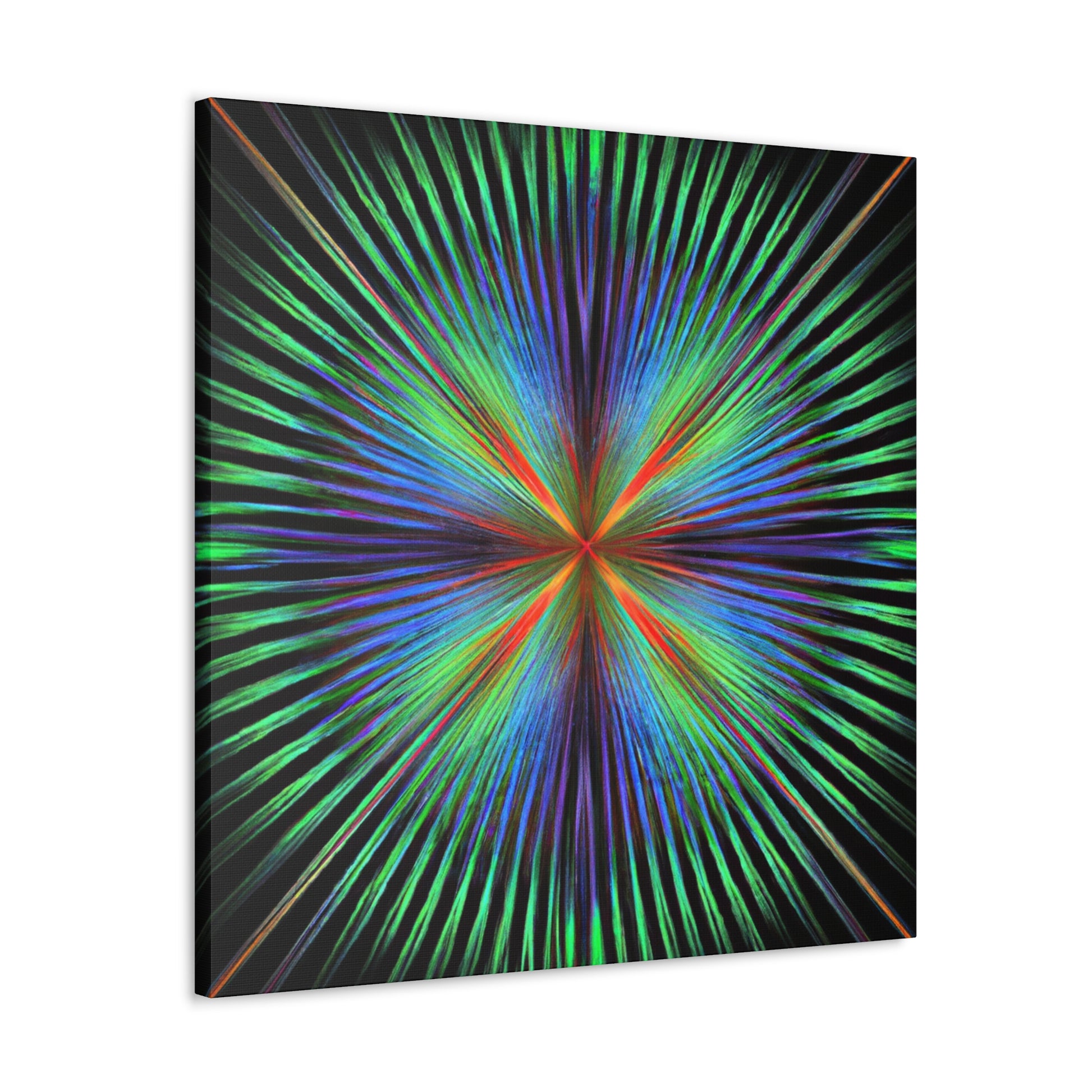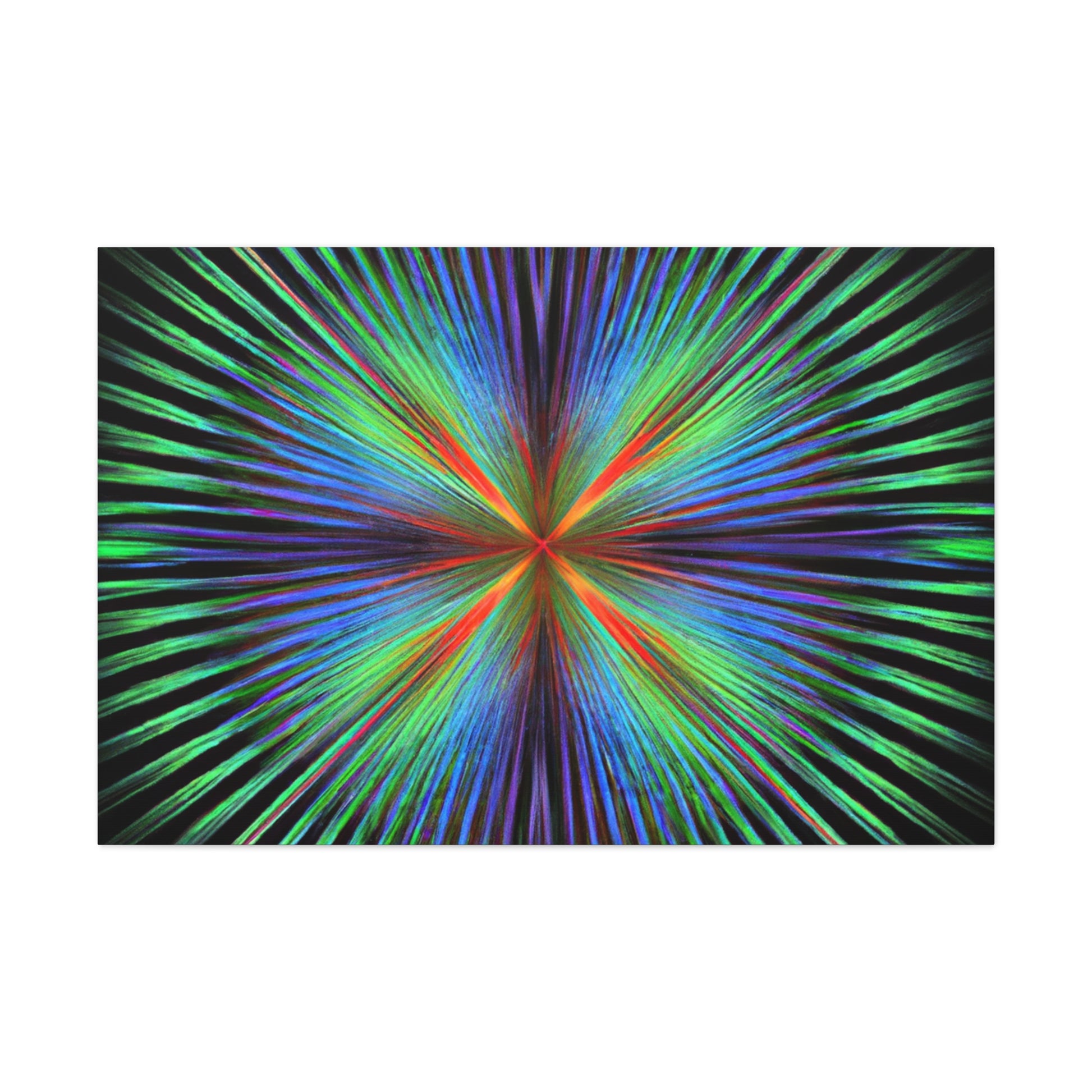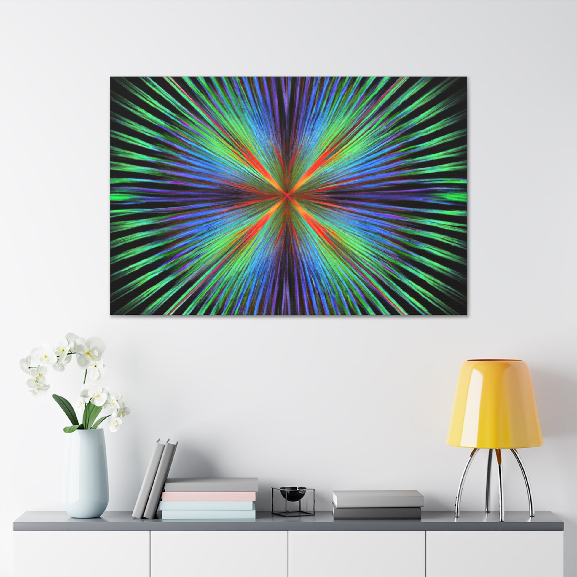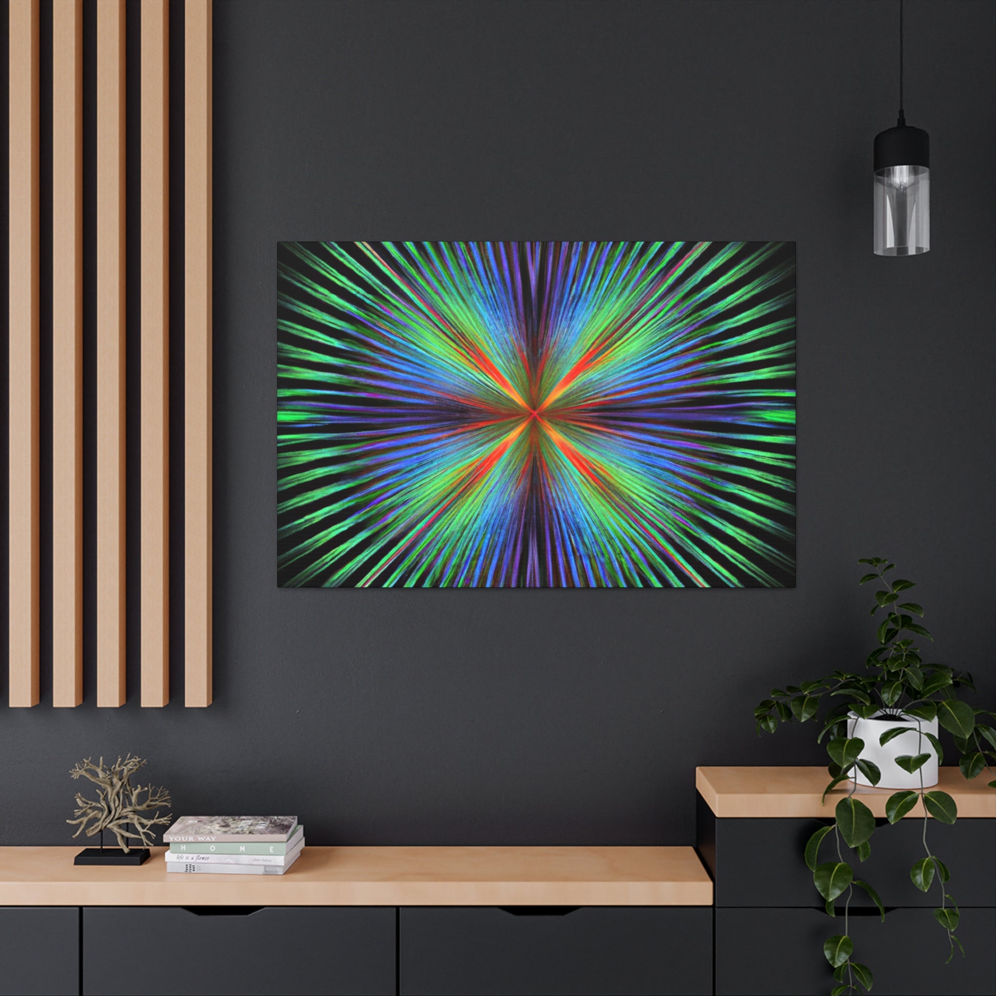 Create an enchanting focal point in any room with this vibrant canvas art piece! Featuring kaleidoscope, abstract, and digital art. This dazzling artwork features trippy geometric palm leaves in 3-D fractal-like lines and stunningly saturated colors. Perfect for expressing your edgy and artsy aesthetic. #TrippyArt #PalmLeafArt #AbstractArt #KaleidoscopeArt #DigitalArt #FractalArt #VibrantCanvasArt #3DLinesArt #GeometricArt #ModernArt #ArtPrints