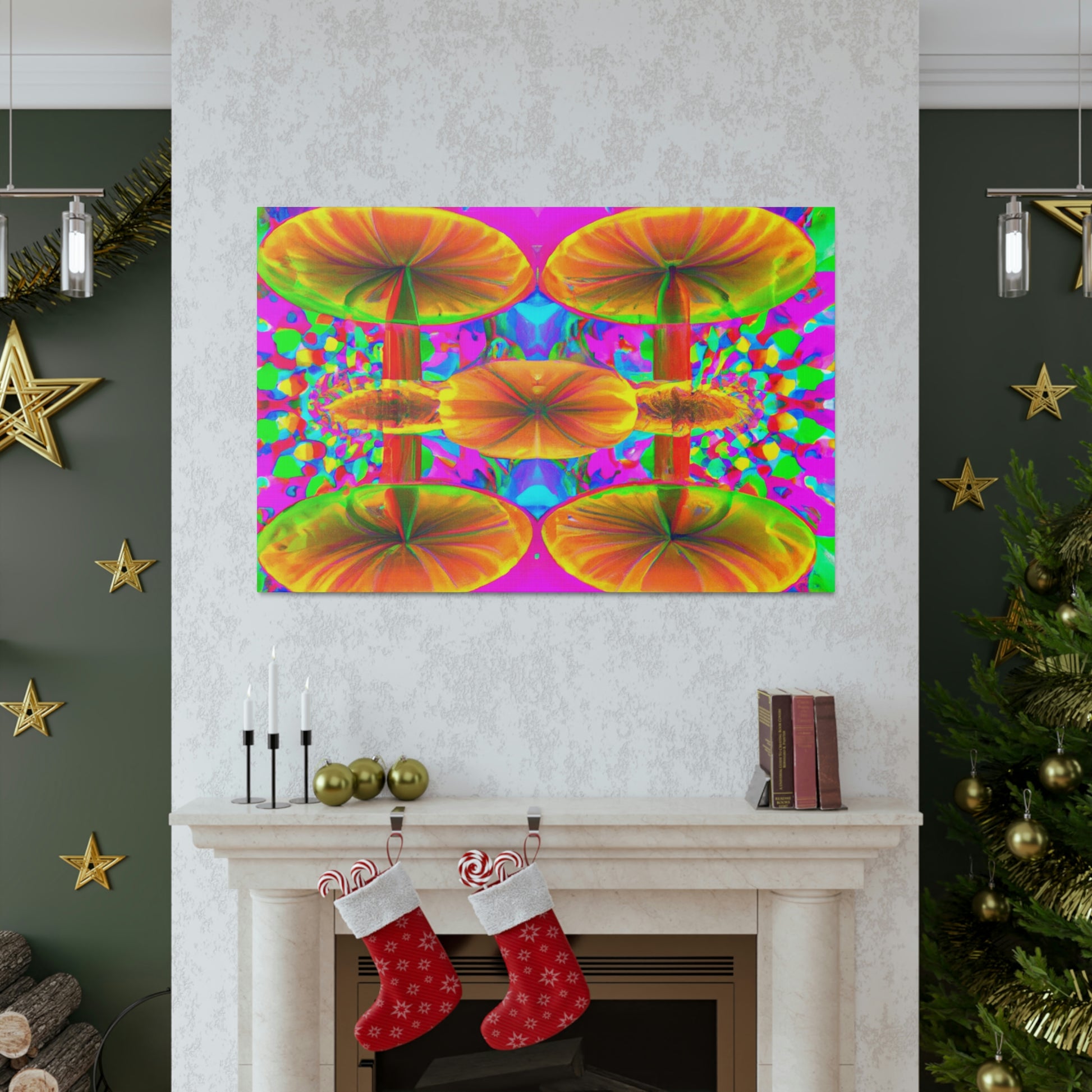 This stunning canvas will take your wall from dull to delightful. An abstract, trippy landscape of vibrant colors, mushroom shapes and 3D lines makes for a kaleidoscope of beauty. Capturing the essence of digital art, this piece will be the perfect compliment to any room. With visual depth that draws you in, your guests will surely marvel at its modern and unique appeal. #abstractart #digitalart #canvasart #mushroomart #trippyart #kaleidoscopeart #3dlines #vibrantcolors #modernart #wallart #acrylicpainting